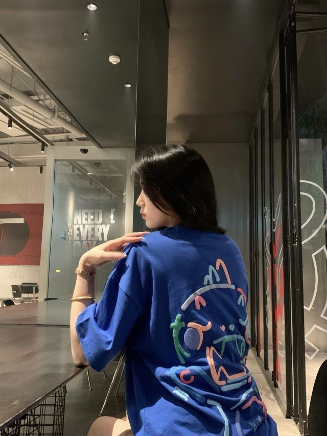 蓝色真的是太显白了❗这款版型很好,穿起来有型,图案特别可爱😍