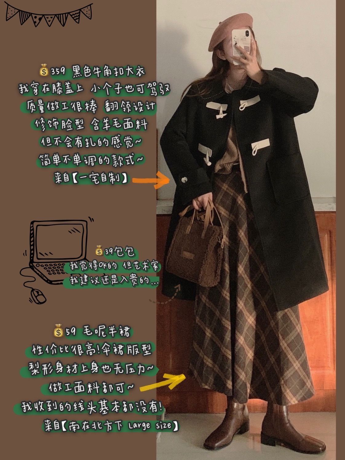 163 106|梨形身材🍐冬日显瘦穿搭&平价小物|||163 106斤 臀围90 大腿围49...多 小腿很细 梨形身材 PP和大腿超多肉肉 穿衣服力求显瘦 💕💕写在前面: 我们家下午的夕阳好美,感觉照的我也好美~不过美了一会儿就不见了,今天给大家分享一些梨形身材穿搭的小技巧~认真阅读哦~ 黑色羊羔毛拼接包包【BISSNNY原创设计女包】,最近超火的小众包包,除了那个很火的藏蓝色的,我还入了这款...
