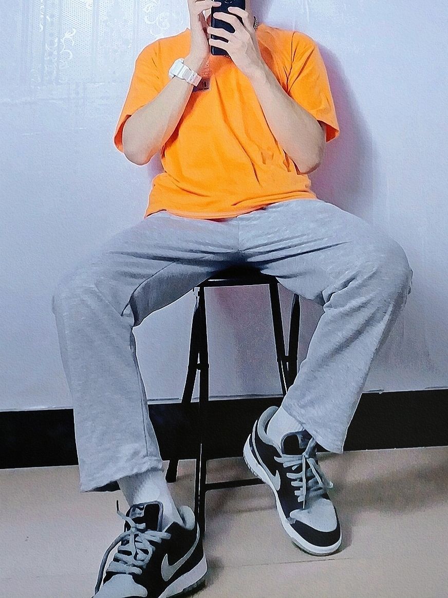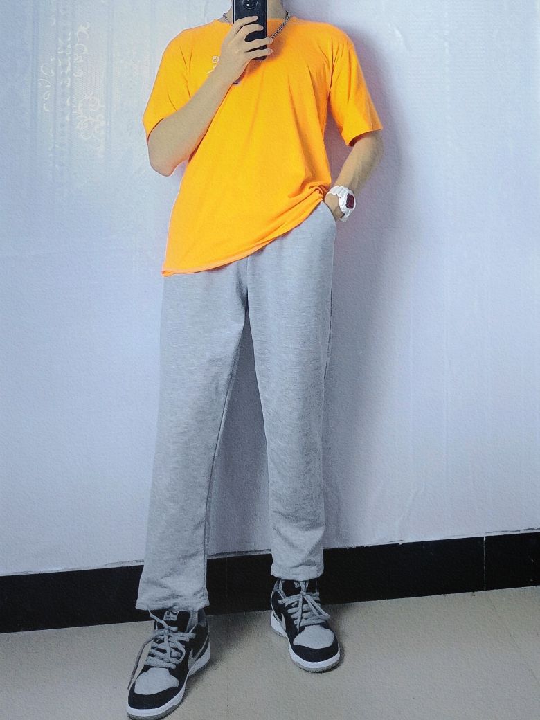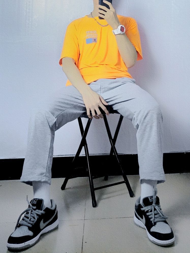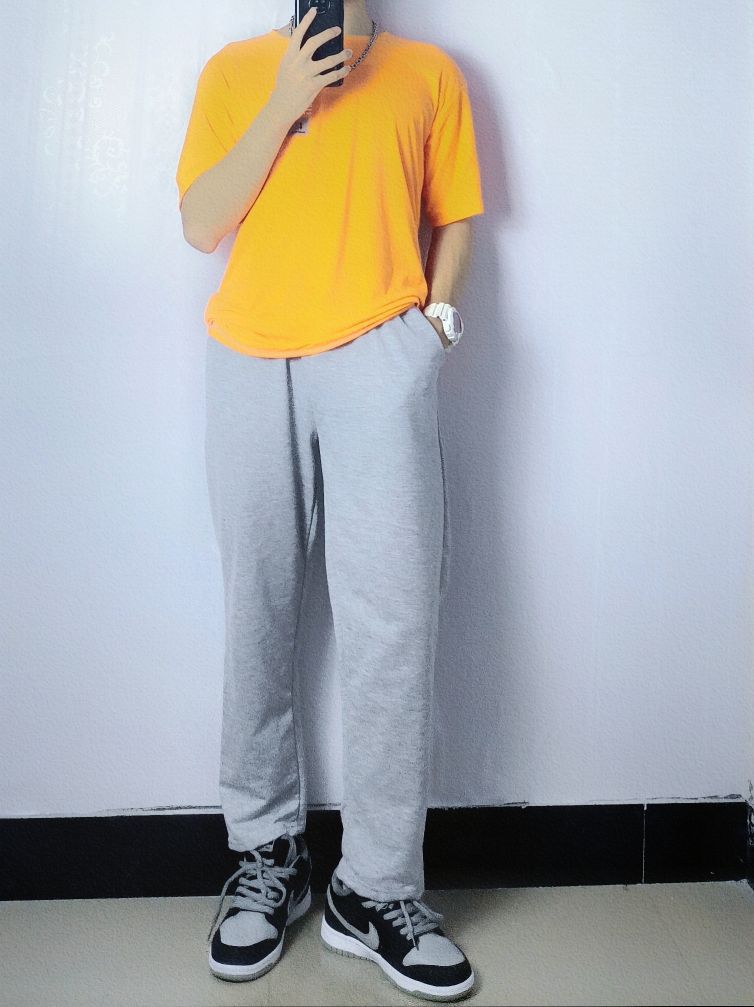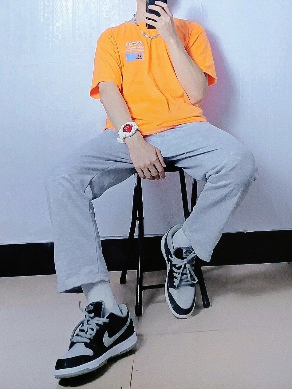 今日份OOTD分享的是夏日阳光男孩穿搭哦! 灰色➕橙色看似不好搭配的色调,却成为了夏季最时尚潮流的搭配,鲜明层次感分明很强烈,十分好看,最后➕灰色篮球鞋简直就是成为了点睛之笔! 👔橙色印花T恤 👖灰色宽松裤子 👟Nike dunk SB 影子灰 🎁芒星叠戴双层项链 😘简约好看高级感穿搭,看鑫仔准没错 🧸四季穿搭交给鑫仔,给你最好的安排!