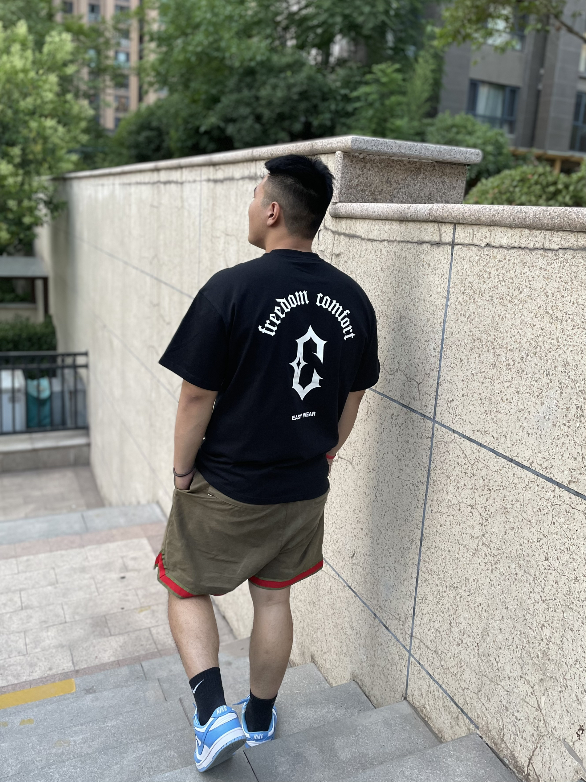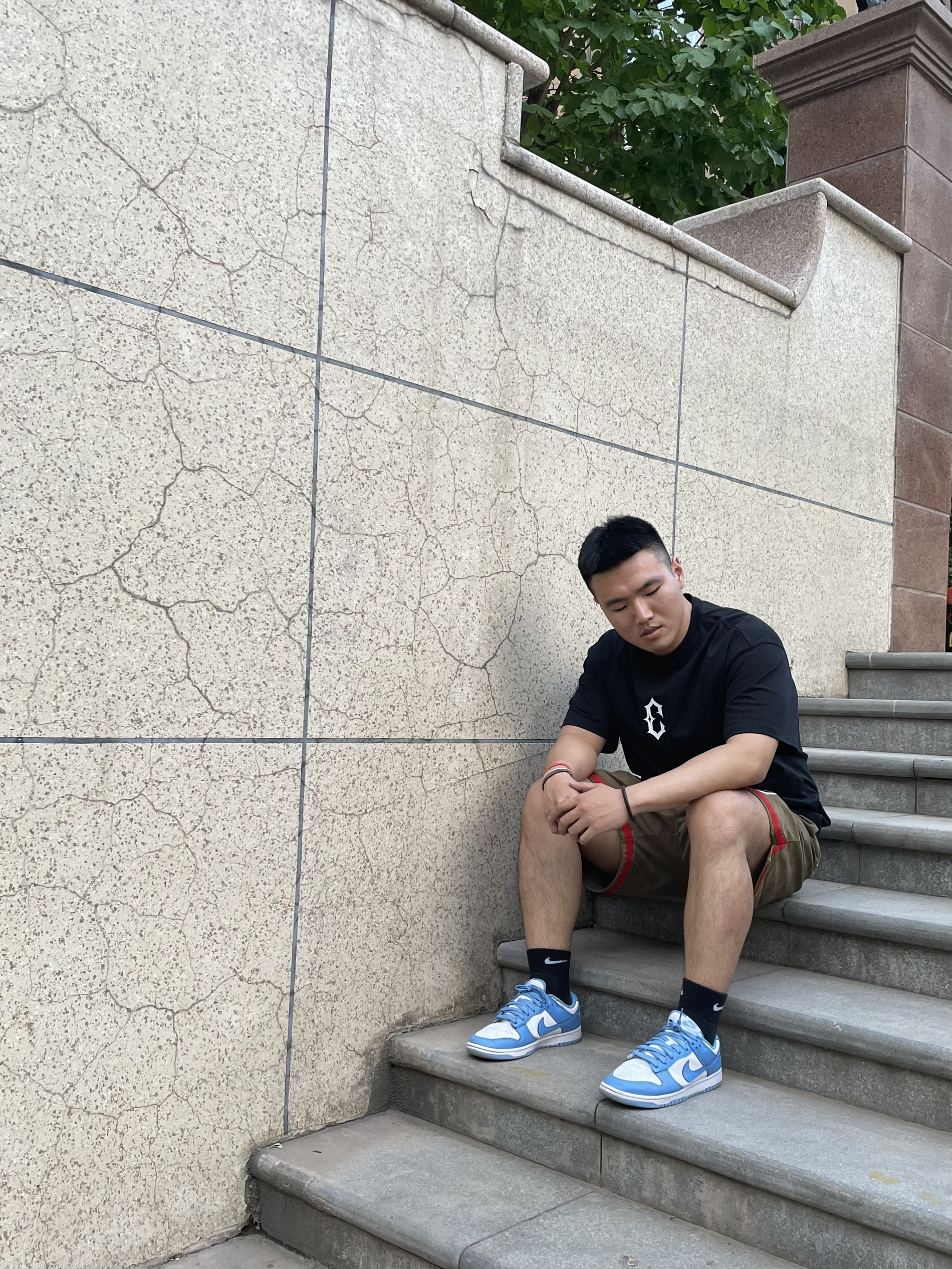 OOTD|来自一个180-95kg的小胖子每日穿搭分享 短袖 chinism美式水洗休闲字母印花短袖 衣服整体纯色非常的百搭好看,同时衣服后面的印花也非常的帅气!胸口处也有品牌标志性的logo,纯棉的质感夏日穿着也很舒适! 裤子 ready made拳击短裤 鞋子 dunk大学蓝