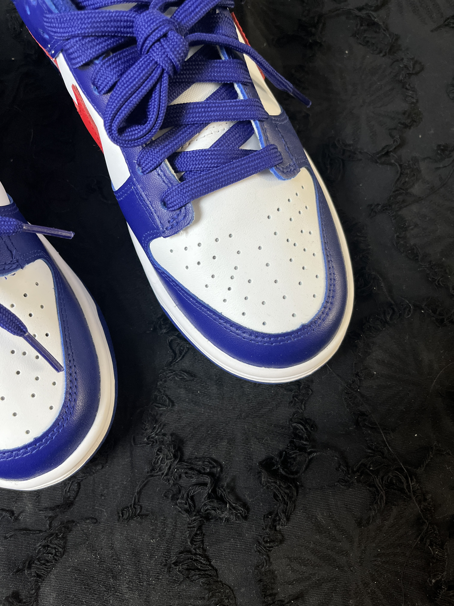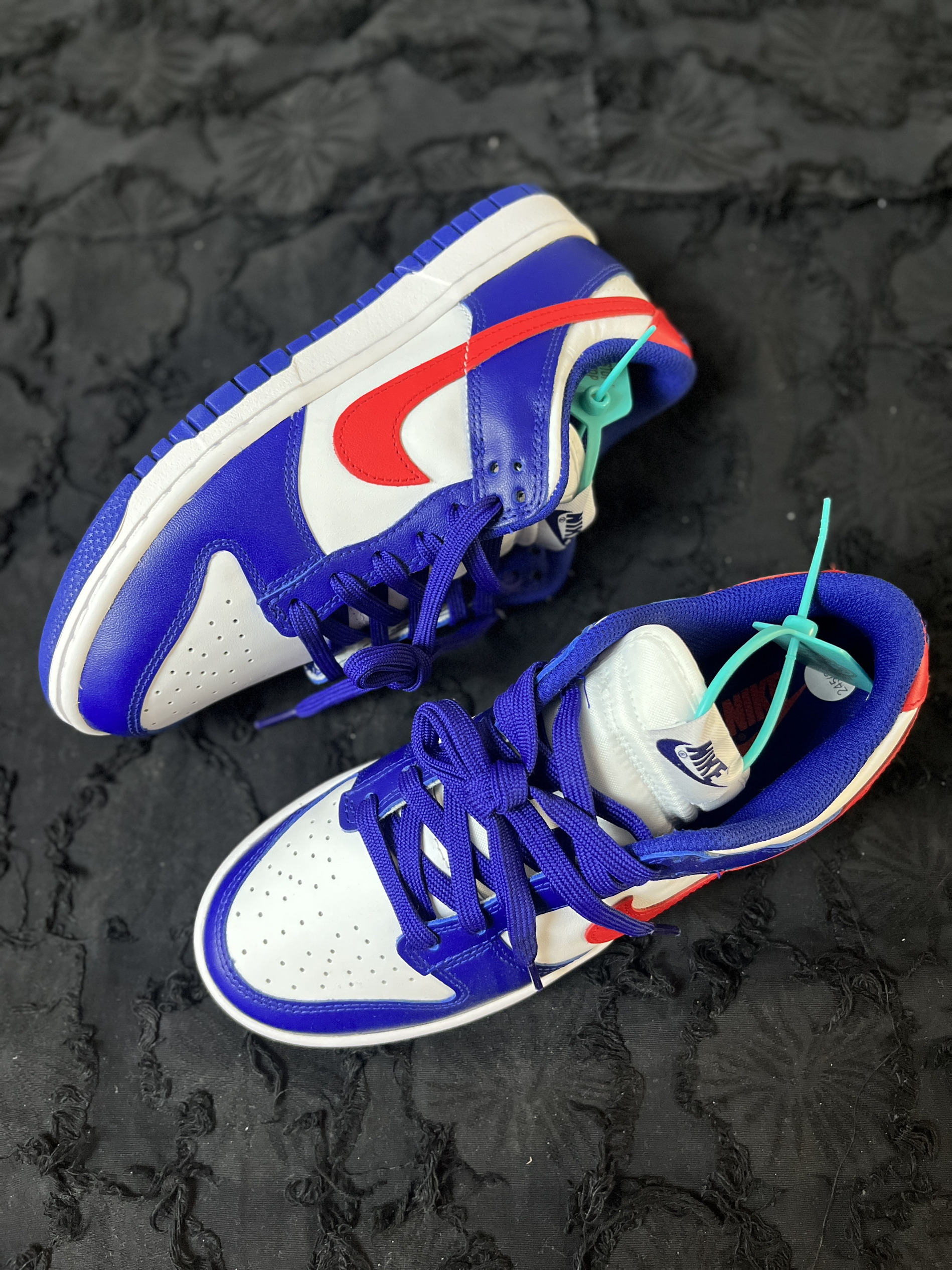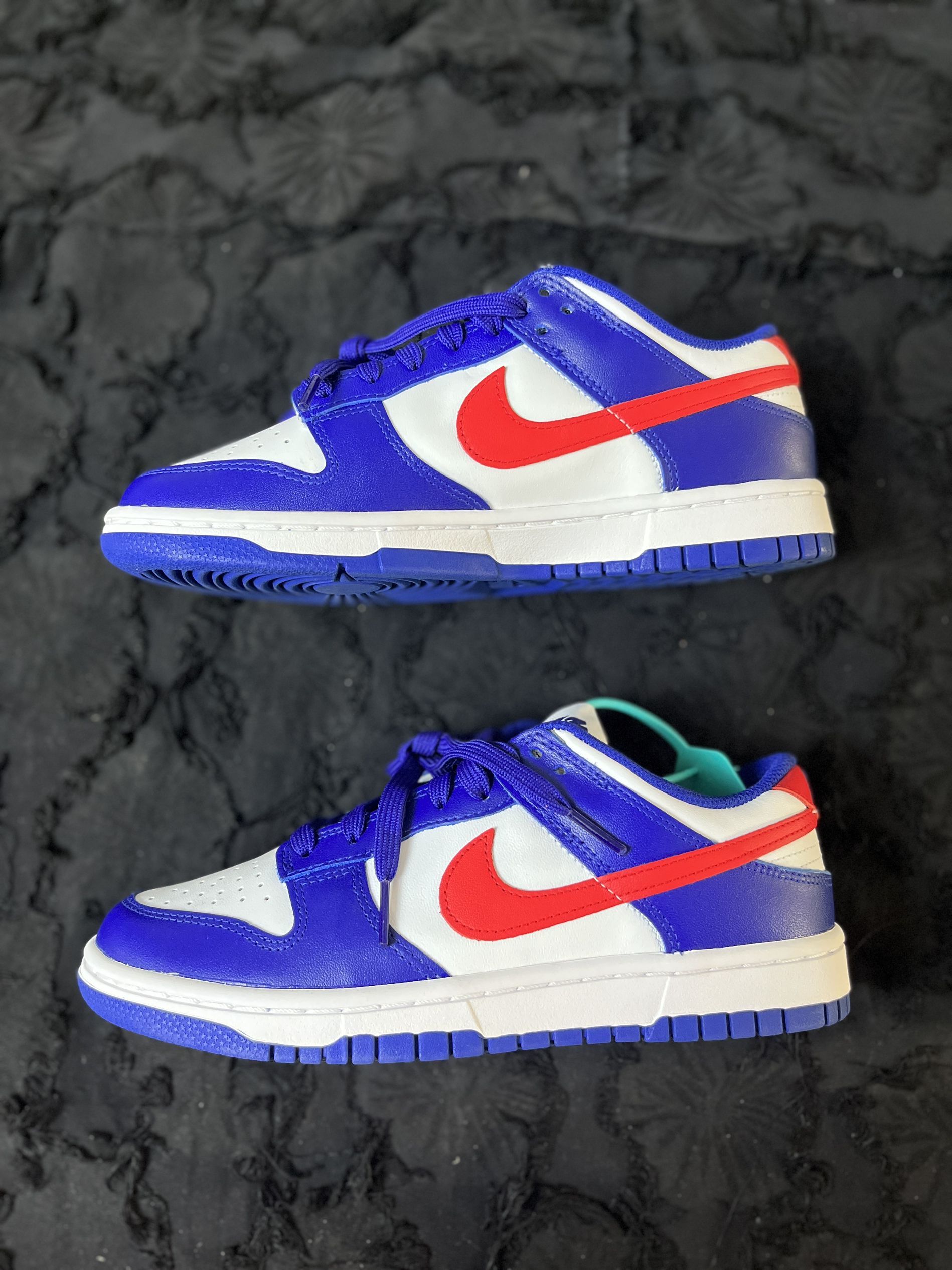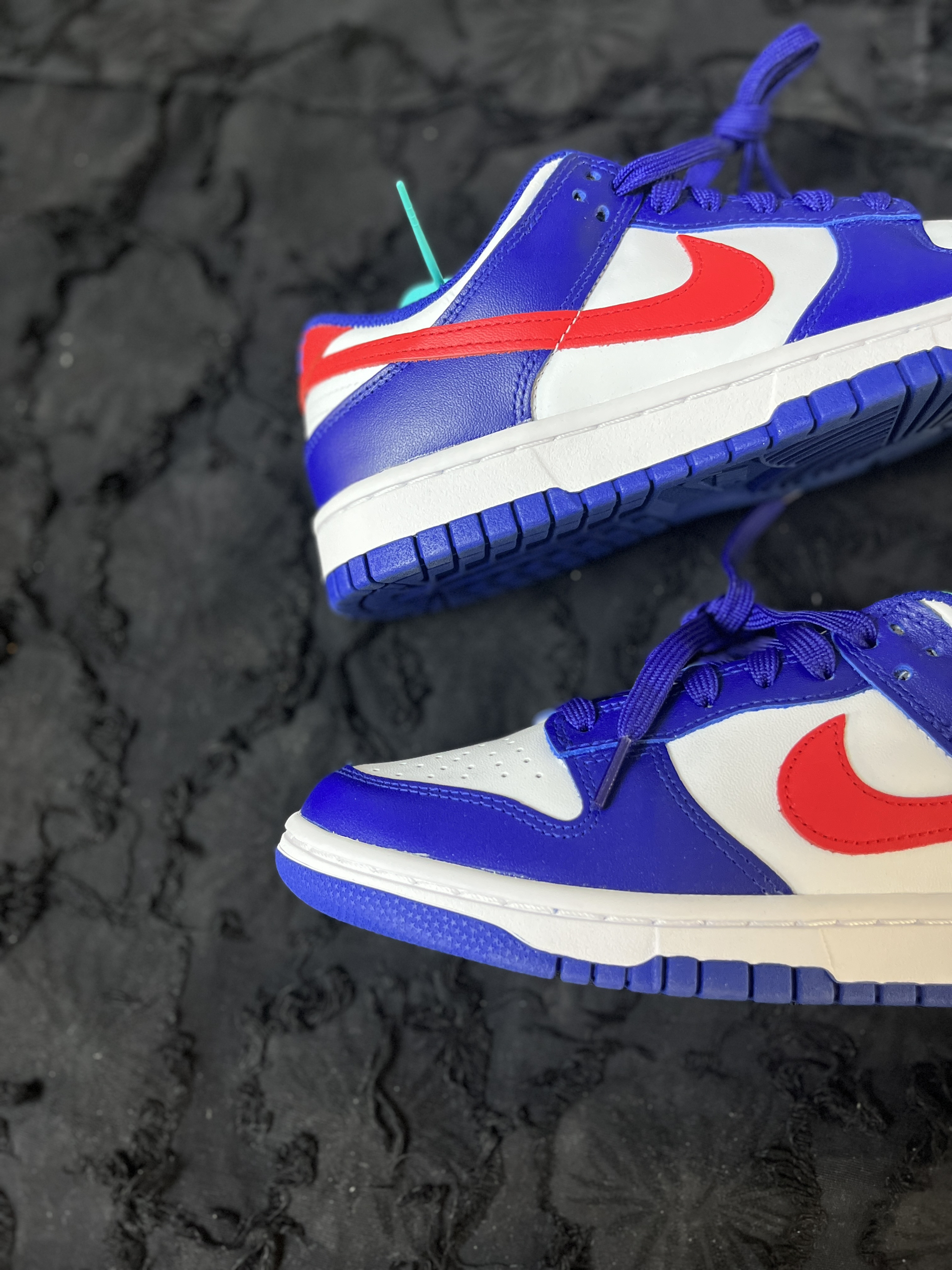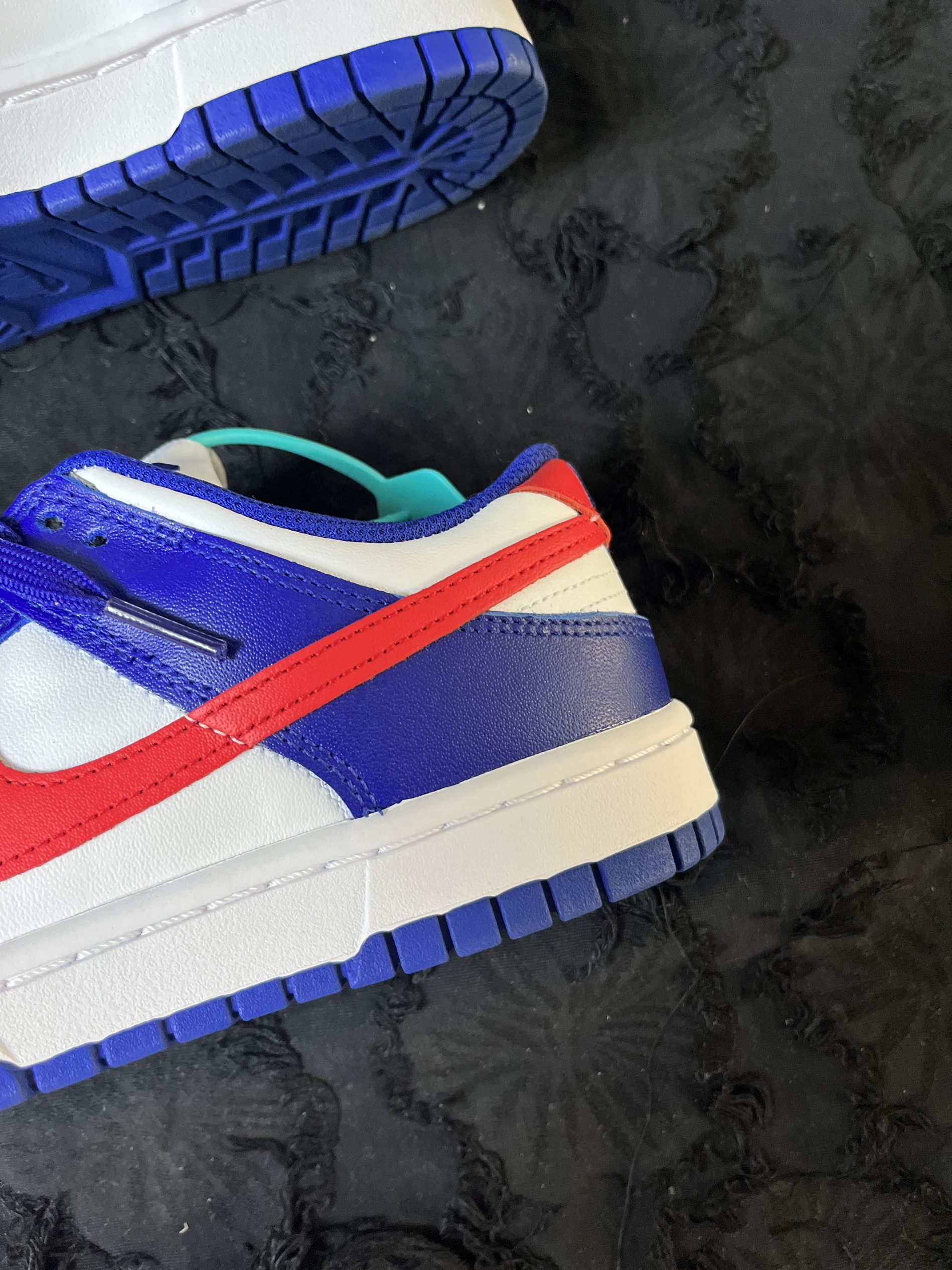 东毒西鞋今日分享:Nike Dunk Low"WhiteandUniversityRed"复古休闲板鞋女款白蓝红 🧗♀️这款鞋子采用为白色底色。蓝色的框架加上红色的耐克LOGO进行点缀。整体外观醒目简洁。 🧗♀️皮革的材质,鞋面的层次感也是丰富的。整双鞋子外观也是很有特点。蓝色橡胶大底纹路耐磨防滑。就是夏天穿不是太透气。