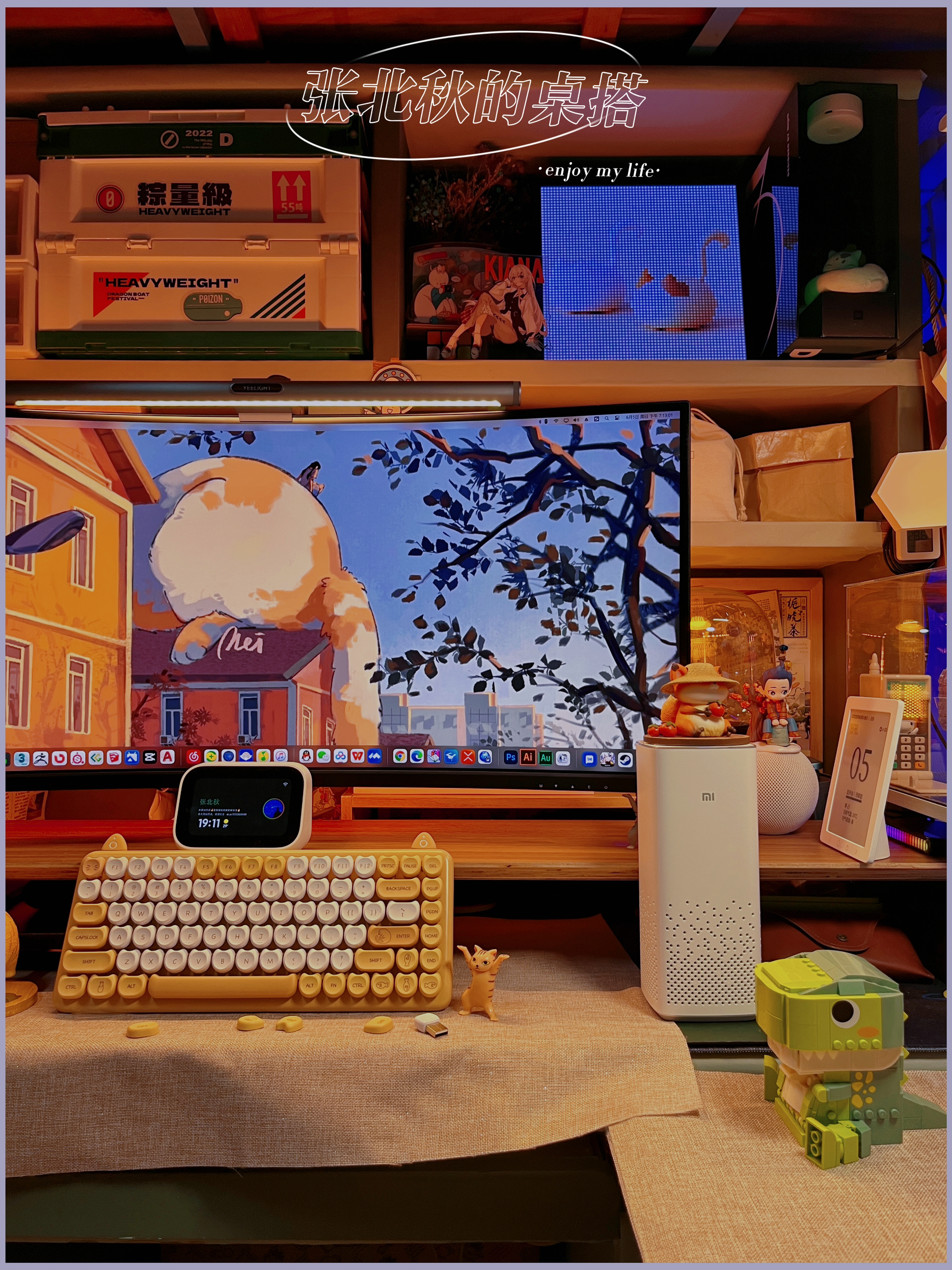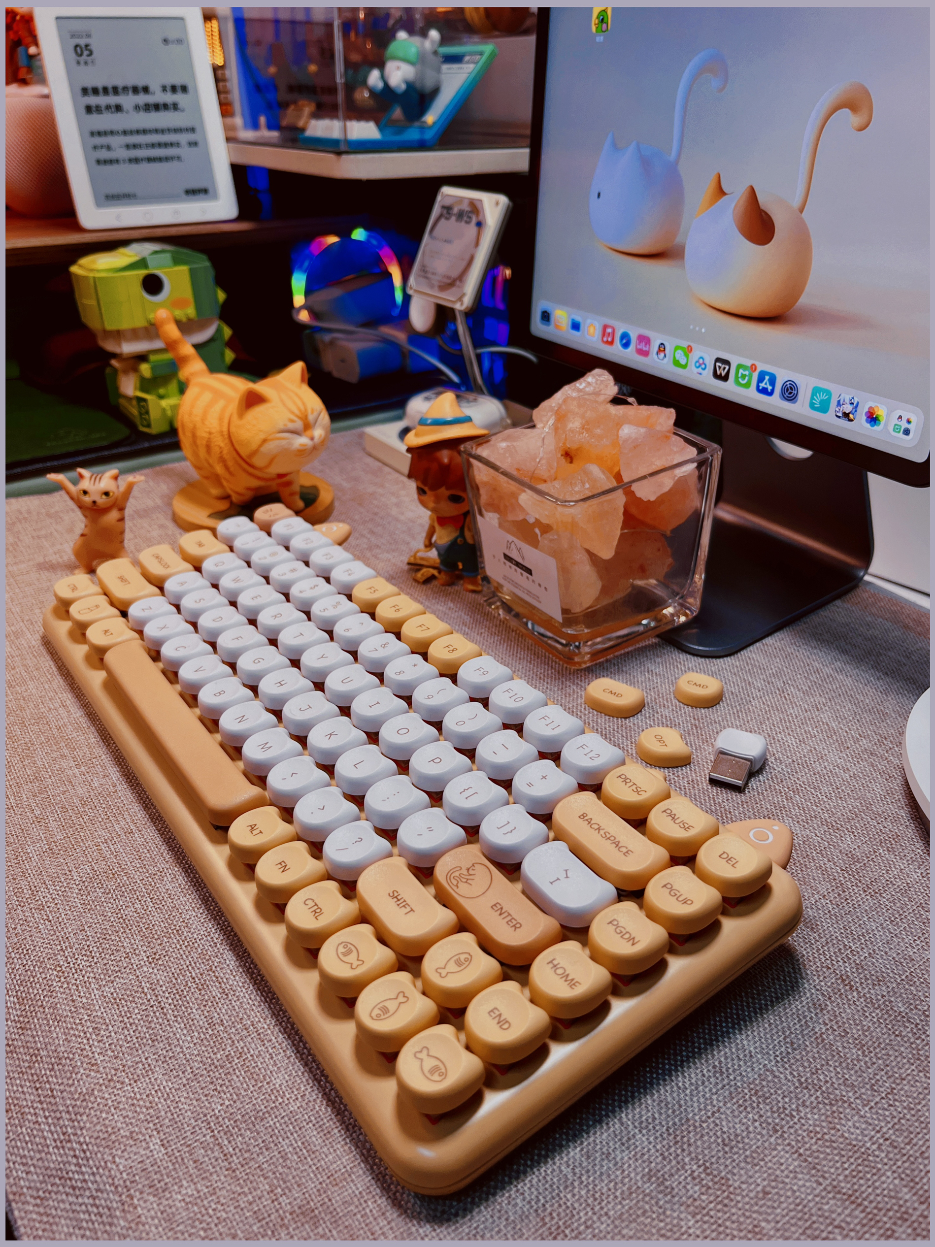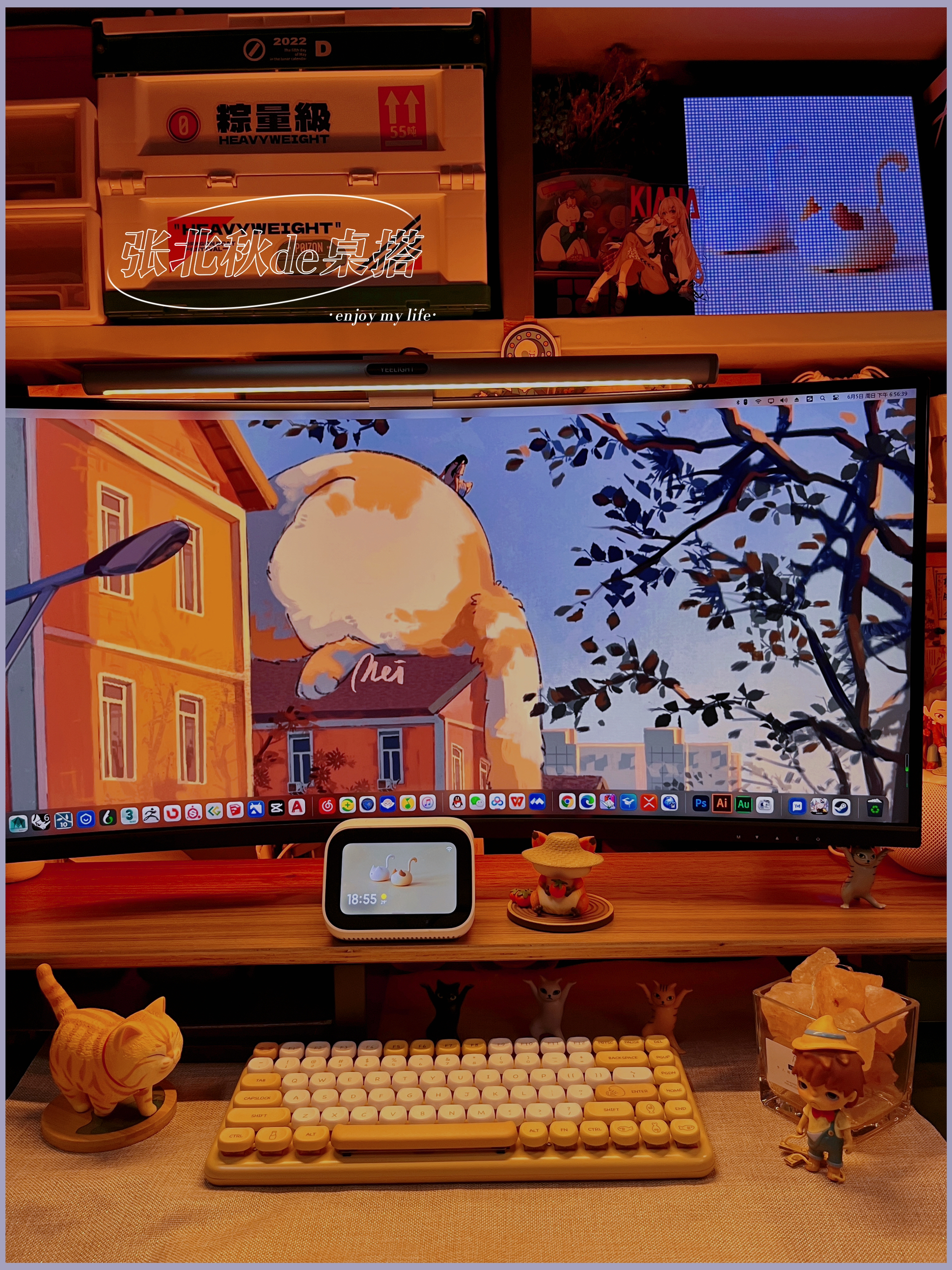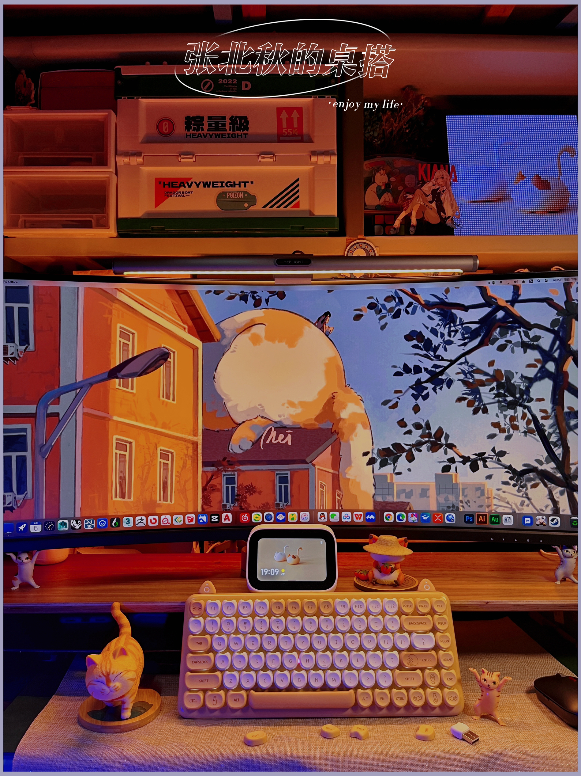 做了很久桌搭,总觉得桌子缺了点东西,仔细看了看别人的桌搭,有只可爱的修猫猫在一边趴着睡觉,我懂了!我缺一只修猫! 那说做就做,接着我就进行了对修猫咪桌面的改造,首先我需要一只橘猫,可是学校流浪猫都不愿意跟我回宿舍(绑走失败)那只能自力更生咯~ . 🏷️屏幕篇 修猫咪桌面先给我的34存的显示器换个猫猫壁纸,再给我的小爱音响和ipad以及像素画框换个桌面(壁纸原图需要的朋友留个) . 🏷️灯光篇 说到...