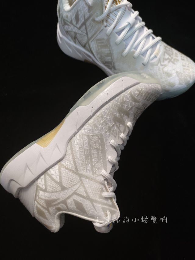 ☞ 安踏Anta KT1Pro白金十周 今天小螃蟹跟大家分享的是一双克莱十周年的篮球鞋!整双鞋拿到手以后我只能说安踏YYDS!无比修长的鞋身,鞋面由编织工艺打造,非常的有特点,金色在白色的搭衬下显得那么闪耀但又低调大方。 最令我感动的是,鞋身上则由白色底色上面覆盖有金色的图案,呈现了11个克雷·汤普森职业生涯中的大事件,例如单节37分、三节60分、单场命中14记三分、三...