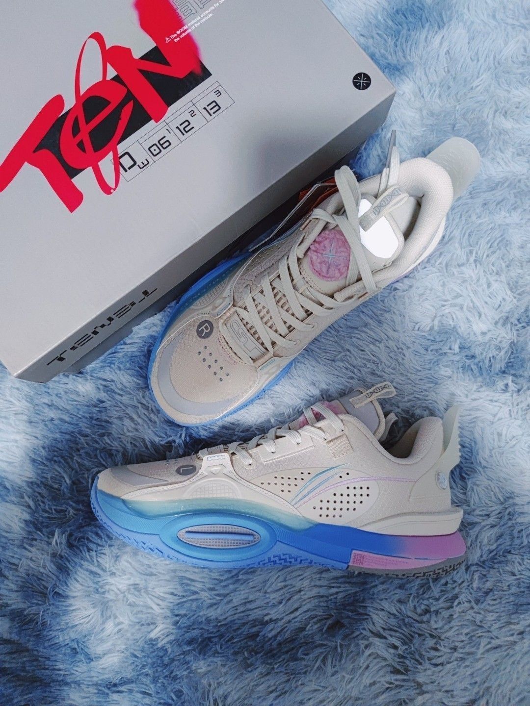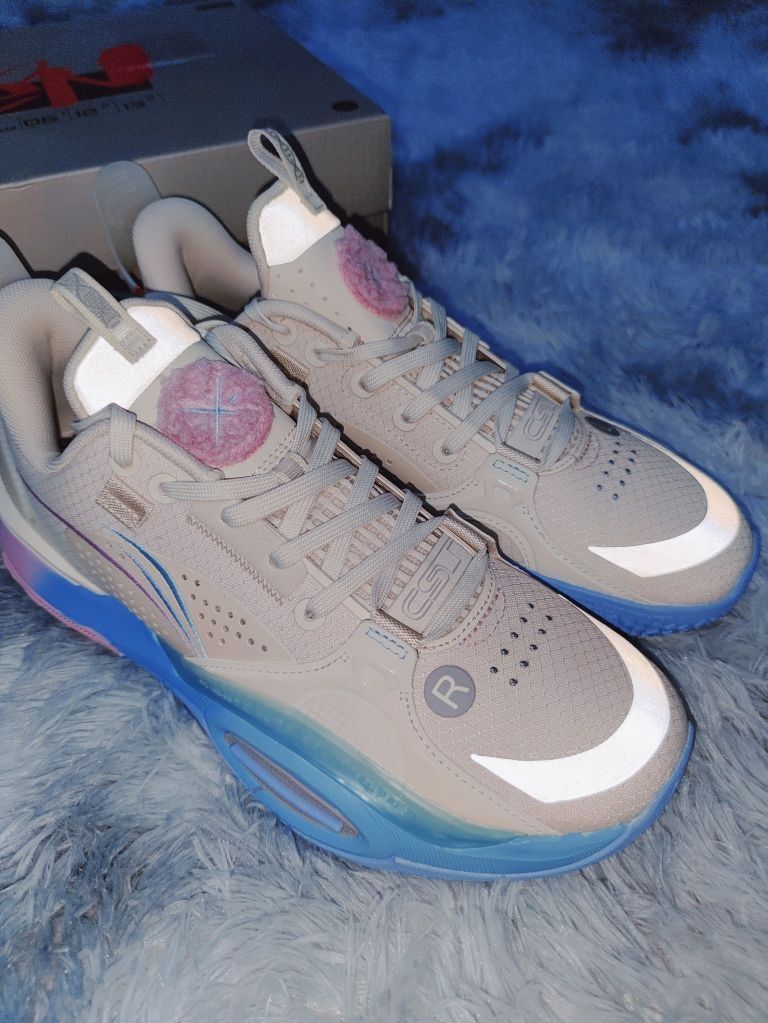 李宁LiNing全城10棉花糖 -真的是一双颜值超高的实战鞋 当然配置也很棒 -鞋面支撑和包裹非常棒 侧面防侧翻TPU的效果非常好 全掌䨻科级 缓震相当不错 -令我很意外的是 这双鞋的橡胶外底非常厉害 耐磨性相当好 而且抓地力很强最重要的是不挑场地.室内室外都有相当稳定的强悍抓地力 这一点非常不错 抓地室内急停急起扎实可靠!起跳投篮很舒服! -还有很多亮眼的心机设计 鞋舌处毛绒绒的韦德之道logo...