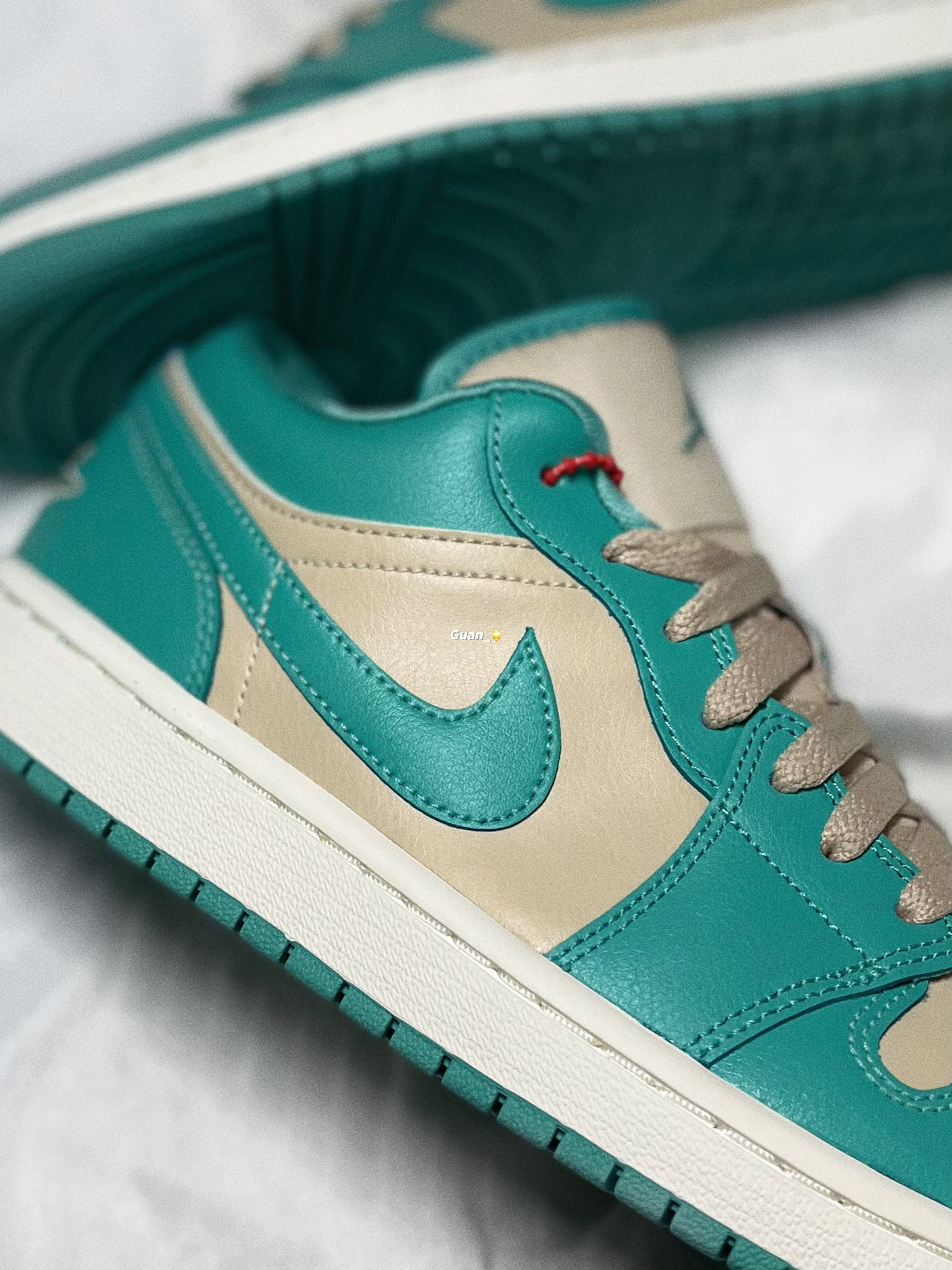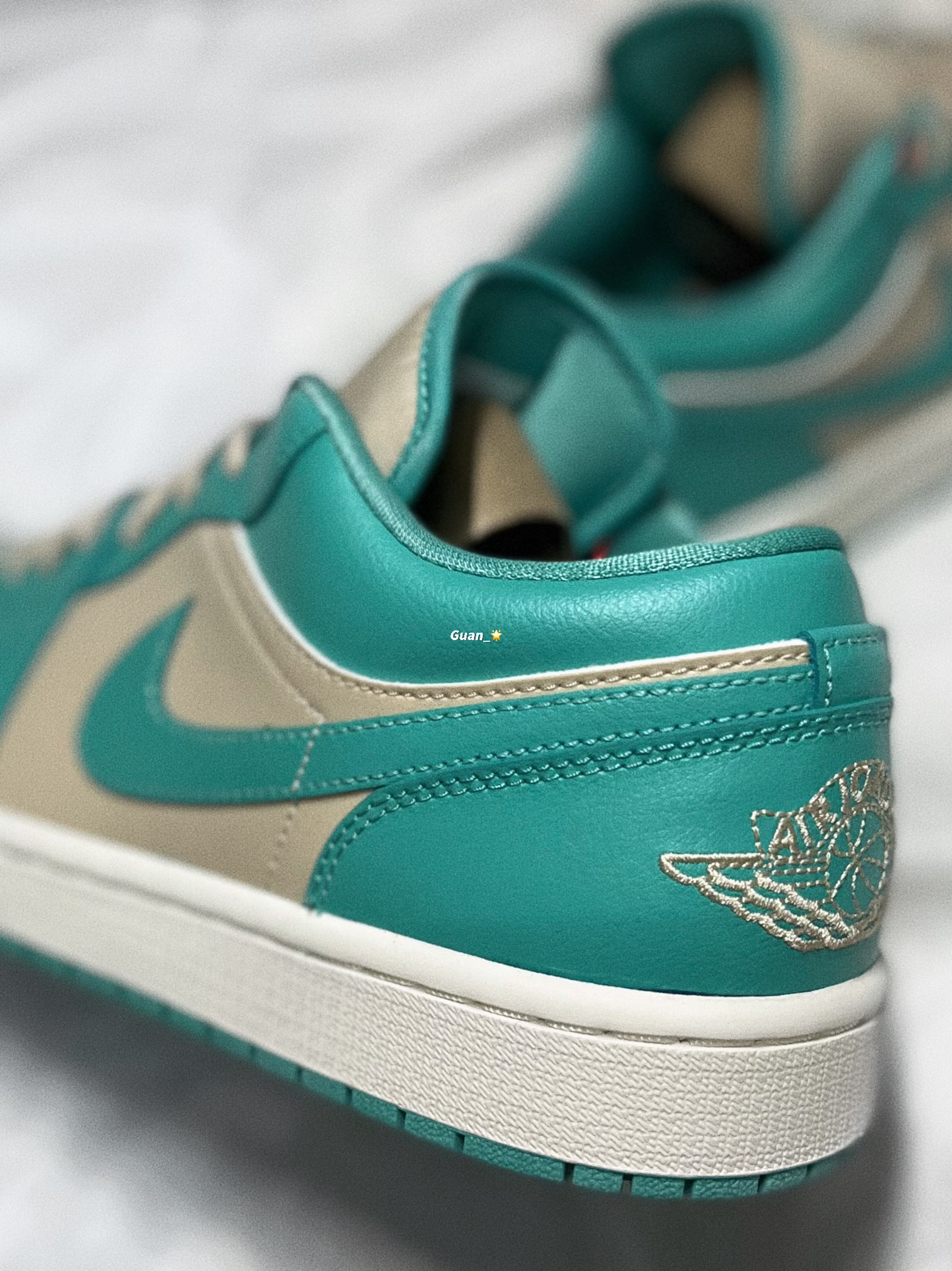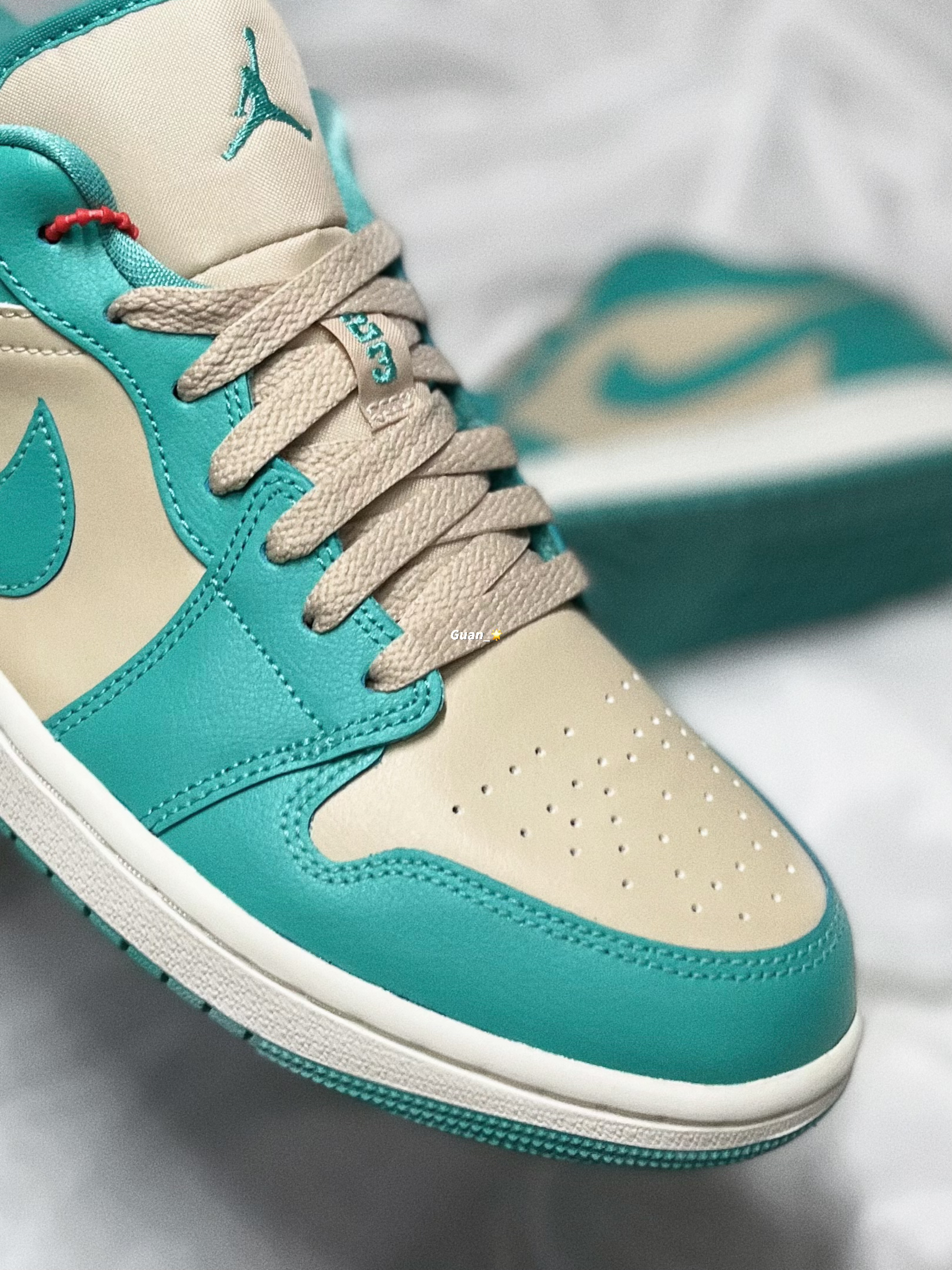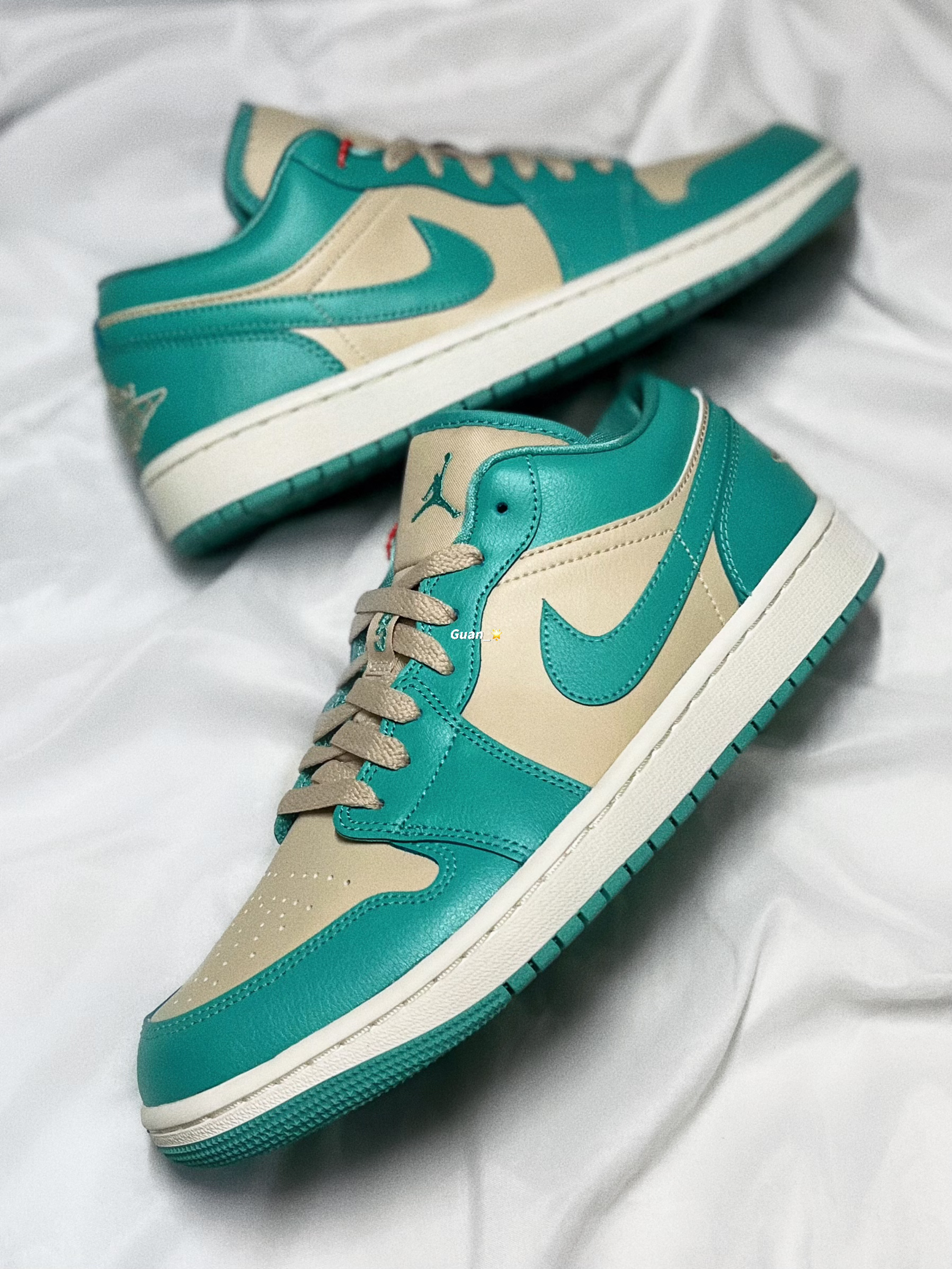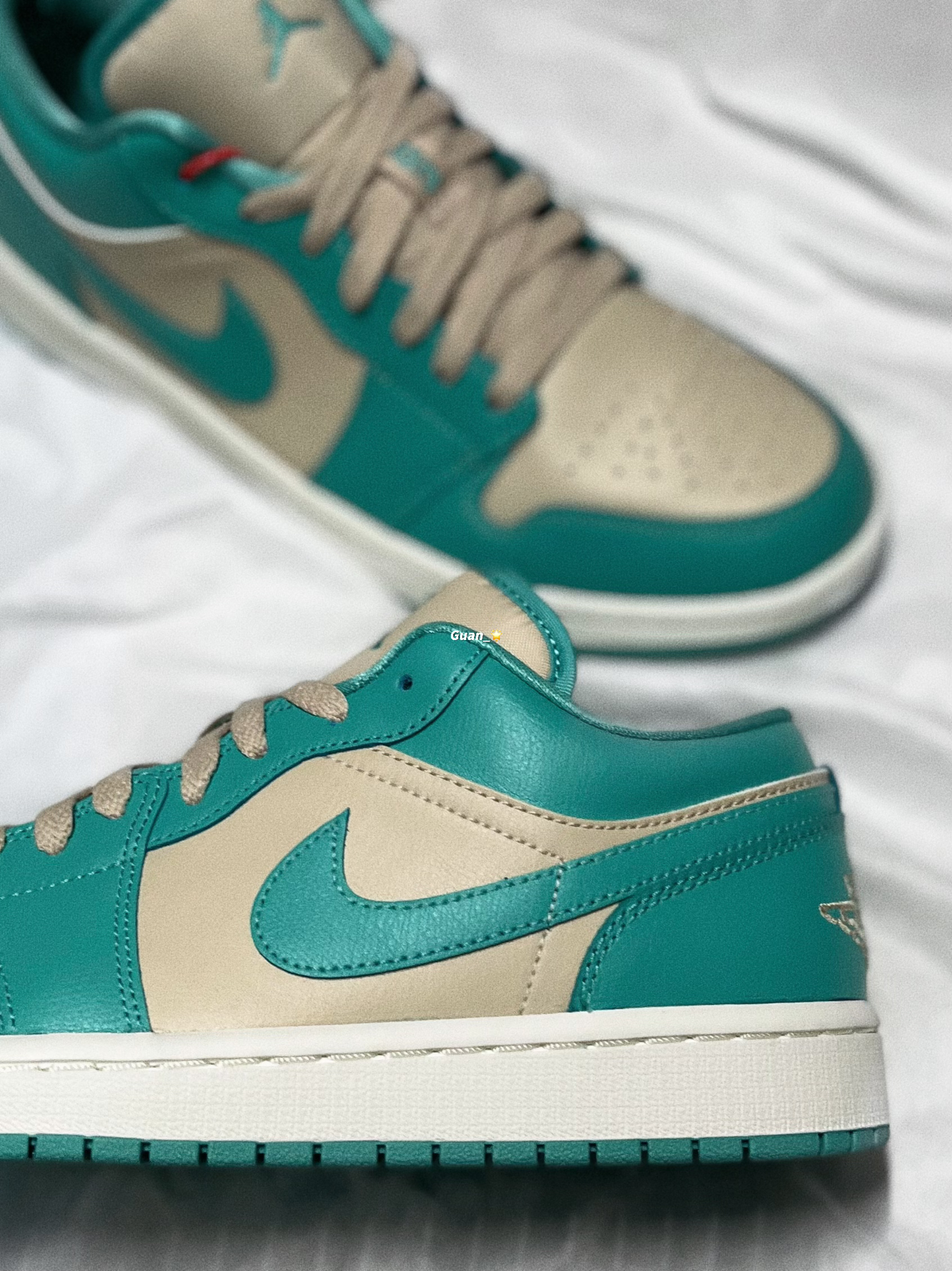 🍉今天带来一双最近新发售的蓝绿色AJ1 low,这双鞋很明显是nike调色盘的作品,不过这双鞋整体配色颜值还不错,自穿比较推荐入手! 🍉这双鞋选用了全皮革材质打造,质感不错,后期打理也是非常方便,鞋子选用了蓝绿色和米黄色拼接组合的,蓝绿色给人一种夏日清爽的感觉,看起来非常舒服! 🍉aj1low是不偏码的,脚胖脚宽的宝儿建议买大半码,这双鞋是全尺码发售,也可以选做情侣鞋哦!
