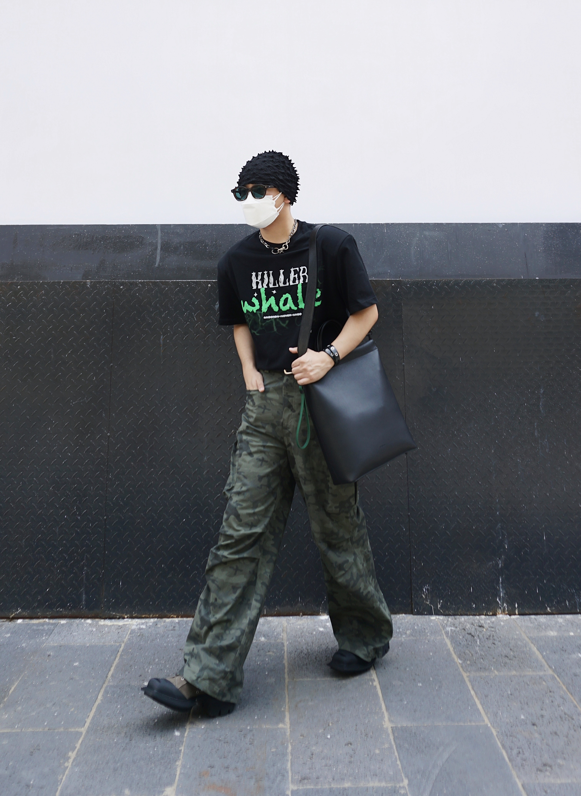 关于🌲迷彩风🌲最近大火这件事, 好像如之前复古回潮一样成为了新的时尚趋势💡~ 不过关于如何很好驾驭迷彩元素, 又如何在夏天穿出迷彩风和日常造型的高级感🌪️, 今天就和大家唠唠: - 教你用无性别风➕迷彩元素穿出高级感❕ - 1⃣️黑色垫肩tee➕迷彩裤的叠搭,用上衣的绿和下半身的迷彩元素呼应🌲,元素呼应比色彩呼应更高级也更自然去表达💕,小tips❕ 上窄下宽,同时T恤扎进裤腰,展示腰带的同时也可...