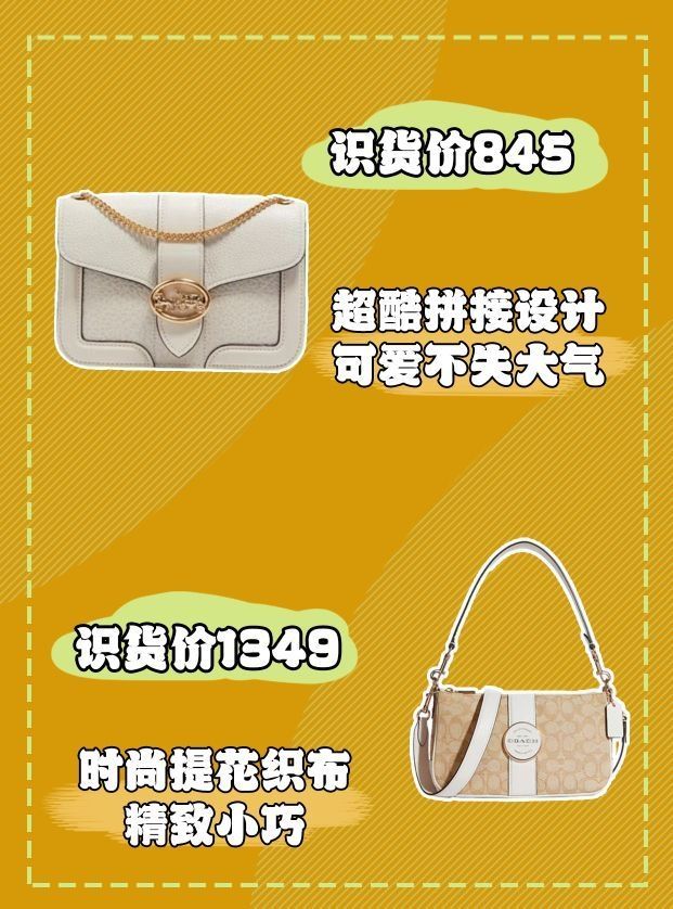 💕Coach Klare 21 小号 链条风琴包单肩斜挎包 618识货价格:1409元 这款包包非常显气质,光滑的牛皮经典又高级,十分百搭,搭配各种服装也是hold住的,各种场合也是可以的。 💕Coach Parker 26 中号 山茶花老花帆布皮革手提包链条斜挎单肩包 30585 618识货价格 :1629元 这款包包融合了简洁,优雅,随性与时尚的特点。皮质柔软细腻,采用了山茶花形状的锁扣更是点...