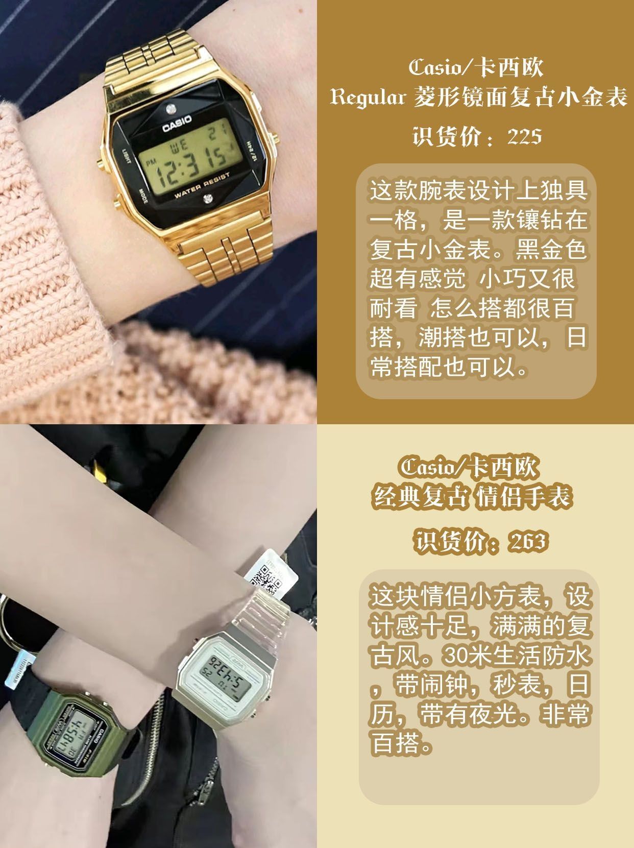 🎈【陈小春同款】Casio/卡西欧 钢带复古方块电子表男女手表 A-158 618价格:113元 这款手表款式新颖,设计新潮,各个年龄都可驾驭,包装也很精美,女生戴起来也非常好看。 🎈【绝命毒师老白同款】Casio/卡西欧 Regular普通 男士复古计算器防水石英手表CA-53WF 618价格:123元 这款手表颜值绝对在线,带有计算机键盘,操作起来特别有喜感。非常百搭,日常,休闲,运动都可。...