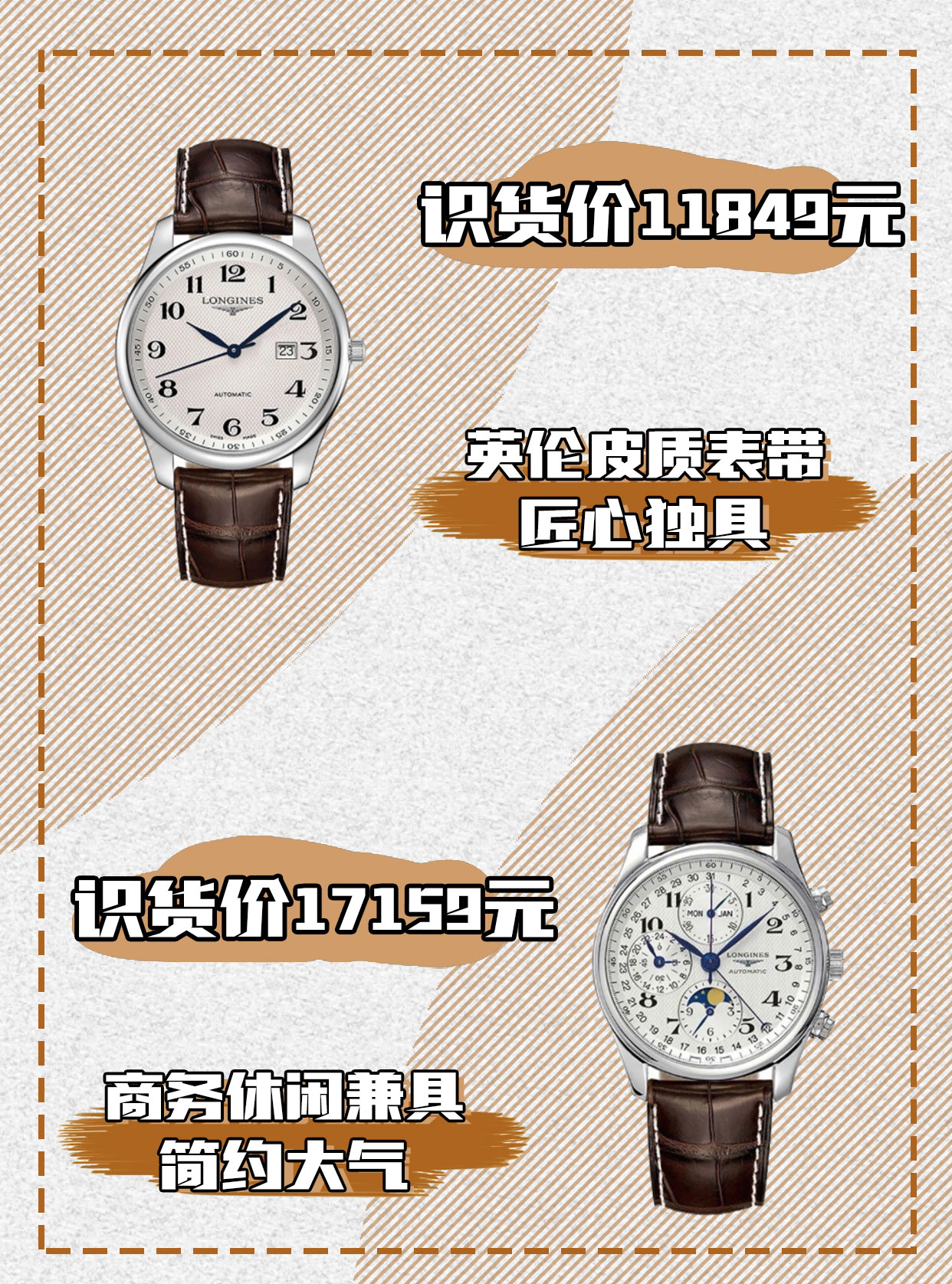 "⭐️浪琴是瑞士品牌,价格亲民又时尚,被誉为奢侈腕表里的入门款,也特别适合做为礼物送给男友/老公,今天就给大家分享浪琴的一些款式。 🌟Longines/浪琴 名匠系列 自动机械时尚男表 L2.893 💰618识货价格:11849元 ✨棕色皮带搭配白底黑字表盘,儒雅风满满,40mm表盘,30米防水,整体设计很大气的感觉。 🌟Longines/浪琴 名匠系列 40mm表盘 自动机械男表 L2.67...