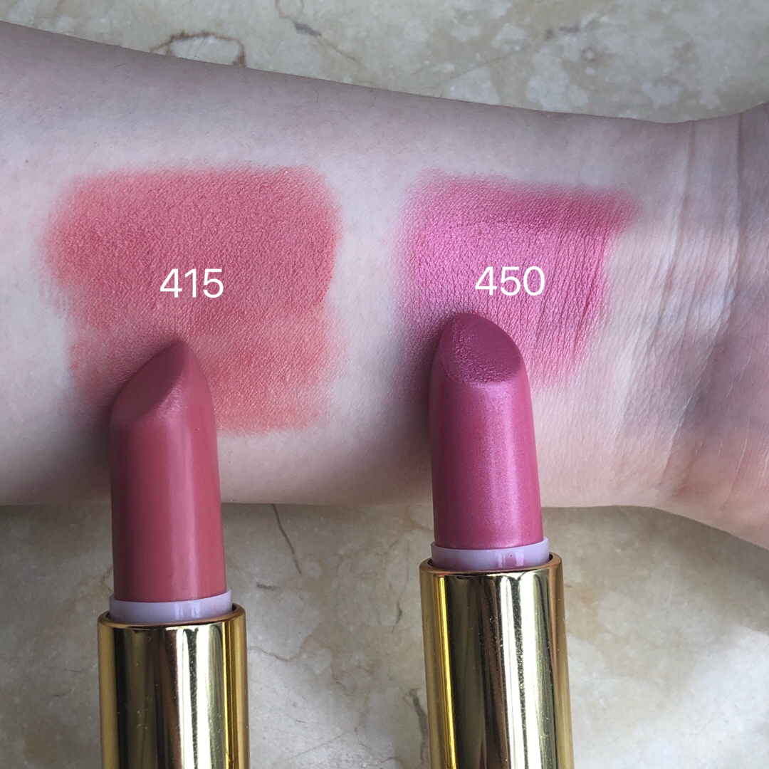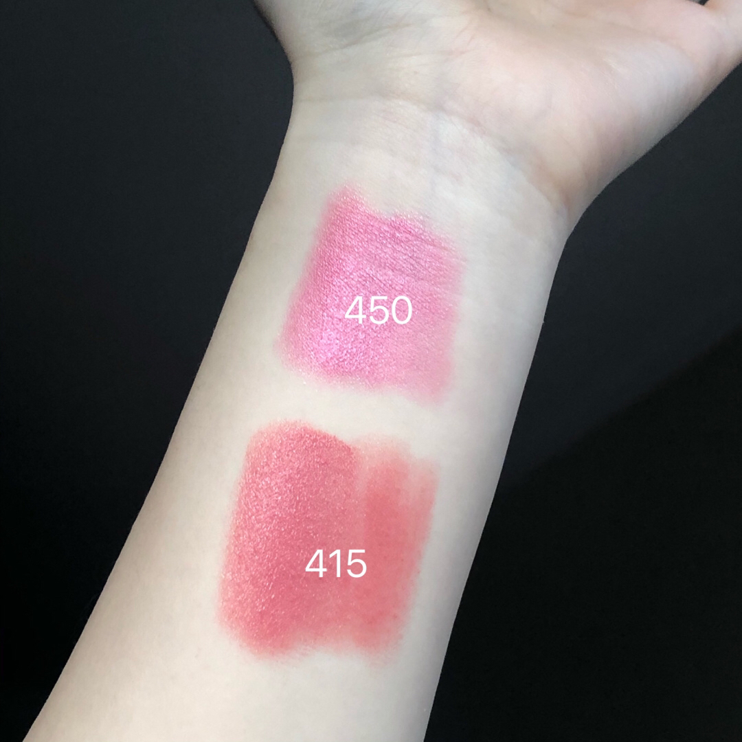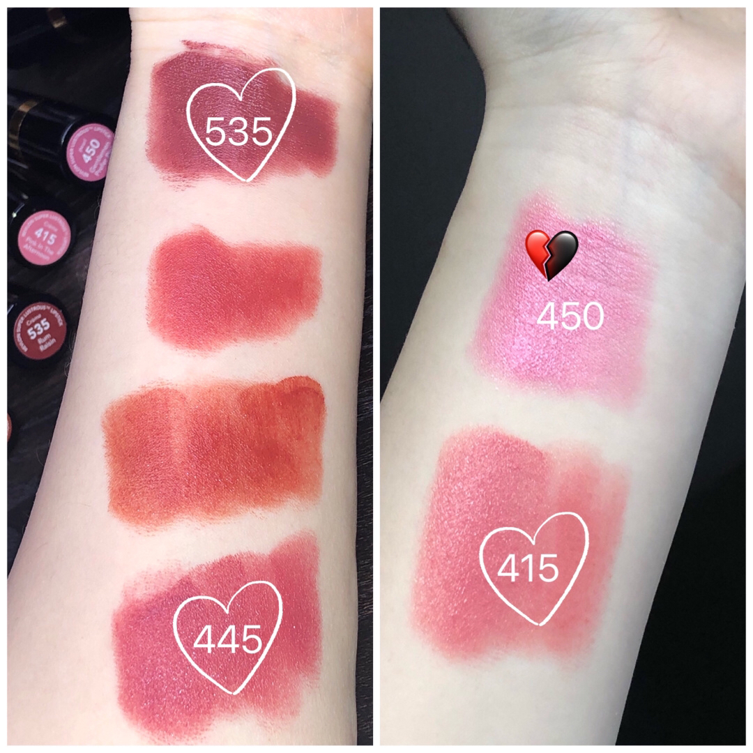 之前跟着破产风入了几只露华浓,最爱的两支都是偏冷门的色,415和535,当然最丑的一支也很冷,450它成功把我丑哭了… ❤️535:绝美,真的无法形容它的美腻,冷白皮一定一定一定要买,不买后悔,比325和225都要好看 ❤️415:好看到我买了两只,它是一个不荧光不偏色的蜜桃粉,好像当初赫本也涂过,冷白皮素颜涂上就很温柔那种 🖤450:看图和415一样让我心动,以为它是很正的粉色,结果拿到手发现它...