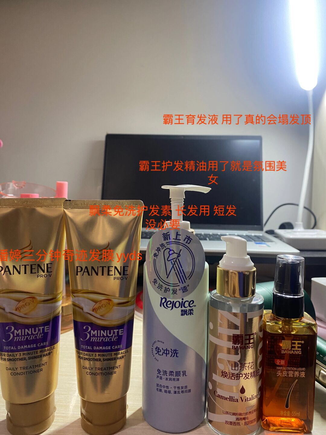 潘婷三分奇迹发膜:19.9元/70ml(两瓶)用完洗发水大致擦的不滴水(发膜都不喜欢太湿的)上发膜 在耳朵下面的头发上(防止堵塞发根毛孔导致脱发和发顶不蓬松)可以让头发光滑有光泽 飘柔免洗护发素:14.9元/180ml 这里长发可以用 用完头发更有垂感 注意也是耳下方 短发不建议了 用这个会显得贴头皮就不美丽了 霸王山茶花护发精油:18.8元/96ml 其实让头发有光泽感擦什么油都可以比如椰子油 ...