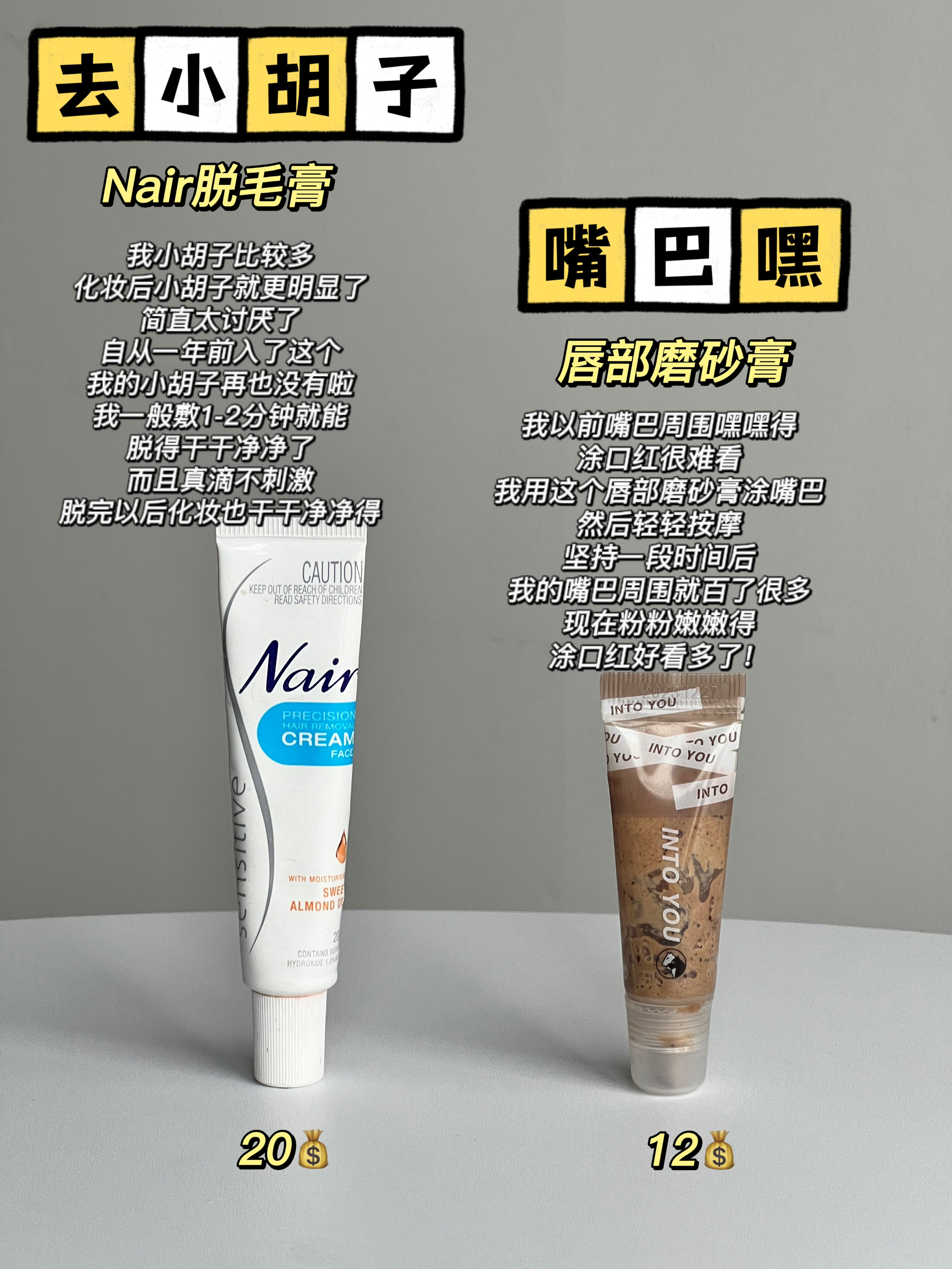 本篇笔记关联了【唇部脱毛】Nair 唇部腋下脱毛膏 20g(面部款)、【国内版】Veet/薇婷 净纯温和型脱毛膏 敏感肌肤适用娇嫩净脱不留黑点 200ml等商品,为用户提供真实的使用体验和购买参考。