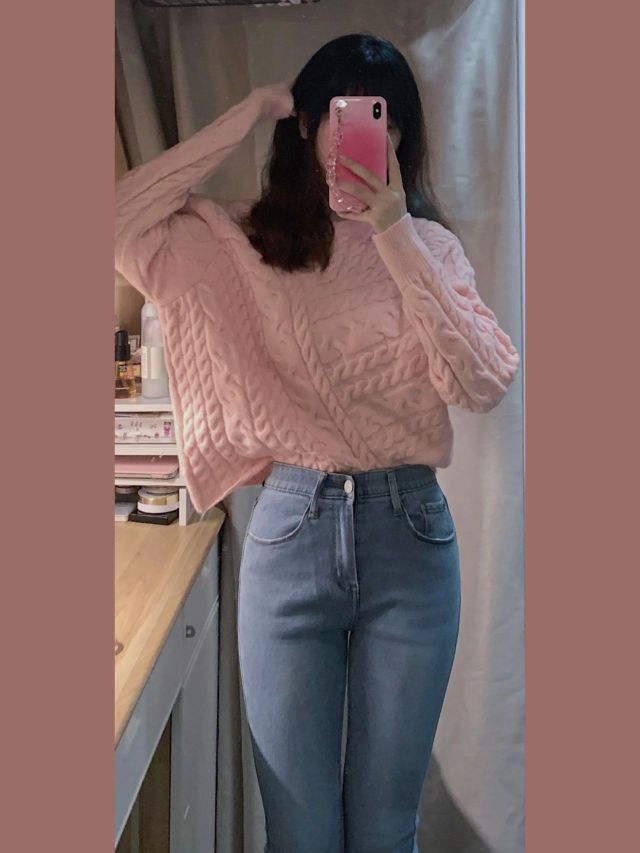 ▪️粉色毛衣 颜色真的好嫩 不算长 可以搭配高腰裤 还是有一定厚度的 秋天可以穿 毛衣:夏木晴MUQI ▪️牛仔裤 这个牛仔裤是很修身的类型 浅蓝色 腰部有松紧带 特别服帖 配个宽松点的上衣绝了 👖:zavk