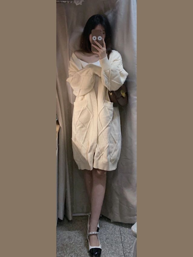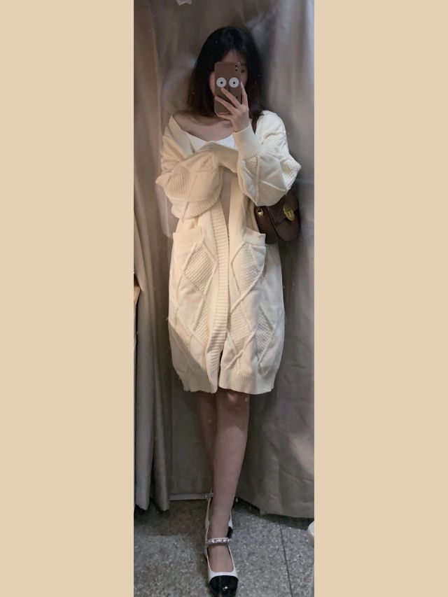 ▪️一套:catyears猫年 毛衣外套是加绒的 超暖和 里面的连衣裙显身材 露肩和高领设计很特别 ▪️包包:暮思小姐 ▪️鞋:大叔家达文西鞋业