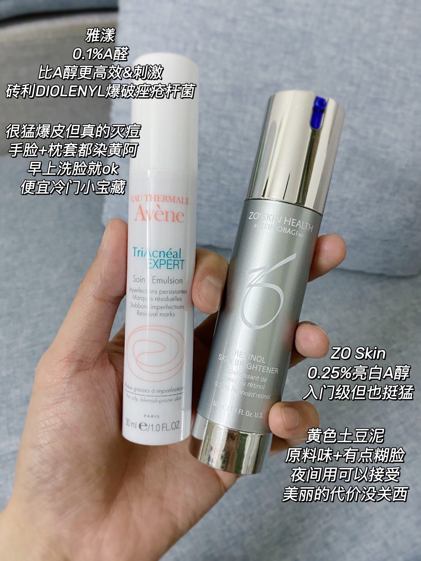 - 回到A类的怀抱了 尤其对于油皮来说 它是由内而外的 皮都展开 - 1⃣️ZO Skin 0.25亮白A醇 2⃣️雅漾 A醛+木瓜蛋白酶 3⃣️修丽可CEF 4⃣️薇姿 VC - 白天简单护肤 接 温和清爽的防晒霜 抱紧耐受油痘皮的抗老猛💊 耐心坚持用出效果8⃣️ #早C晚A