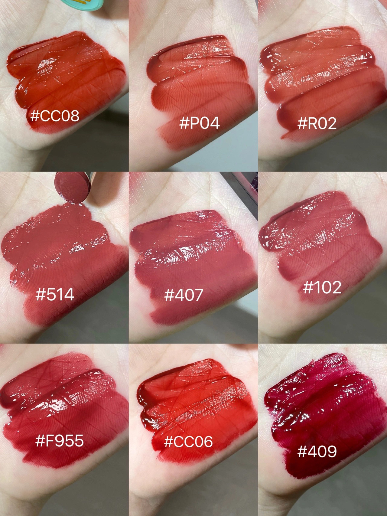 近期试色唇釉!热乎乎滴~ 1⃣️ators#CC08 2⃣️intoyou#P04 3⃣️intoyou#R02 4⃣️酵色#514 5⃣️ysl#407 6⃣️完美日记#102 7⃣️uhue#F955 8⃣️ators#CC06 9⃣️ysl#409 喜爱排名不分先后!就酱拉~