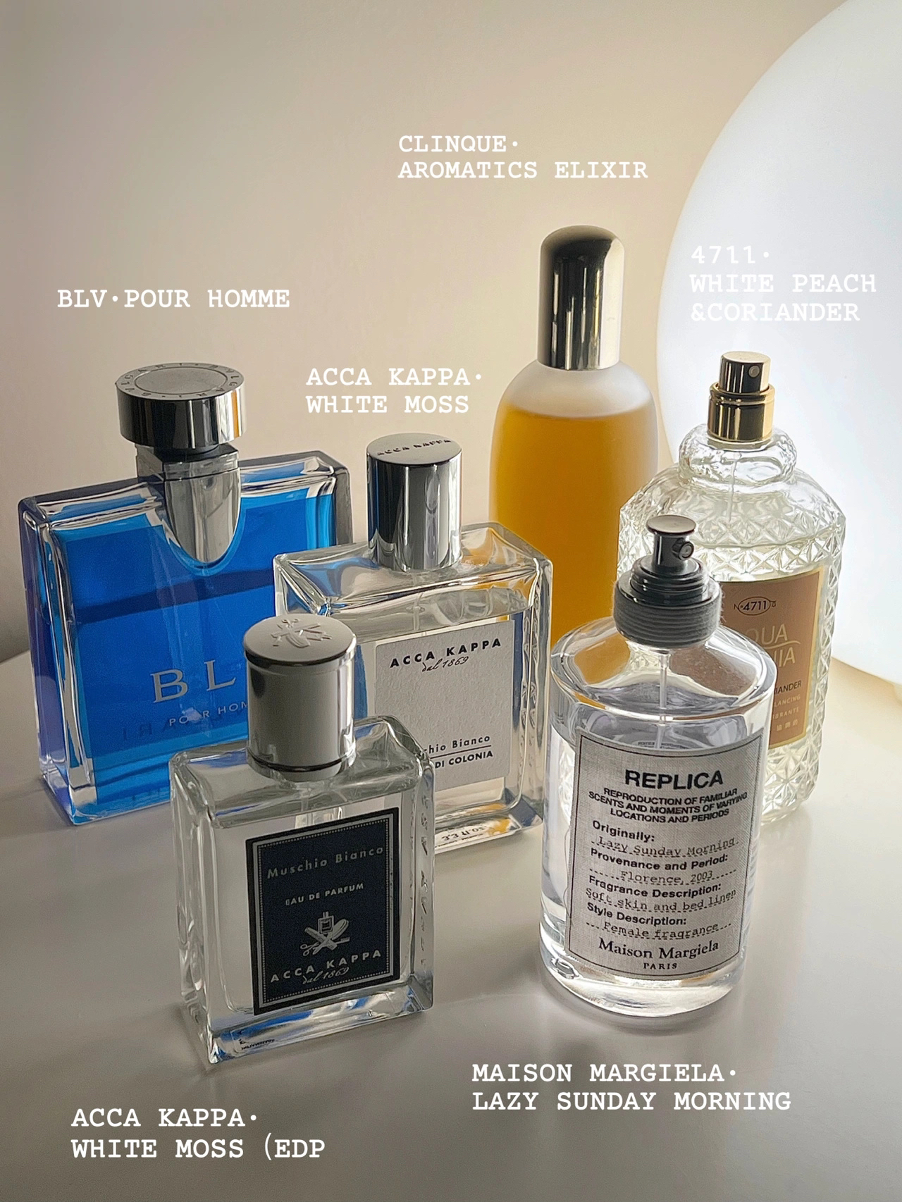 ◽️宝格丽蓝茶 ◾️MAISON MARGIELA慵懒周末 ◽️ACCA KAPPA白苔 ◾️ACCA KAPPA白苔·EDP版 ◽️4711白桃香菜 ◾️ 倩碧不老药 #香水分享