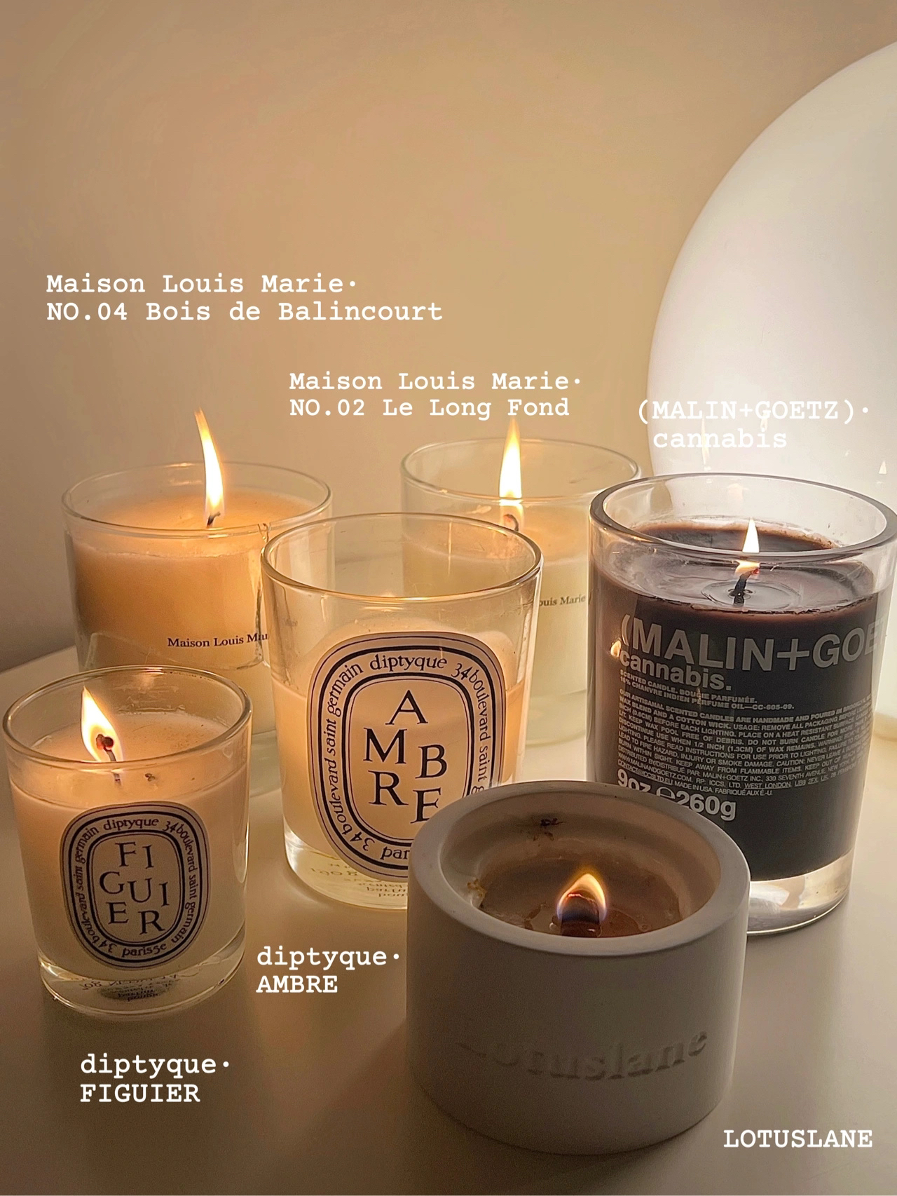 ◽️MALIN+GOETZ麻叶 ◾️diptyque琥珀 ◽️diptyque无花果 ◾️Maison louis Maire No.02 ◽️Maison louis Maire No.04 ◾️Lotuslane桂落满枝 #香薰蜡烛