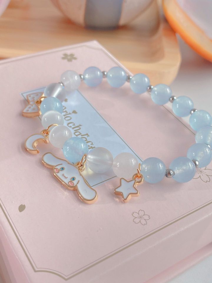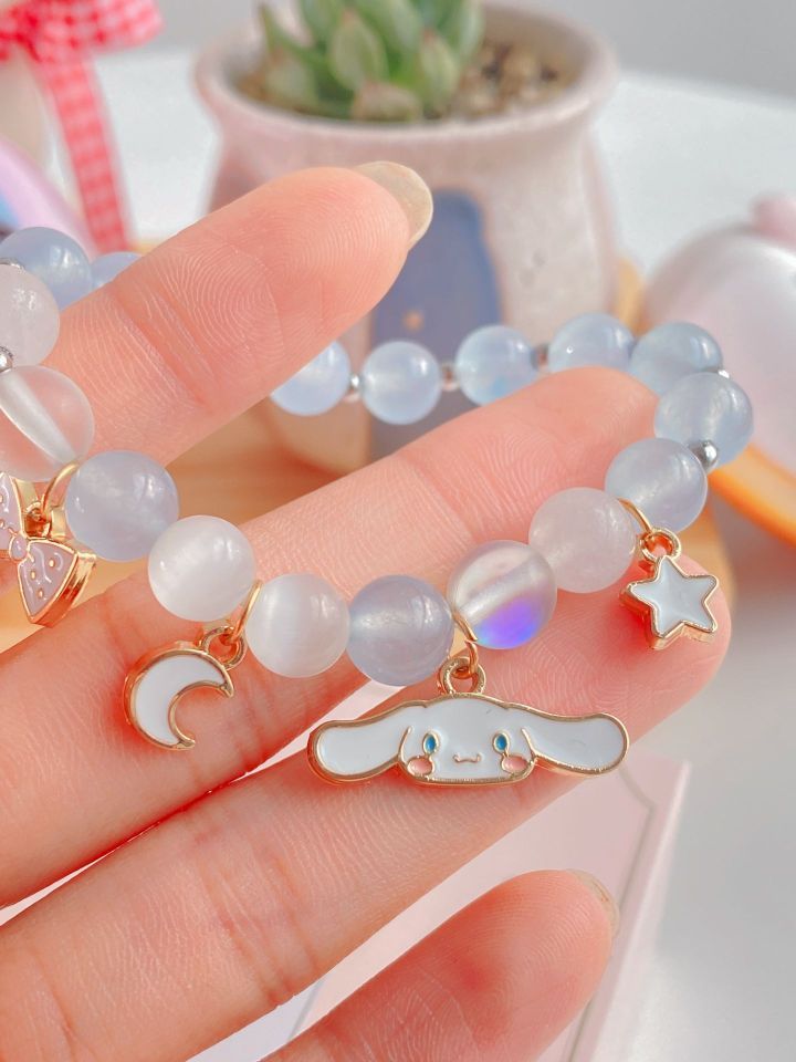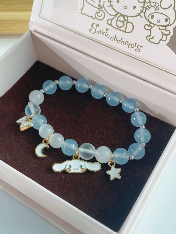 最近老觉得手腕有点空,但还懒得戴锁扣的手链,这款手链爱死了,懒mm 必备 关于玉桂狗的一切都好可爱呀,蓝色水晶十猫眼石,自带偏光在阳光下更是绝美🤩,价格才几十你敢信,质感+包装🎁都是绝绝子 快给女票闺蜜👭安排一条,让我们一起接好运#手链#三丽鸥玉桂狗#潮色绘#好物分享#送礼攻 略井送女朋友礼物#闺蜜礼礼物