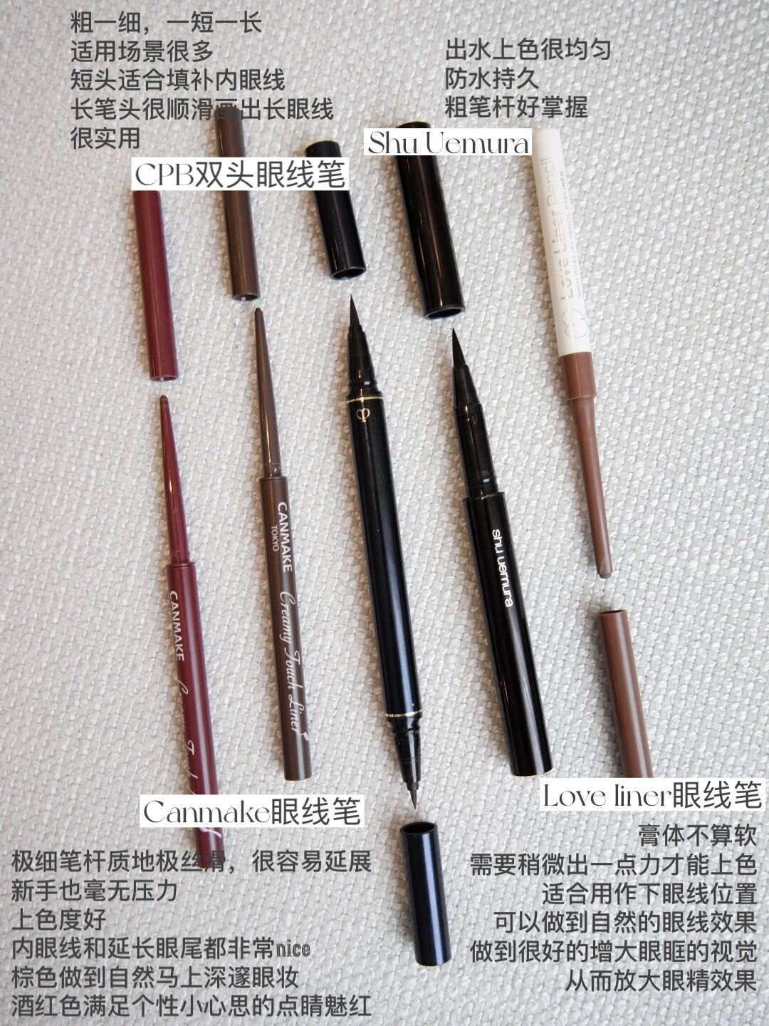 本篇笔记关联了艾杜纱 纤长卷翘浓密定型睫毛打底膏 防水持久定型 6g 经典磨砂黑、CPB/肌肤之钥 光凝润彩隔离长管妆前乳 防晒隐饰毛孔钻石光感 滋润版 全肤质37ml、NARS 小圆罐遮瑕膏 柔哑净瑕提亮遮痘印哑光 6.2g 肉桂粉色Cannelle 等商品,为用户提供真实的使用体验和购买参考。