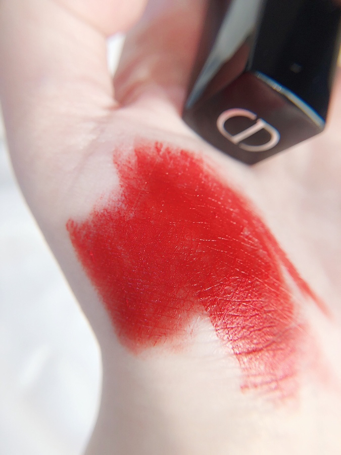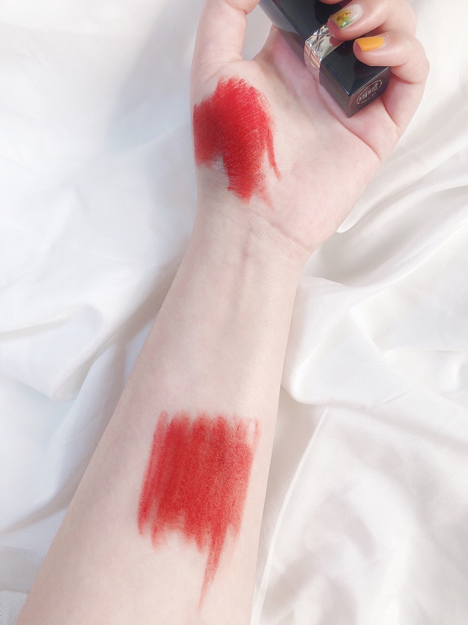 今日份试色——Dior888,人称发财色 ———————💄💄———————— ▫️迪奥的经典色号,我觉得比999个更好看一点,hold不住999正红气场的妹子可以考虑这一支~~颜色偏橙红,橙色调多一些,薄涂显白,厚涂风情! ▫️质地比较滋润,上嘴哑光,后续有点拔干,做好唇部打底就👌年底了,期待暴富的女孩不来一支吗?毕竟发财色哈哈哈