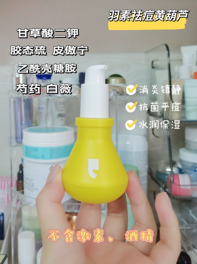 最近熬夜肝ddl 脸部状态不太好 长了几颗痘 使用几天祛痘黄葫芦 让我惊讶 护肤完点涂在痘痘上 消肿退红很快 连着用几天痘痘就没辽 本重敏肌也能用真是太爱了! 看了成分 不含酒精香精 不会刺激皮肤 胶态硫 皮傲宁 能够抗菌祛痘 甘草酸二钾 芍药 起到消炎镇静的作用 白薇 乙酰壳糖胺 能水润保湿 起痘的地方涂了祛痘精华液也不会干燥起皮 这个黄葫芦简直就是我期末季的救星⭐️