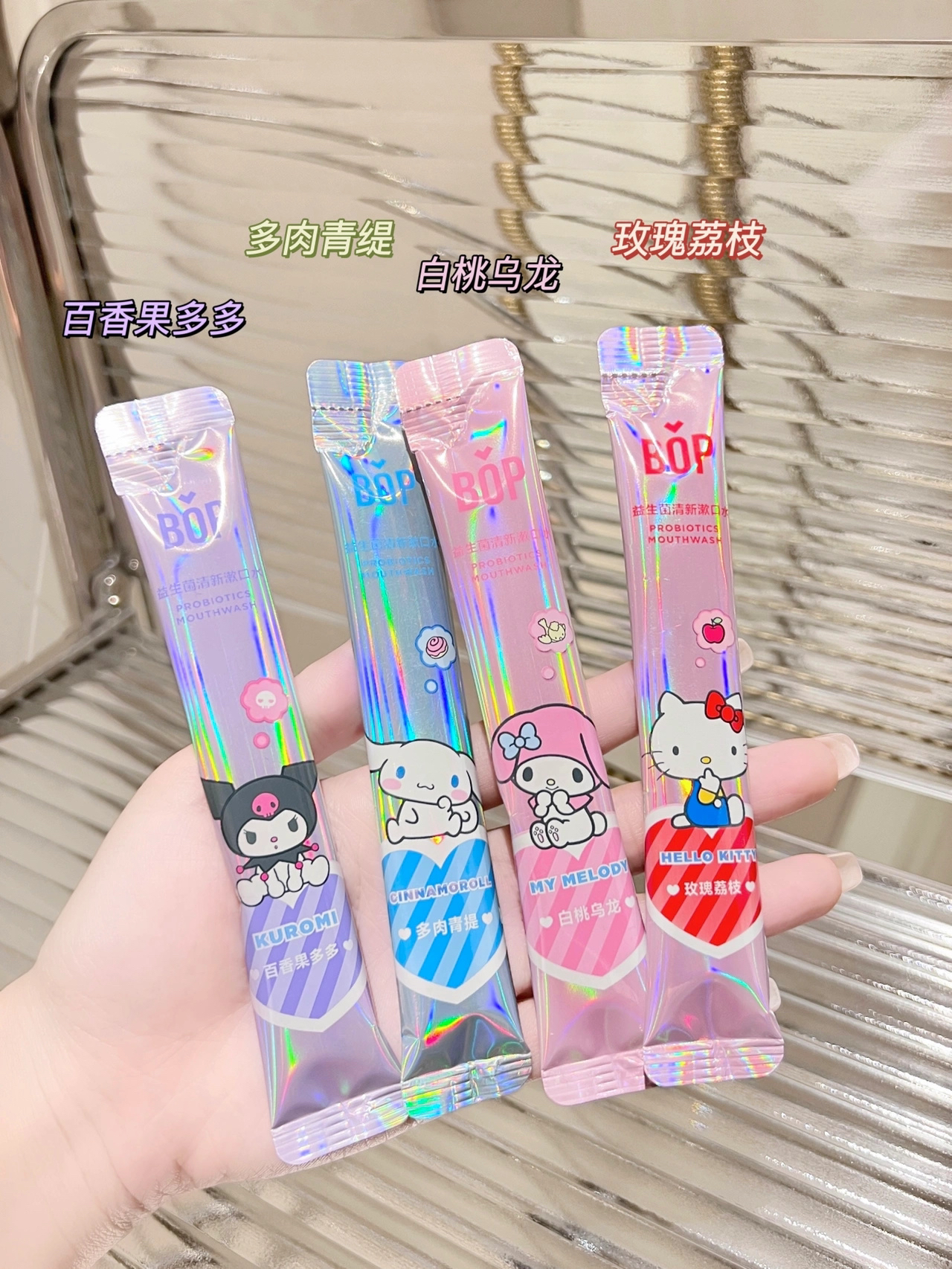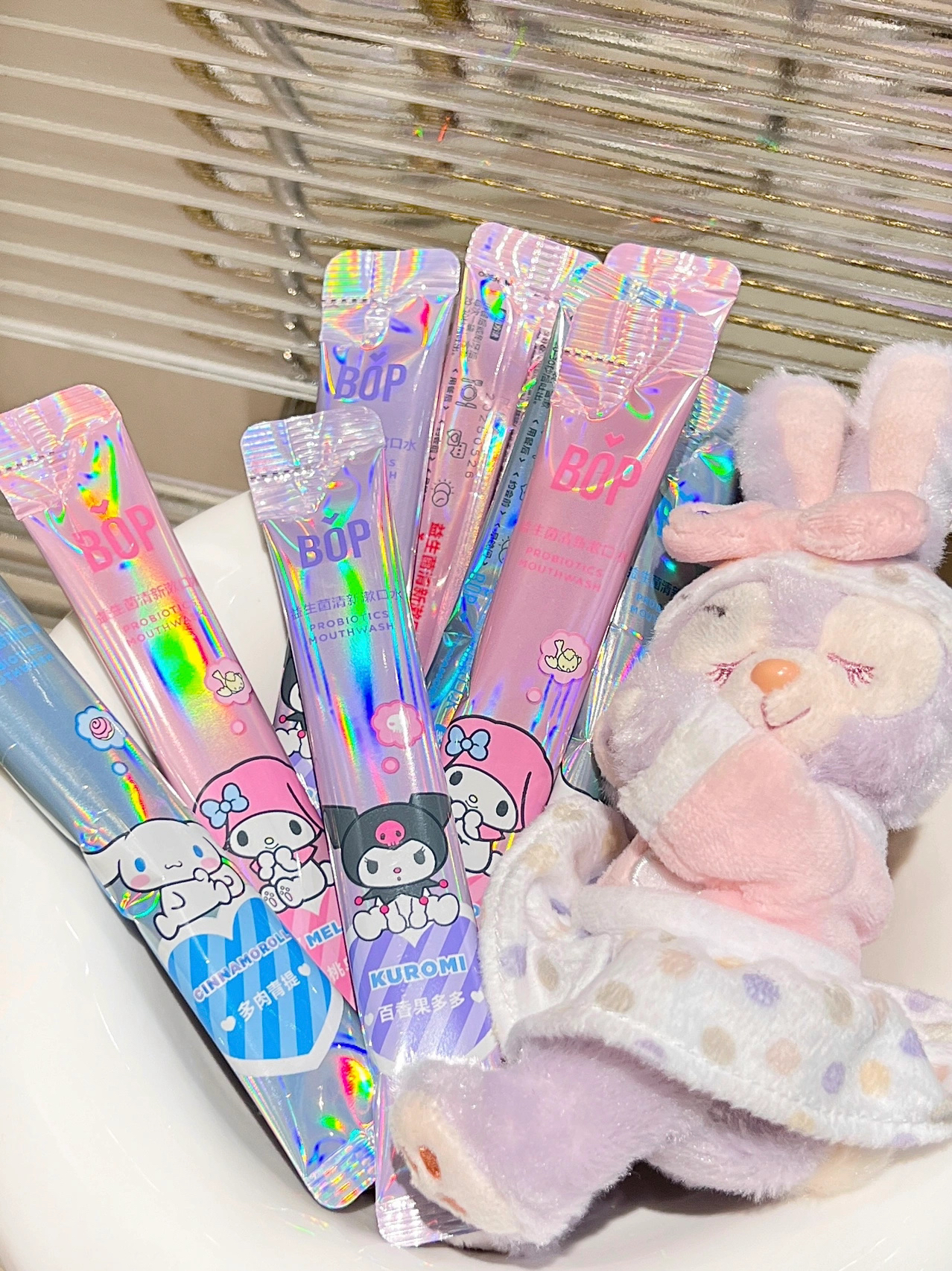 对不起钱钱!BOP X 三丽鸥的联名漱口水真的很难不心动! 一下子就萌到了我的心...巴上,每一款都好可爱呜呜 每个口味都是特好闻的果汁味儿 香香甜甜一点都不辣口! 谁能拒绝得了啊~ 小小一条随身带也炒鸡方便 吃完饭用它漱漱口 嘴里好闻到我都想啵啵我自己 #好用漱口水有哪些 #BOP漱口水 #口腔清新 #BOP三丽鸥漱口水