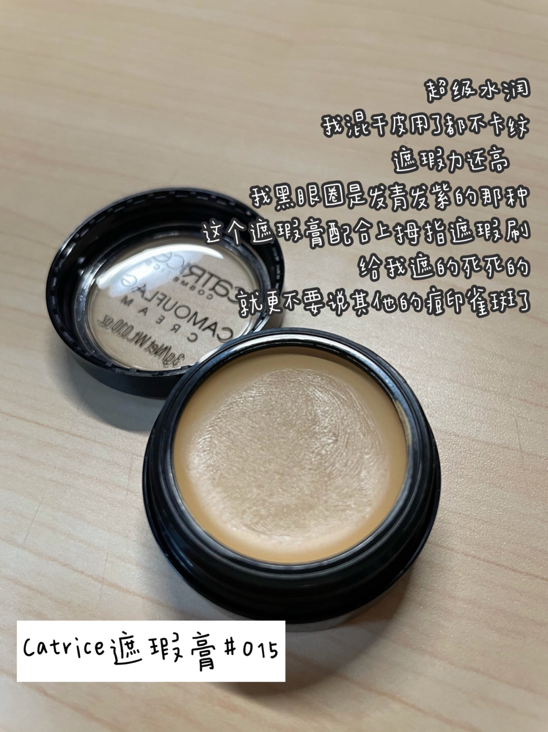 真的真的太绝了 我都不知道该怎么形容这两个搭配 两个都是绝对平价!!学生党必备!! - catrice遮瑕膏015 这个遮瑕是个德国小众品牌 他们家的粉底液有段时间在小红书很火呢 我选择的颜色是中间的自然色 这个色号比较适合遮黑眼圈和深一点的斑点 如果黑眼圈很严重的话 建议选更深的颜色 而且真的很便宜 他们家之前那个五色遮瑕也挺火的 但是单色遮瑕更适合新手啦 很滋润 不卡纹 我混干皮眼下都没卡 我...