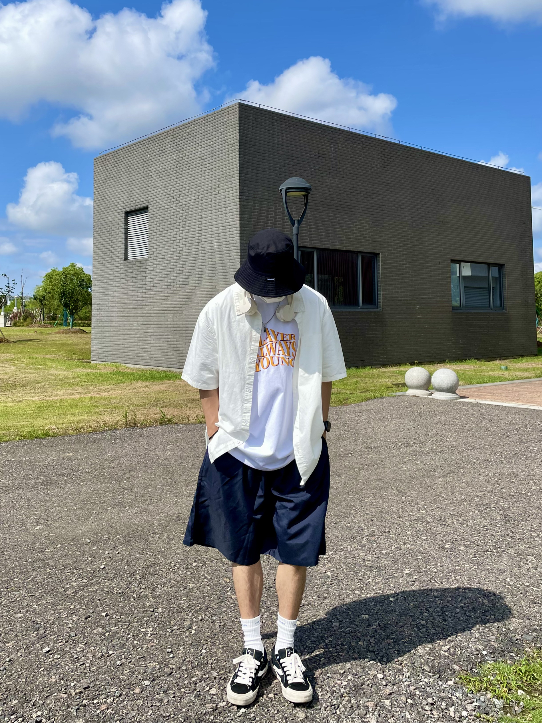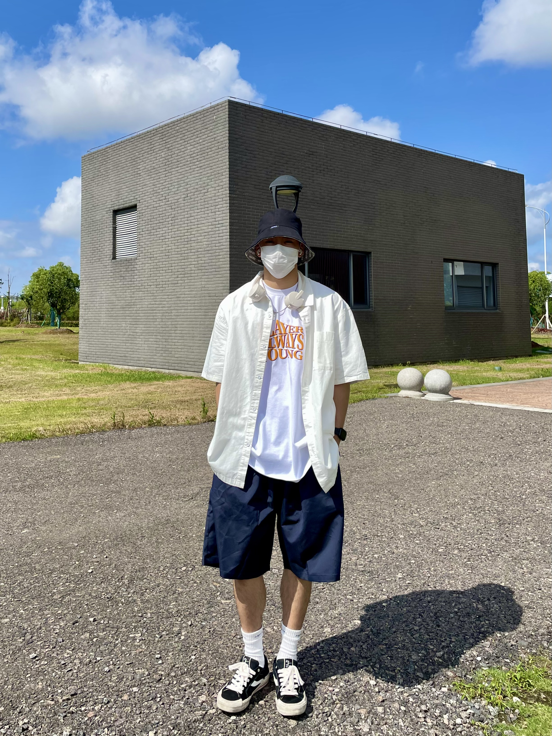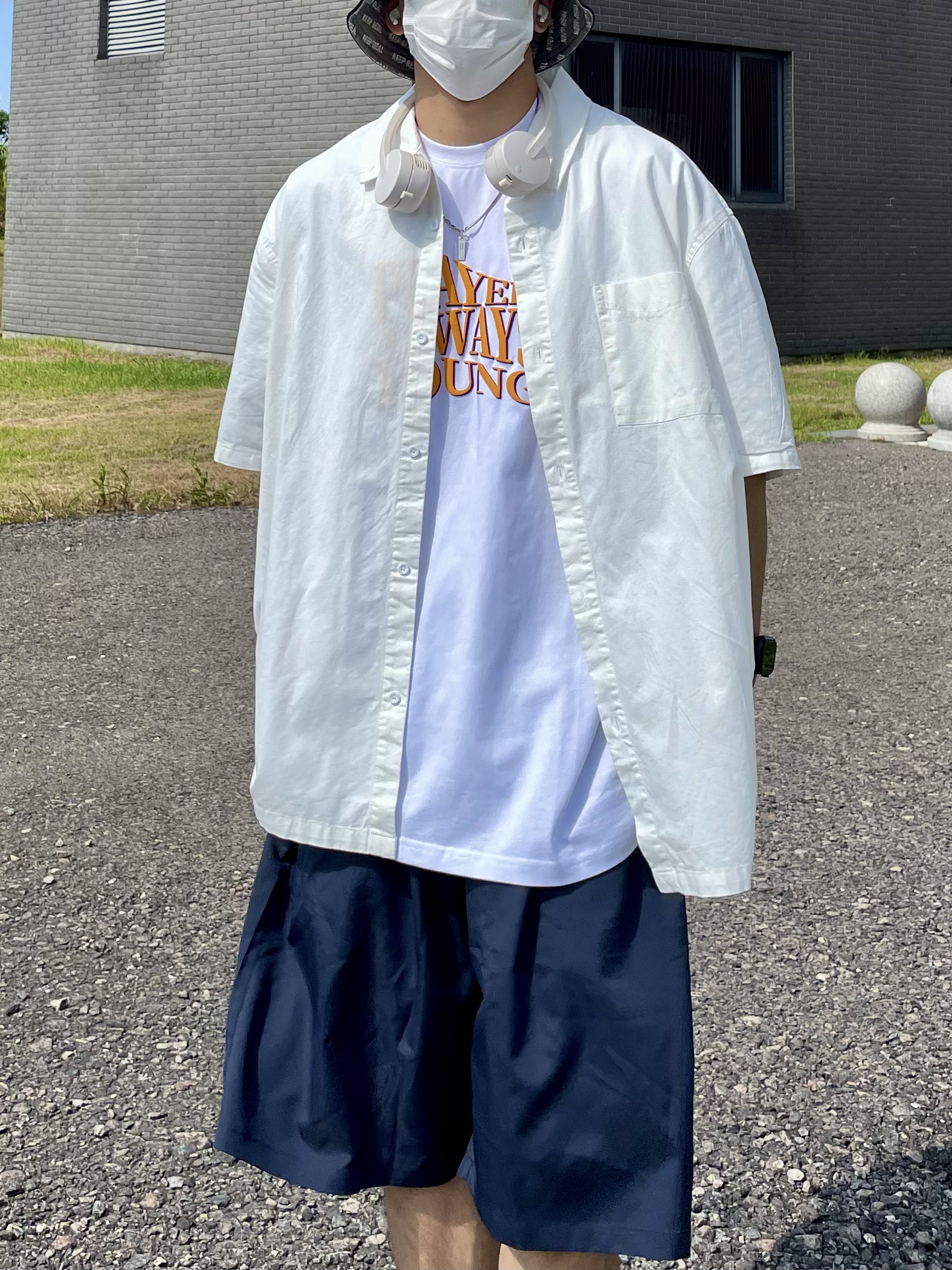 夏季要穿白衬衫呀! 内里穿一件夏季的标配白t🥥 再搭配一件日系五分裤 日系男孩上线🙋🏻♂️ - 👔🩳/Manner Studio 蔓娜工作室 👕/HISKOYI
