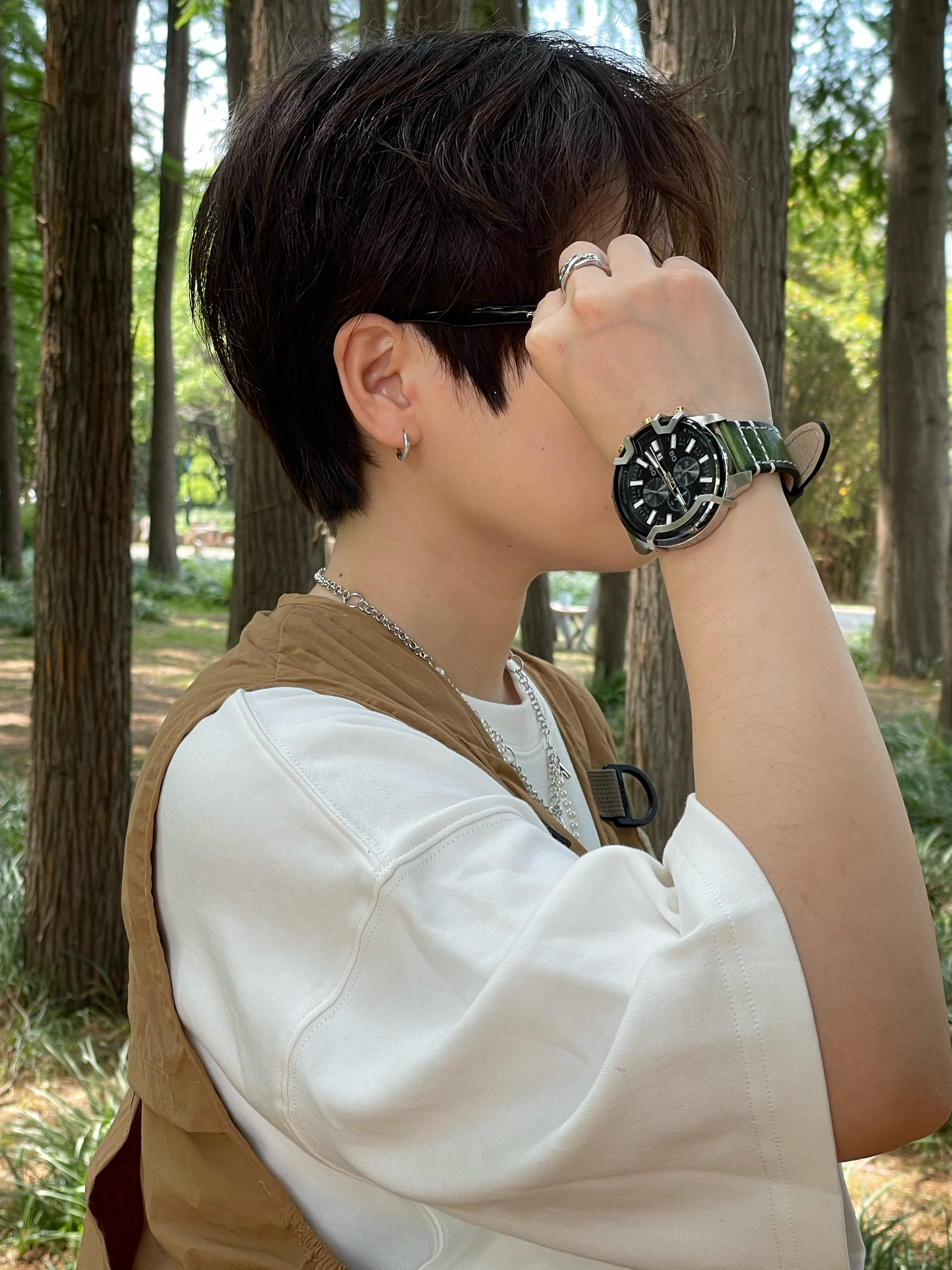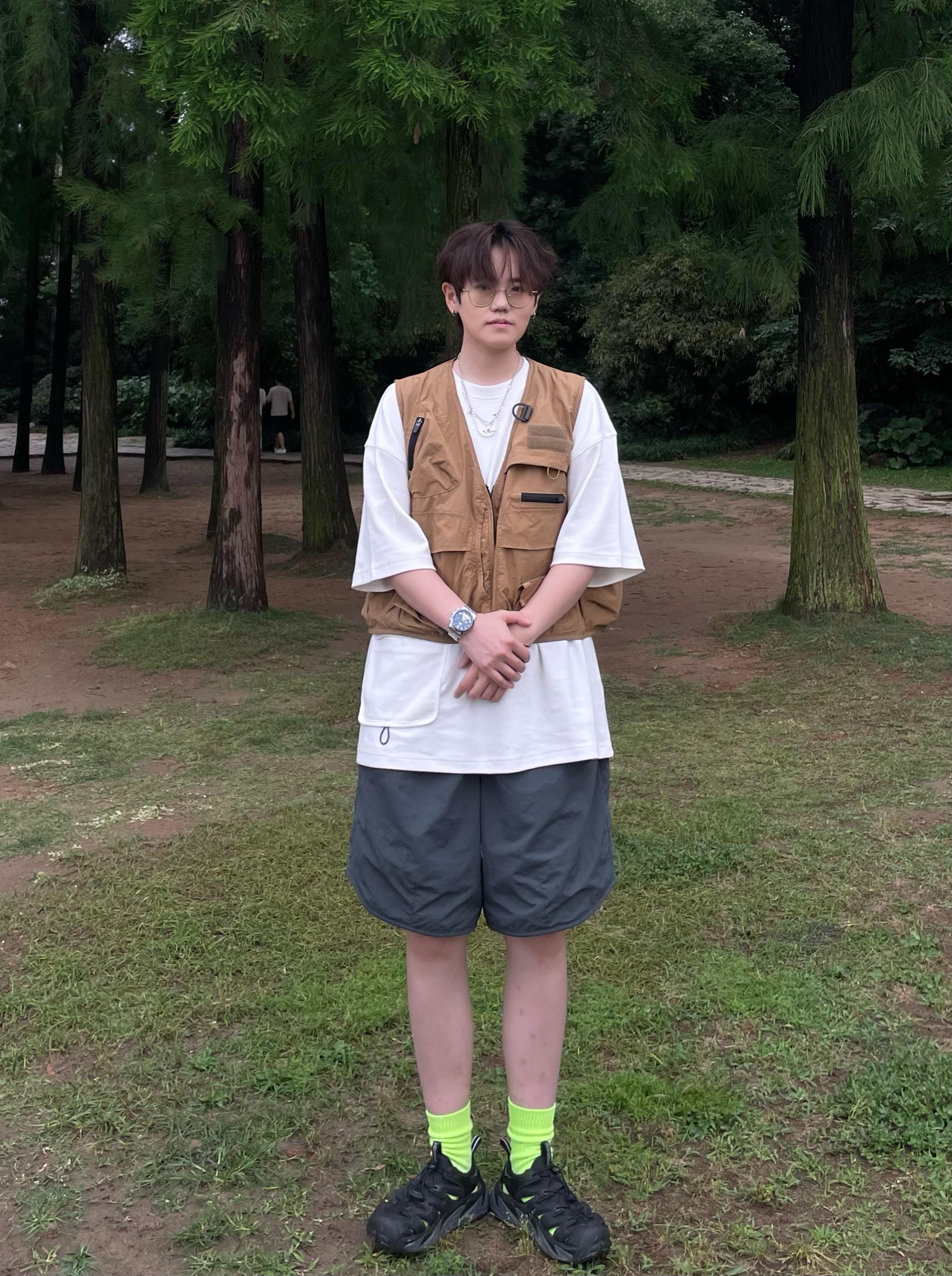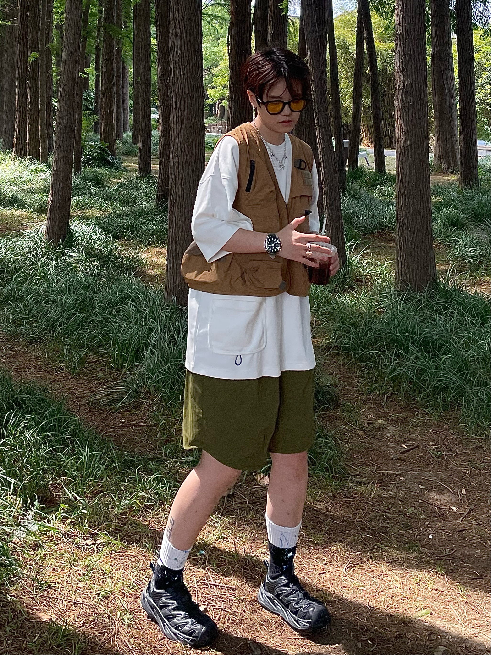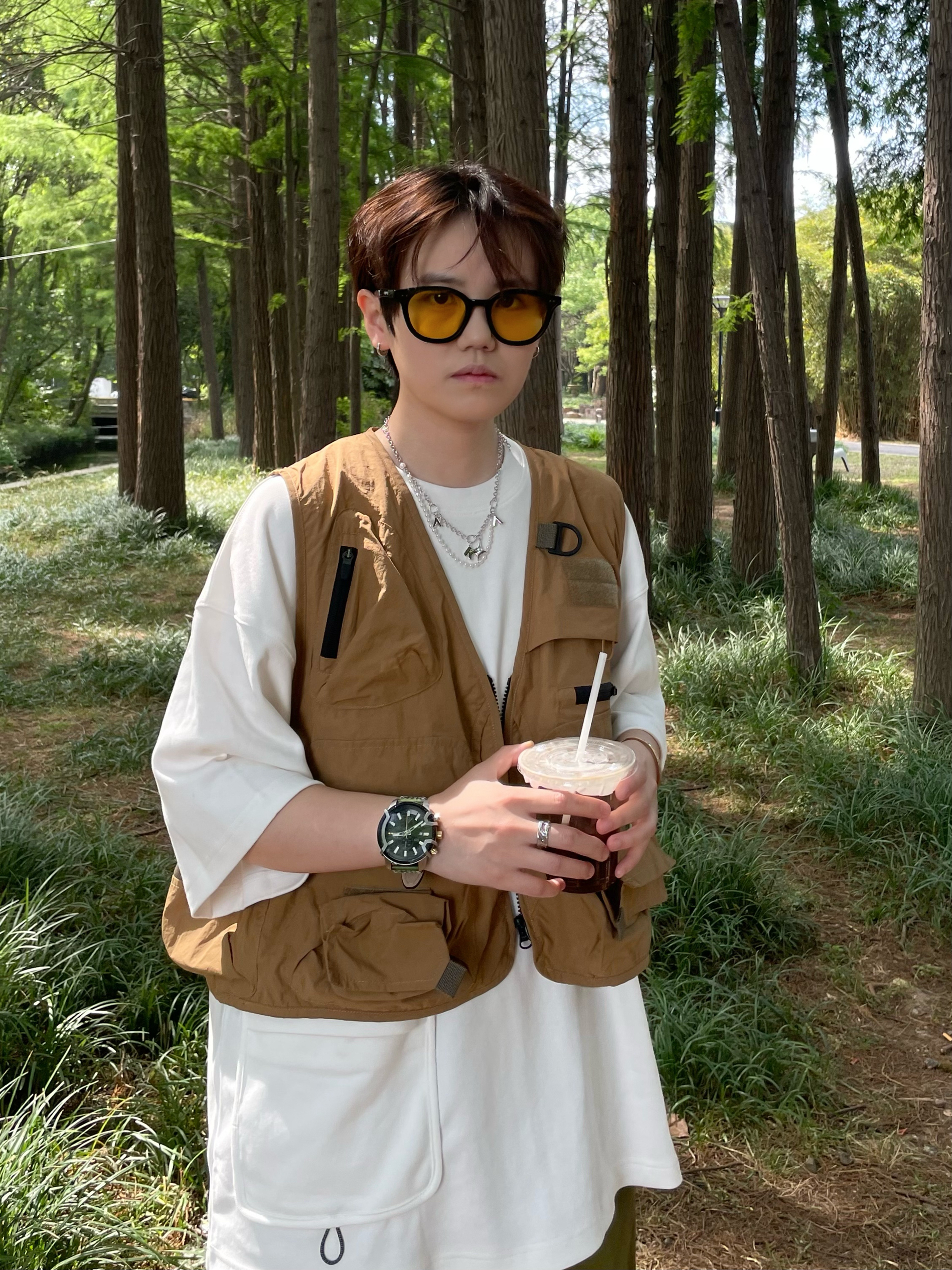 今天走个户外CITYBOY风格 说下穿搭思路: 卡其色钓鱼马甲➕白色高克重打底➕宽松短裤,显瘦又有层次感,出门爬山也很方便! 当然咯,手表是不可少的穿搭细节。我挑选了 DIESEL 的一只银绿撞色的表作为配饰,三眼计时设计,让时间掌握在手里!51MM大小的表盘和绿色的皮质复合表带凸显运动感和斯文感,女生戴也会很有性格,给人powerful的印象,可以考虑作为礼物犒赏自己哦~男生也可以买来送给自己...