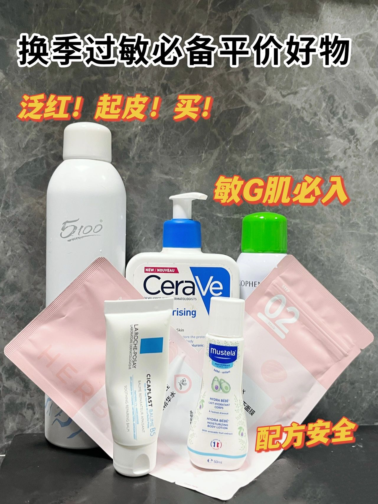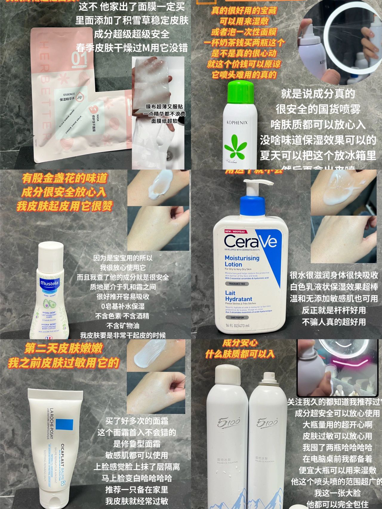 #笔记灵感 以上都是我自己购入 🈚️广 大家放心使用 这次改进了自己的图文推荐 这次的东西都是特意去查了成分比较安全的 才推荐的哦 大家放心种草 理性购买❤️ 🏷5100极地冰泉喷雾 成分安心什么肤质都可以入 这个真的我的爱我之前就说过它 超轻轻的水 喷雾可以包裹全脸 🏷理肤泉B5面霜 皮肤泛红就用它晚上厚敷第二天皮肤嫩嫩 我之前皮肤过敏用它的很棒 🏷Cera Ve身体乳 我妈妈身体皮肤很敏感春天...