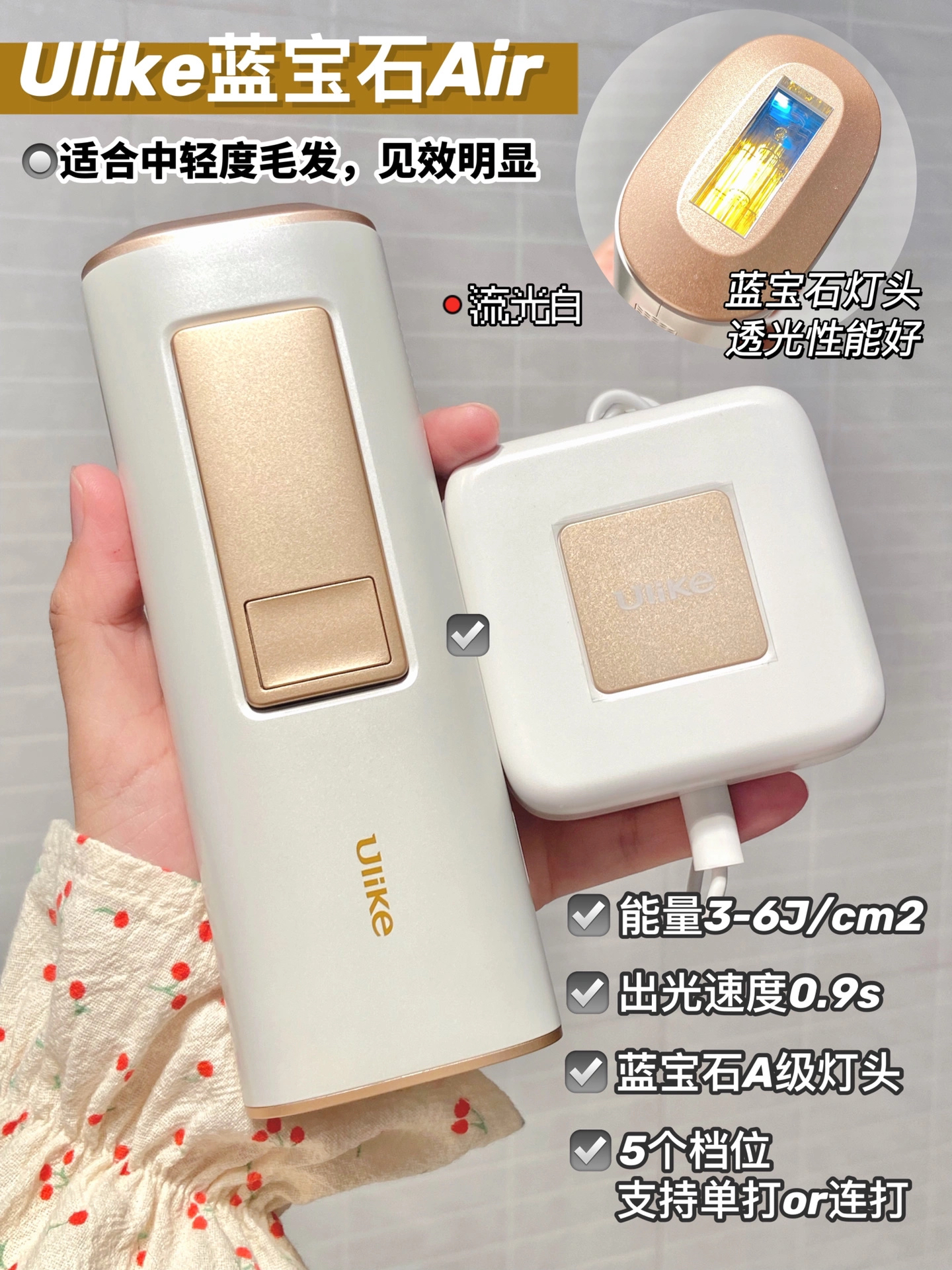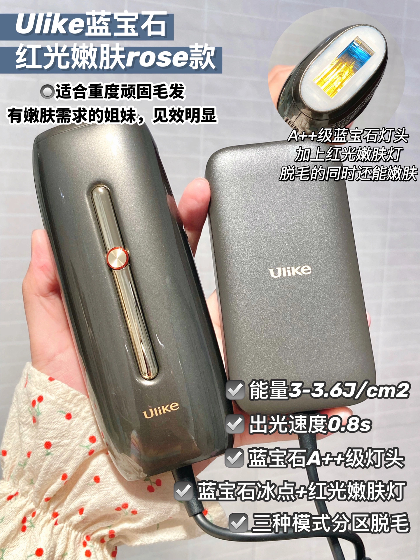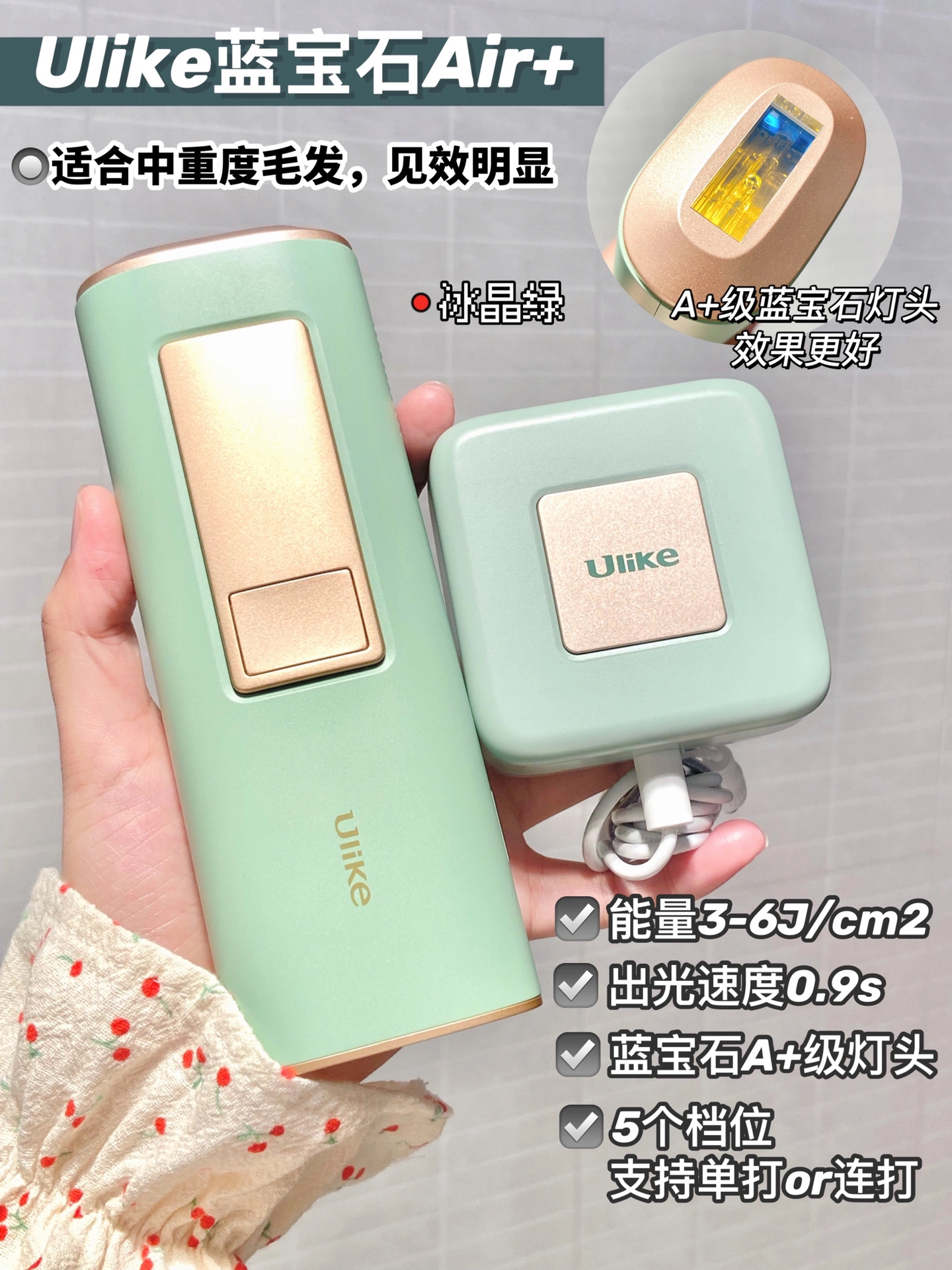 本篇笔记关联了Ulike Air2蓝宝石冰点脱毛仪 家用全身无痛激光 冰晶绿 等商品,为用户提供真实的使用体验和购买参考。