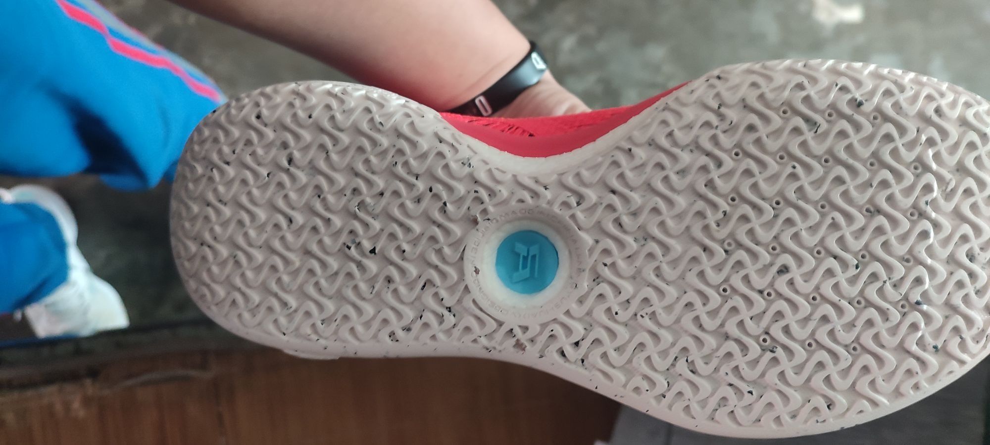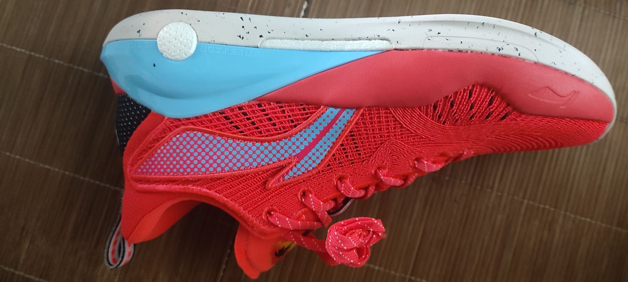 鞋子包裹 鞋子的包裹整体很不错,上脚的感觉很紧致,踩开包裹之后慢慢就舒服了,个人感觉并不存在什么偏大偏小,正常码就好。 缓震 一层李宁云加一层低配䨻,刚上脚的感觉呢,明显的下压能感觉到整个脚底板有一大块凸起的地方,打了几场之后呢,感觉就是挺平的。但是并不是说缓震没了,而相反打了几场之后呢,才刚需要把它踩开。毕竟一城李宁云先在上面,所以才开的时间呢比较久。如果要说很适配的人群的话,那140开头的斤数...