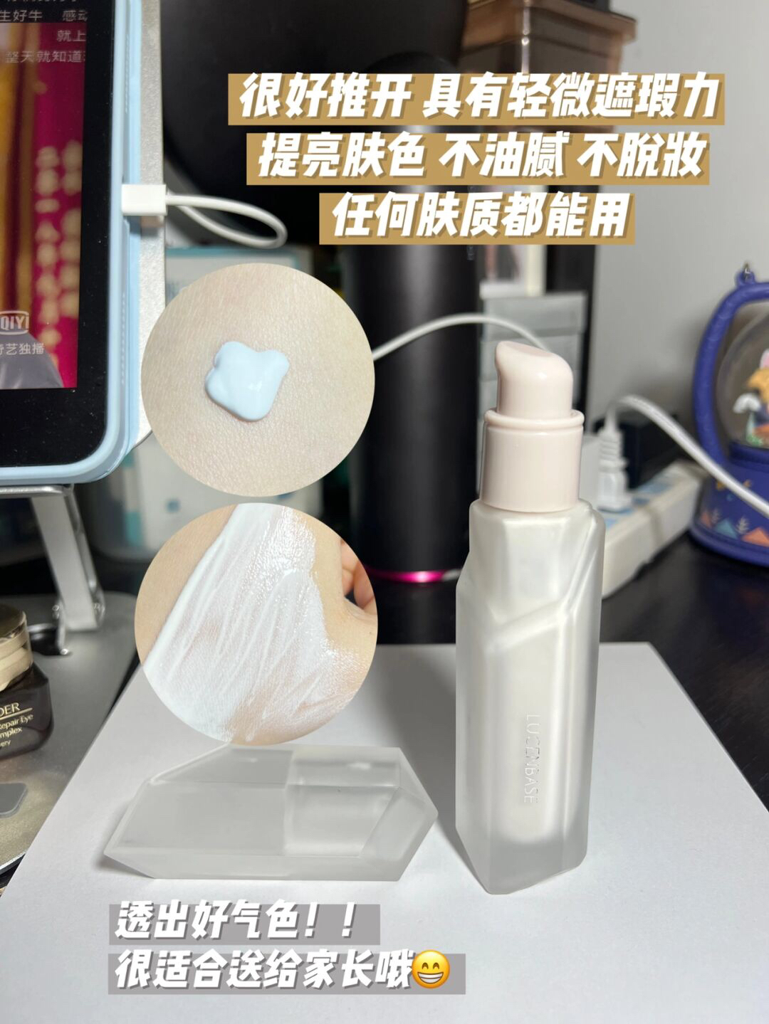 说实话家里水乳真的多 很多用起来平平无奇的 也就放在那里了!我熬夜脸色差才会用它!我真的会谢 那天认认真真的涂 感觉它的水里面像有精华是的 涂完以后感觉皮肤挺通透的 乳液再去滋润 蛮舒服的 熬夜垮脸可以看看它!我会坚持使用1个🈷️看看有什么变化它是XDG的熊果甘水乳哦 真的不戳!中国人不骗中国人 这个隔离霜提亮肤色真的不错👍而且他的包装也很好看,是那种能看到!我从冬天就开始用冬天用它也不会出现...