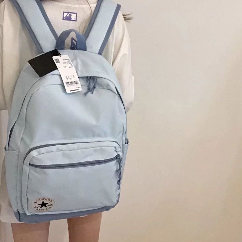 包包名称👀Converse Go 2 Backpack 双肩包 匡威双肩包天蓝色太仙了开学季学生党必入 作为颜控的贫民窟女孩,这个匡威新款双肩包的颜色颜值真的是深得我心。 随便自拍都各种好看,不挑衣服,怎么样搭配都是满满元气! 关键是太能装太实用了,冬天的羽绒服都完全可以放得进去,一年四季都能背💎图源来自网络 侵删