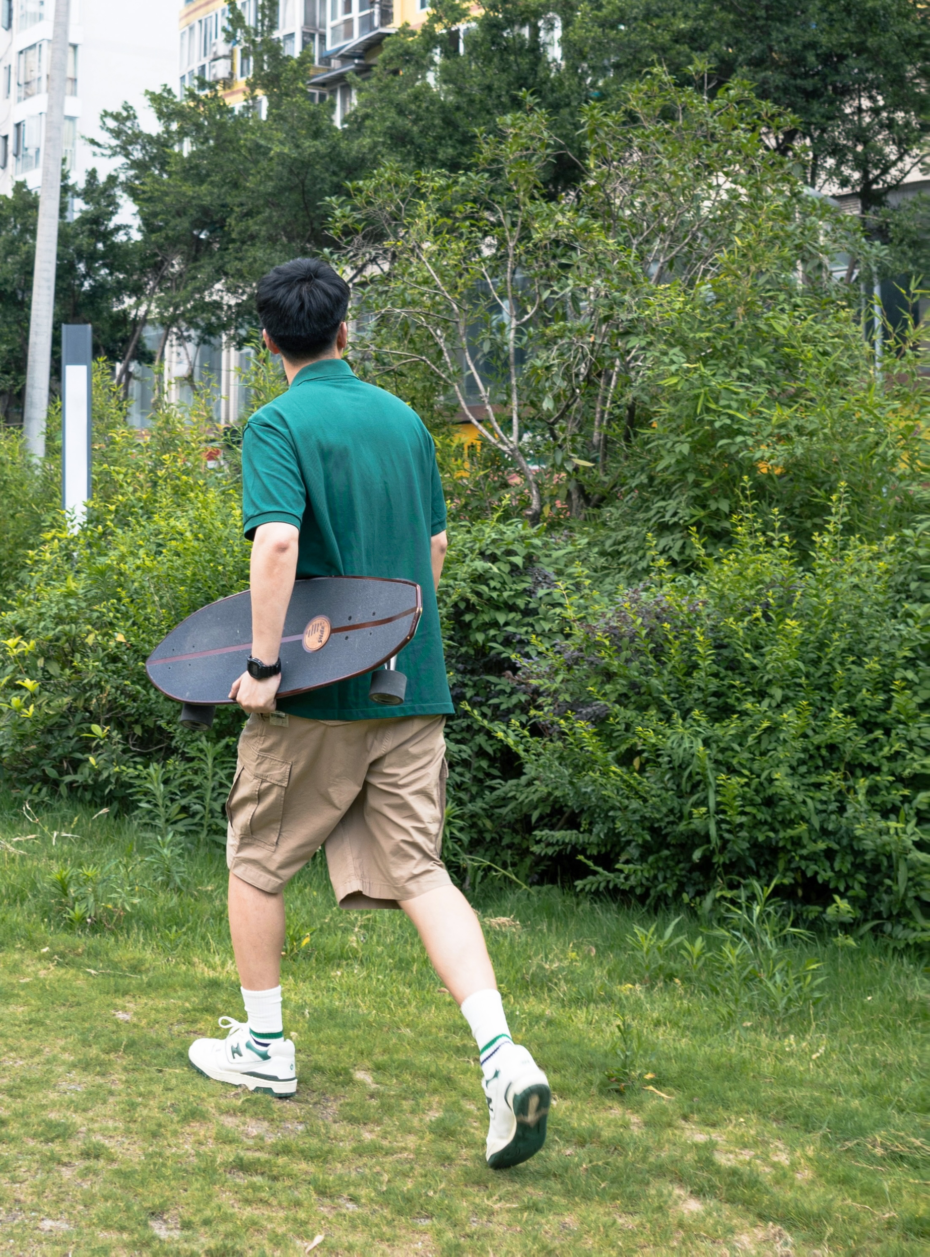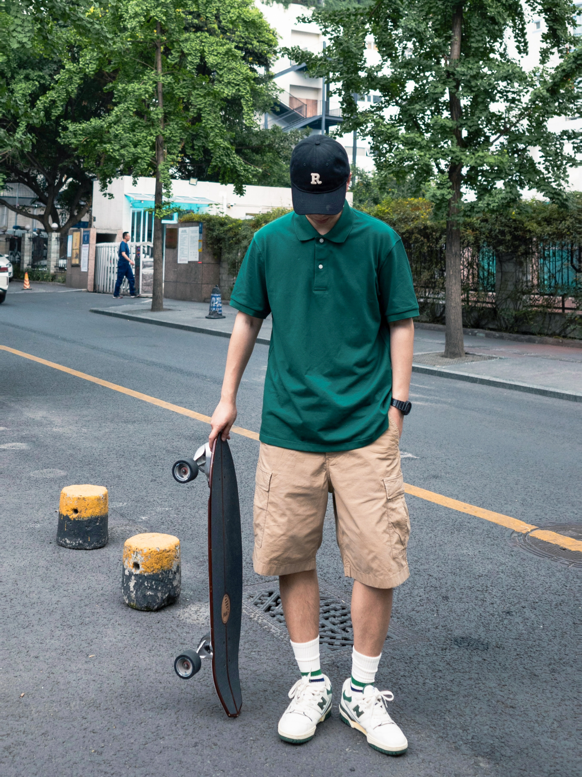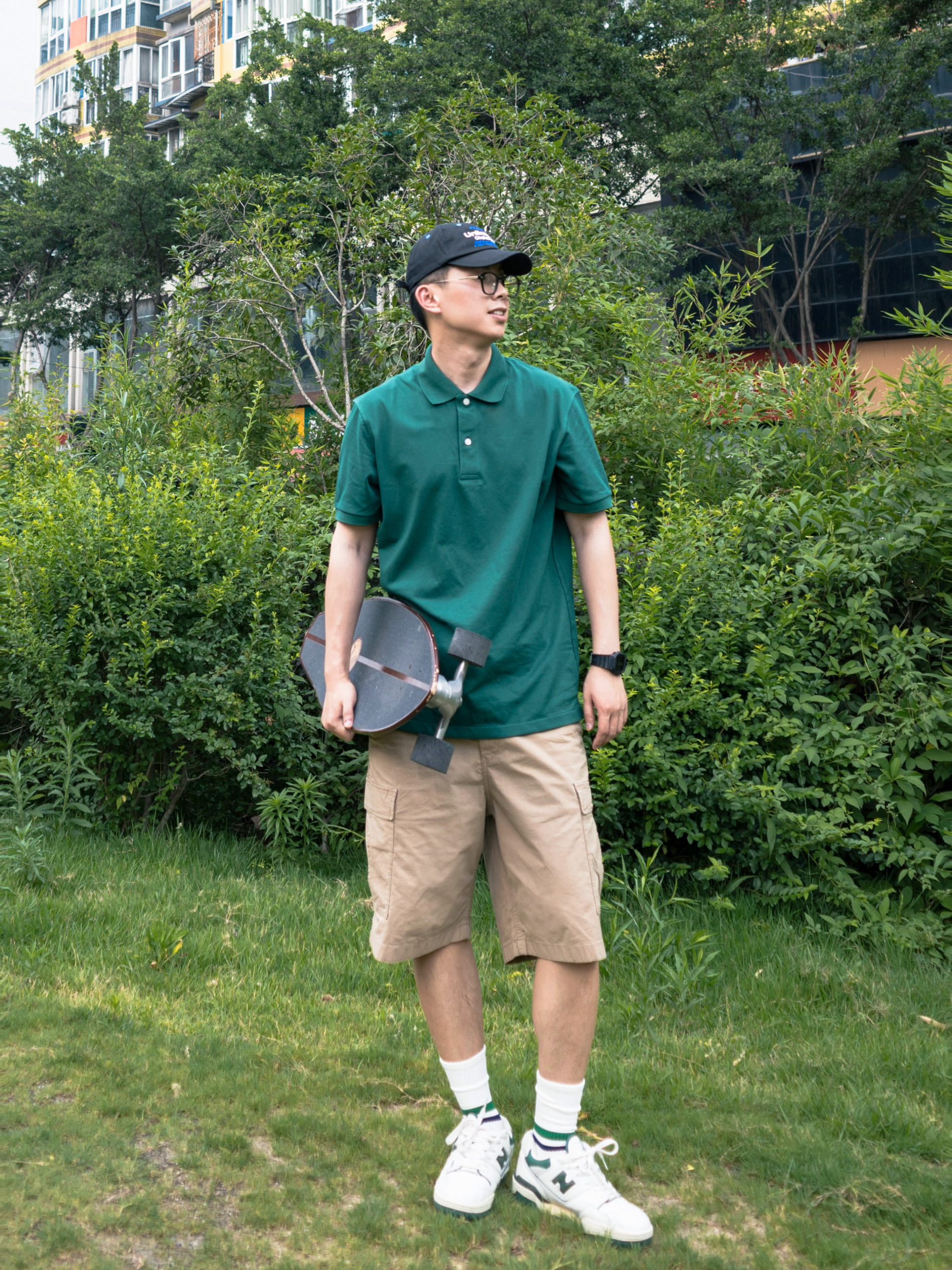 今天是滑板🛹少年,基础的款型也可以轻松搭出运动少年感! 超百搭的工装短裤,如果穿的舒适又运动?宽松!上身效果参考膝盖,稍稍过膝的尺码和不过膝是两种感觉~ 运动的polo绿色显白又透气,完全没有一般Polo衫的闷热感!