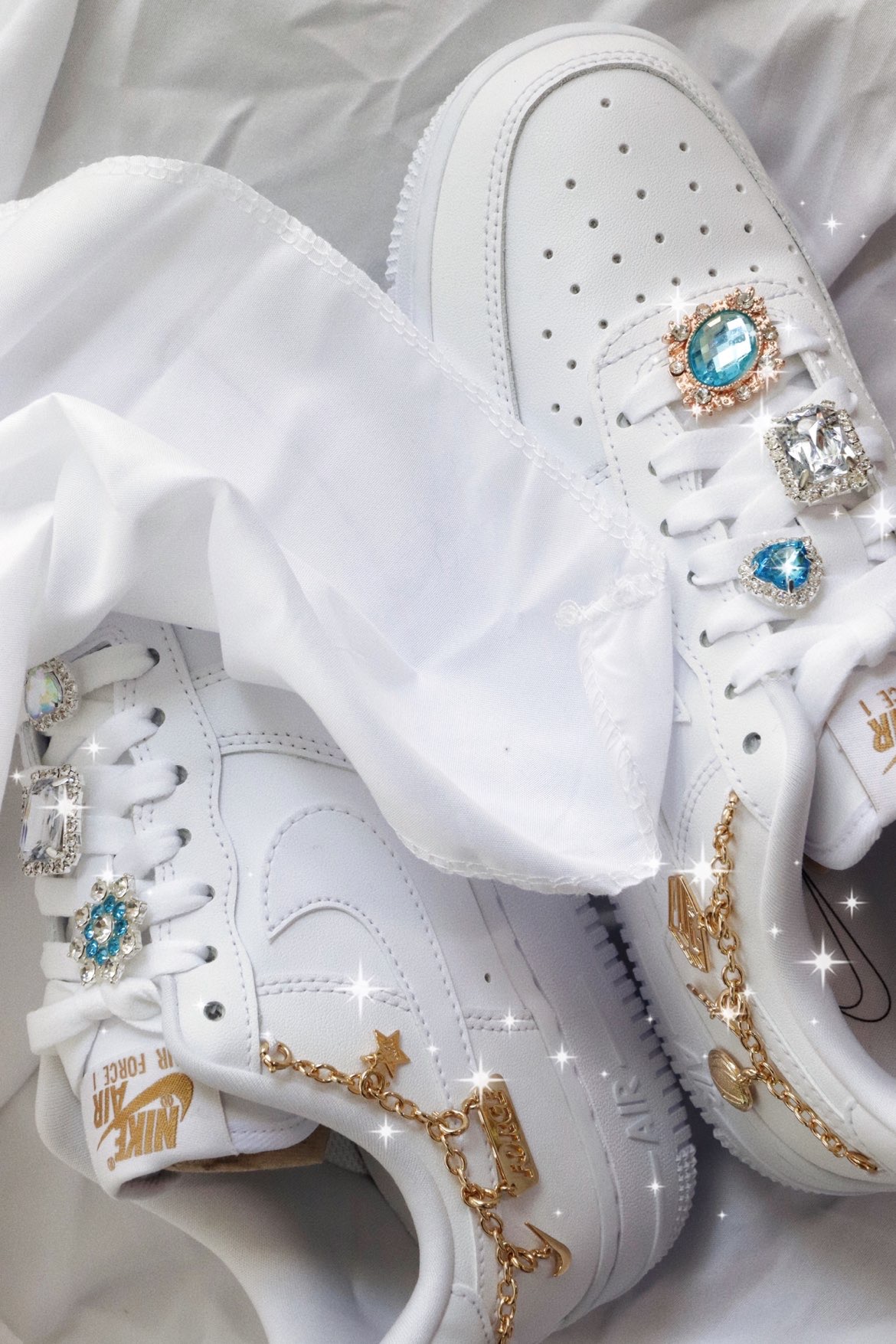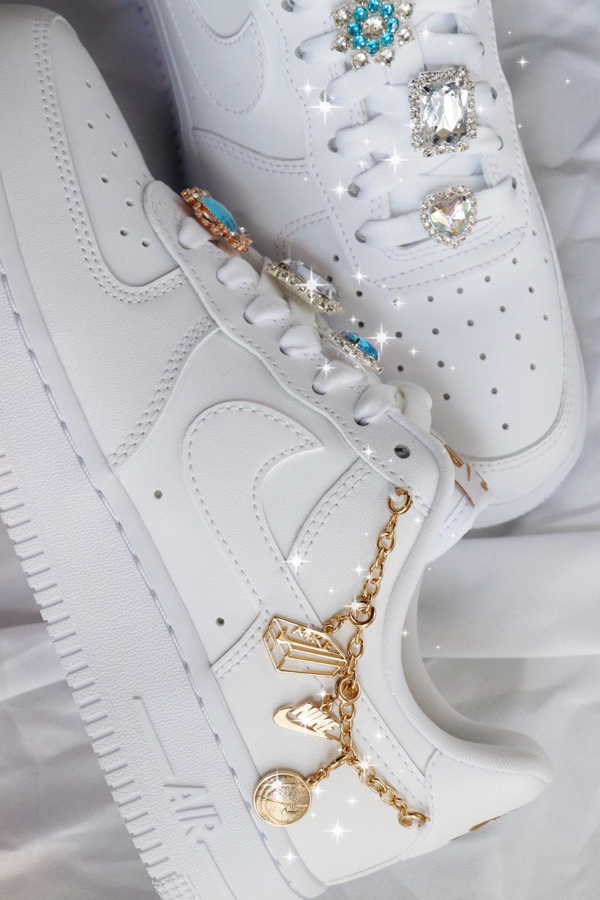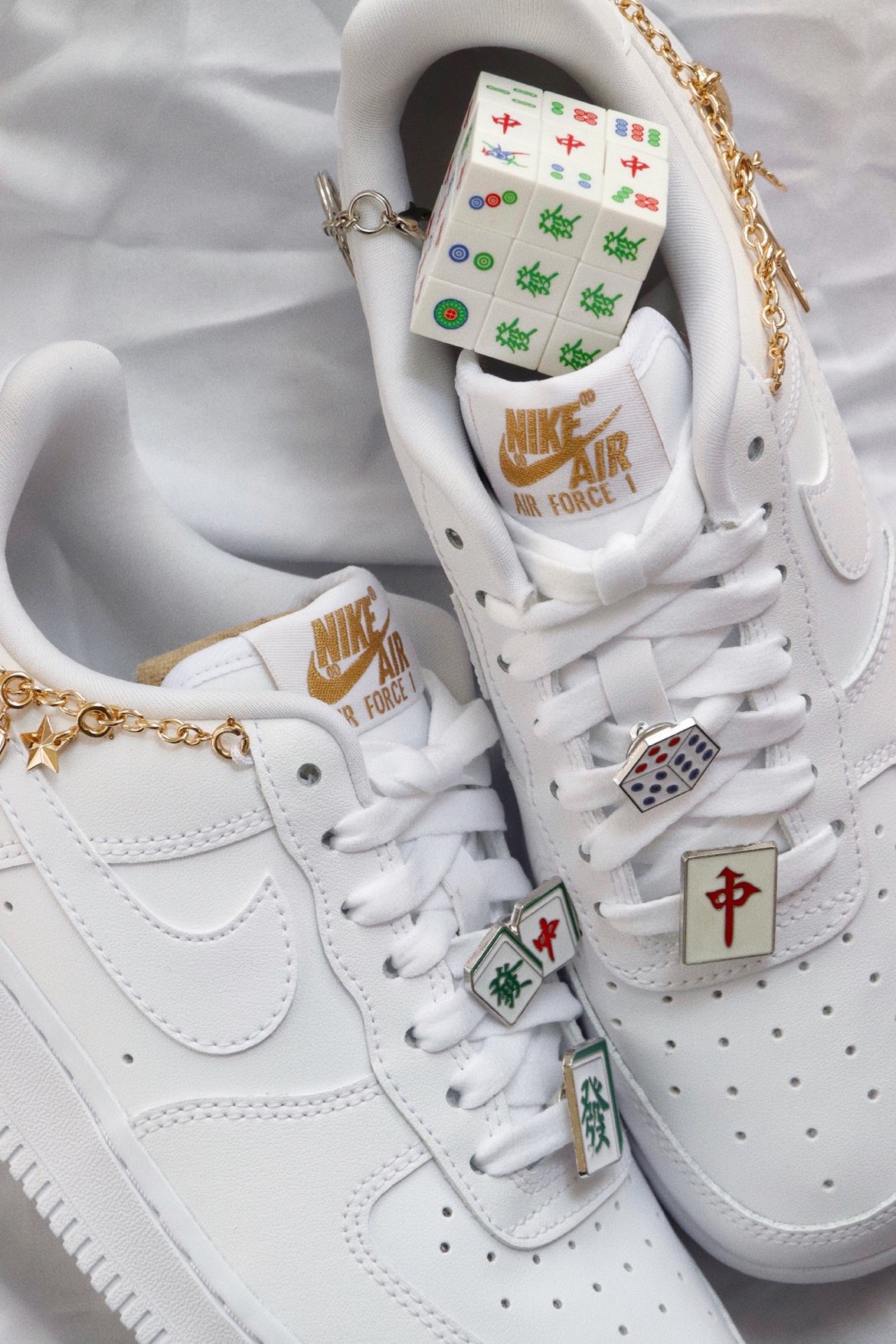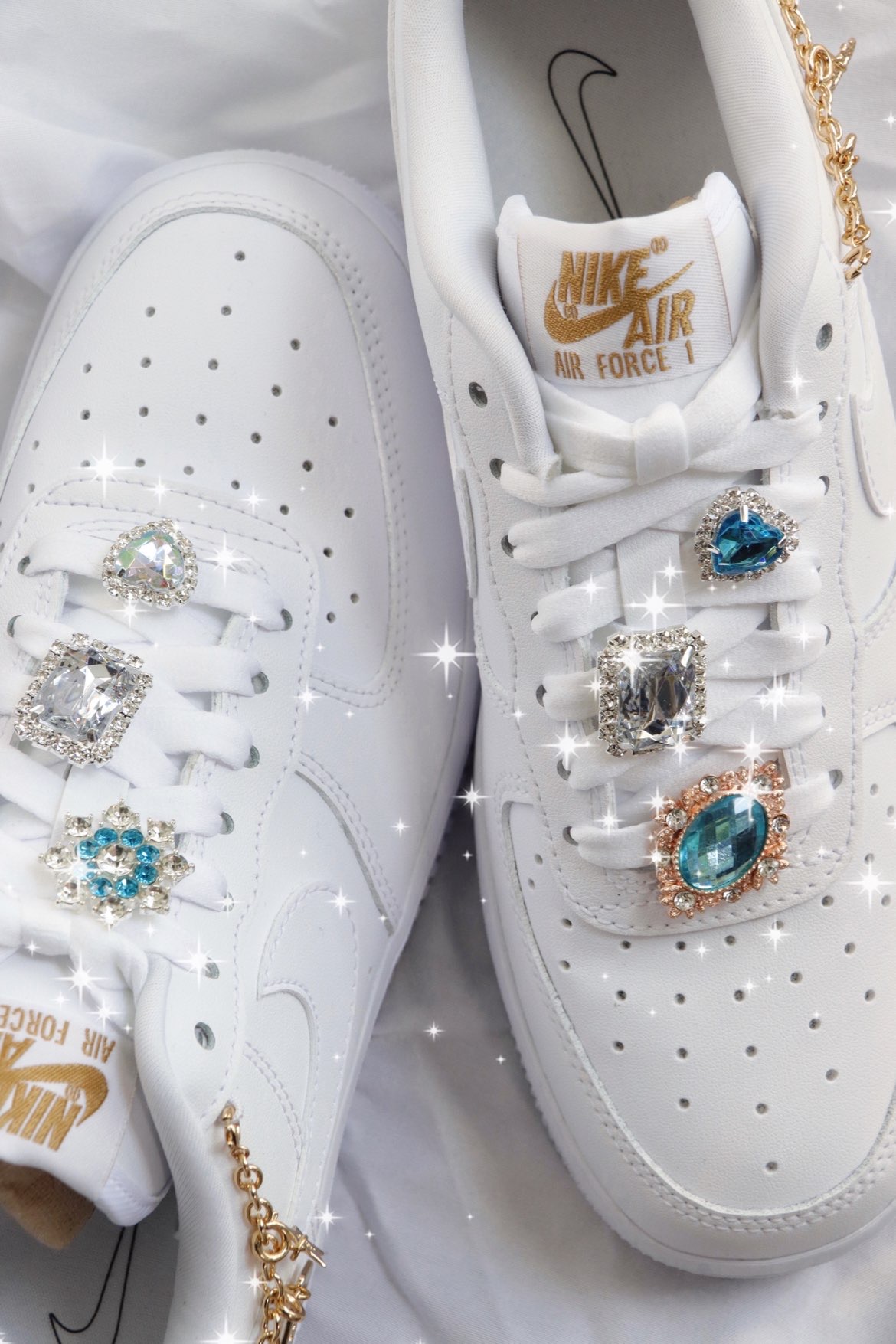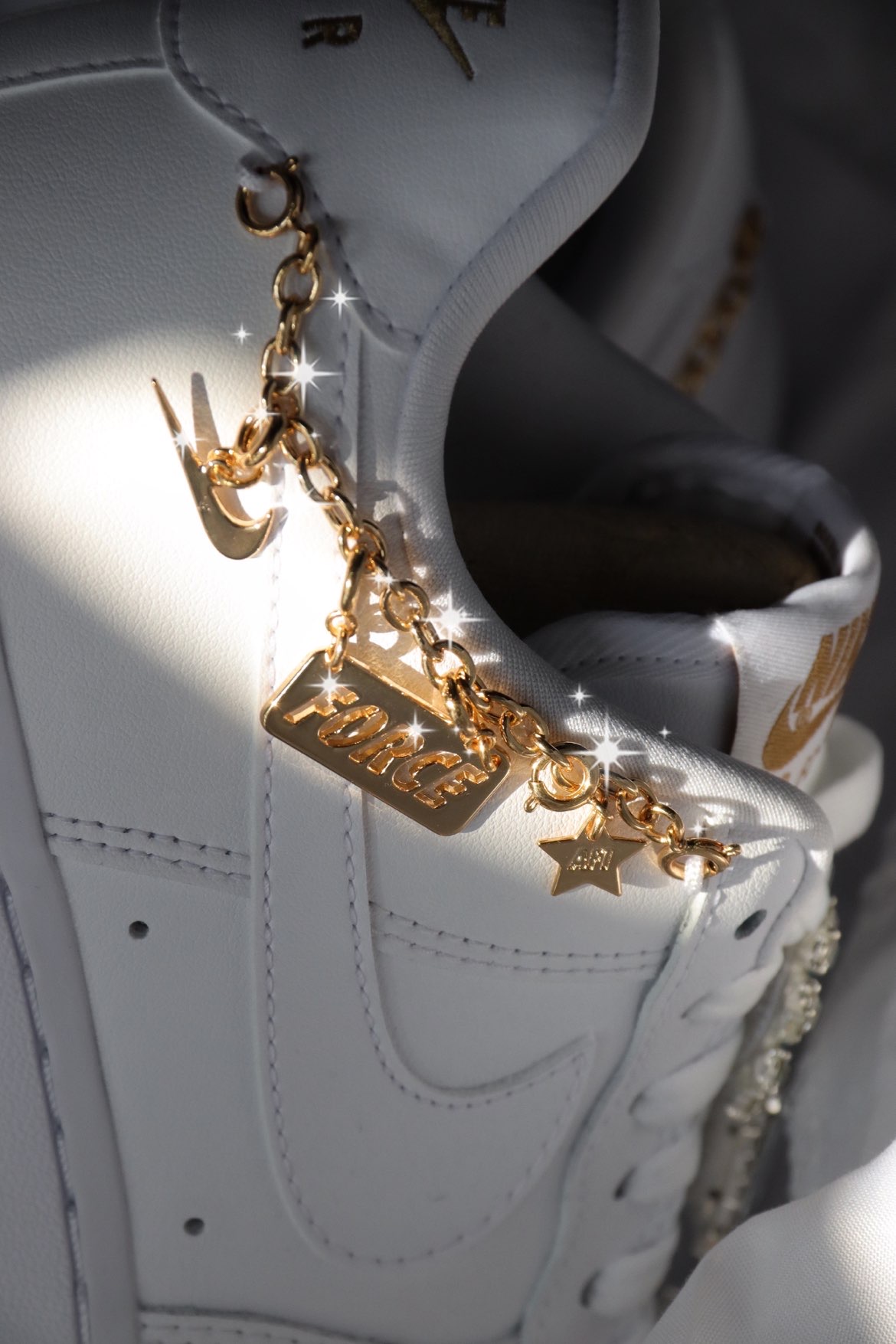 Air Force 1 Low LX “Lucky Charms”女款 白色链条 不知道是从什么时候,这种带配件的AF1开始火了起来,印象最深刻的是那双泫雅同款四钩,原价随便买的一双纯白AF1,后面被拿去各种“配件爆改”,现在都快2k了,真的很夸张。 最近Nike出了一款官方版本的“配件鞋”,以纯白色为基底,在鞋领最上端穿了根金色链条到后跟外侧,鞋是很简单一鞋,但是加配件这个创意…...