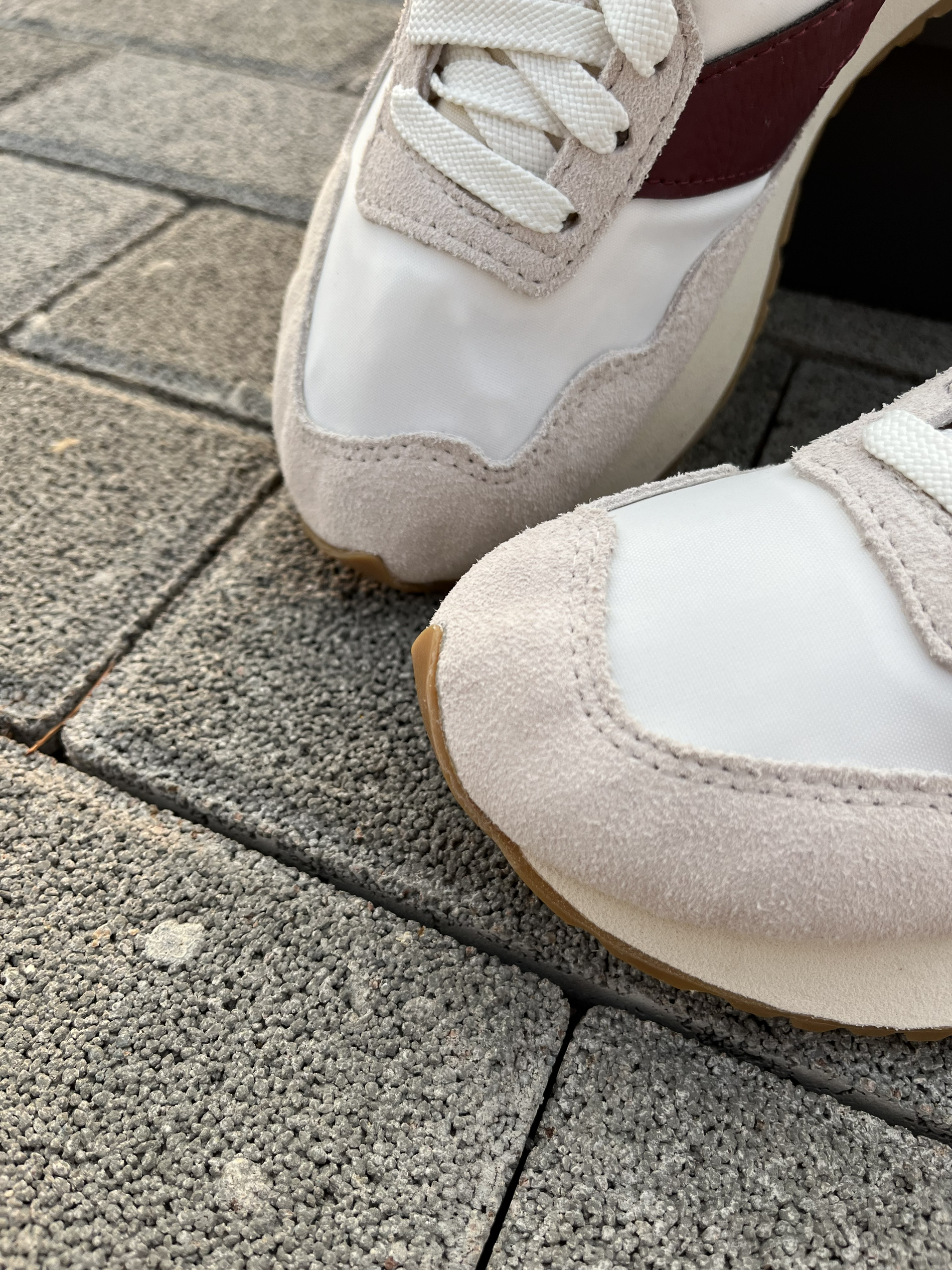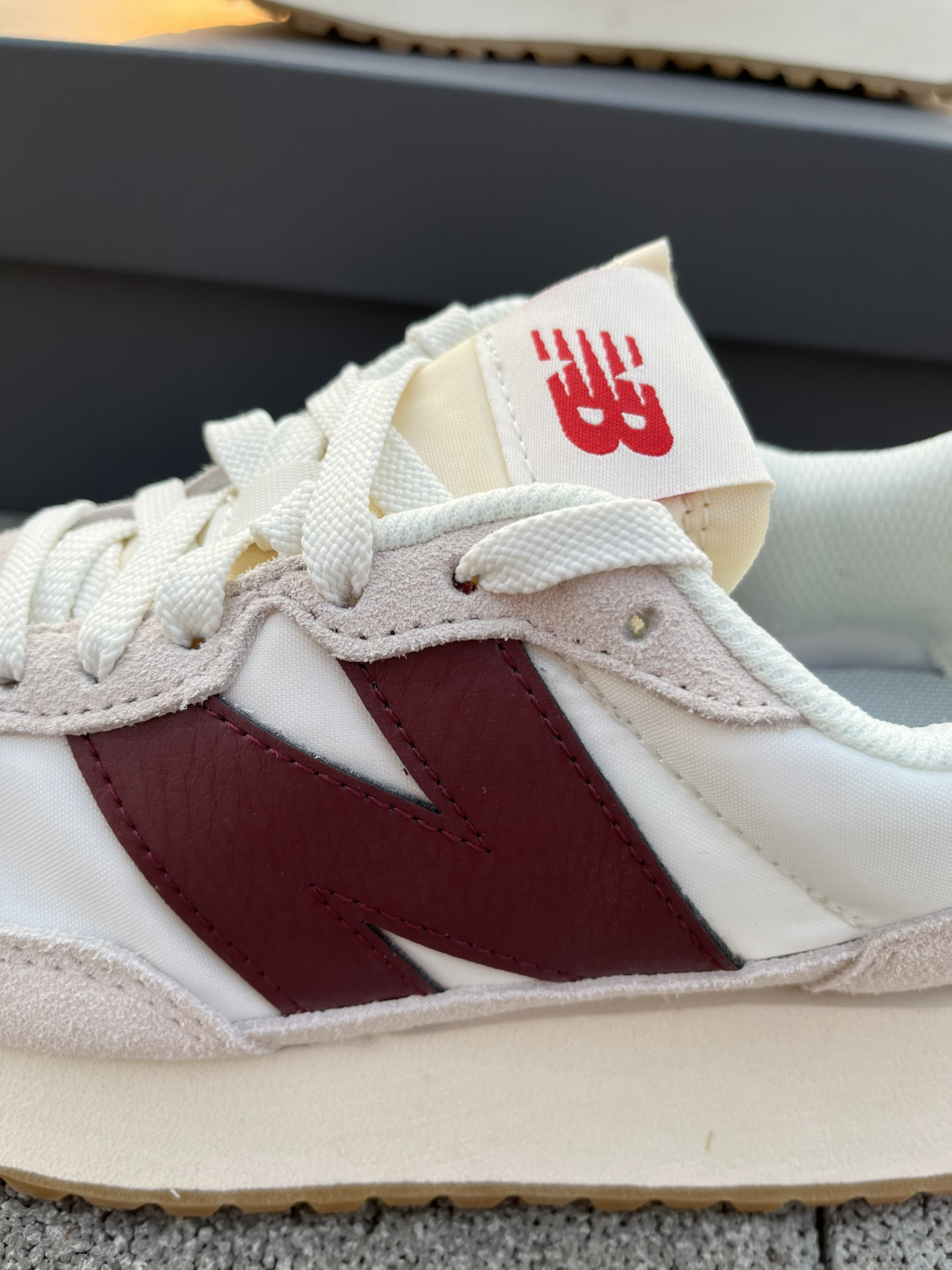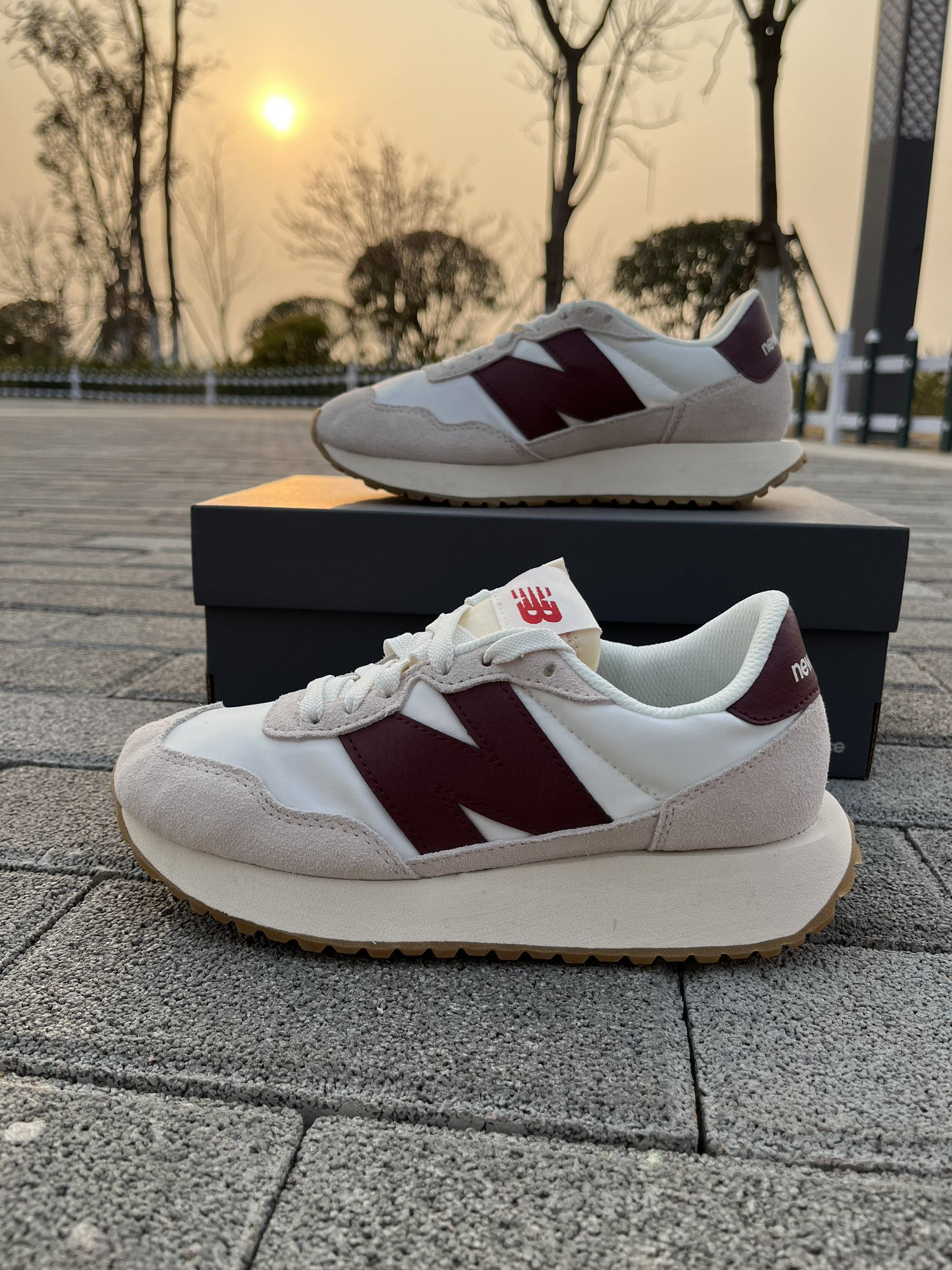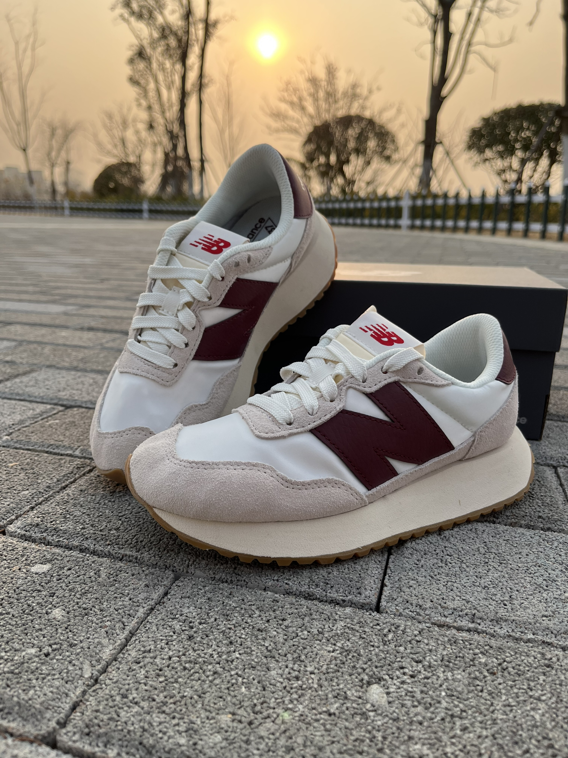 东毒西鞋今日分享 👟鞋名:NewBalance 237系列 米白 男女同款 🧗♀️ 鞋面整体主要采用米白色为底色,枣红色进行点缀。整体配色也是十分不错颜值很高的鞋子。 🧗♀️ 合成革织物的鞋面材质,质感不错,鞋子的颜色和材质层次十分丰富。较高的鞋底有着增高的效果,棕色的橡胶大底也是耐磨防滑的。脚感很舒服的鞋子值得购买。