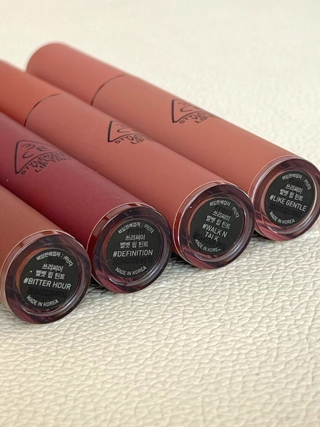 本篇笔记关联了3CE/三熹玉 丝绒唇釉 雾面哑光持久 4g 奶茶橘WALK N TALK、3CE/三熹玉 丝绒唇釉 雾面哑光持久 4g 苦咖色BITTER HOUR、3CE/三熹玉 丝绒唇釉 雾面哑光持久 4g 枯木赤陶DEFINITION等商品,为用户提供真实的使用体验和购买参考。