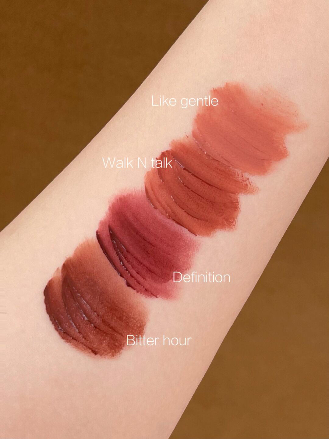 3ce丝绒唇釉 保留雾面的同时也不会拔干,轻薄好晕染 上嘴Like gentle是因为我弟最近老说要做一gentleman看见这词儿我可亲切了,颜色是乳酪杏子,温温柔柔的奶甜感,我浅唇直接涂就不戳啦,深唇可做打底色 3ce 3ce丝绒唇釉