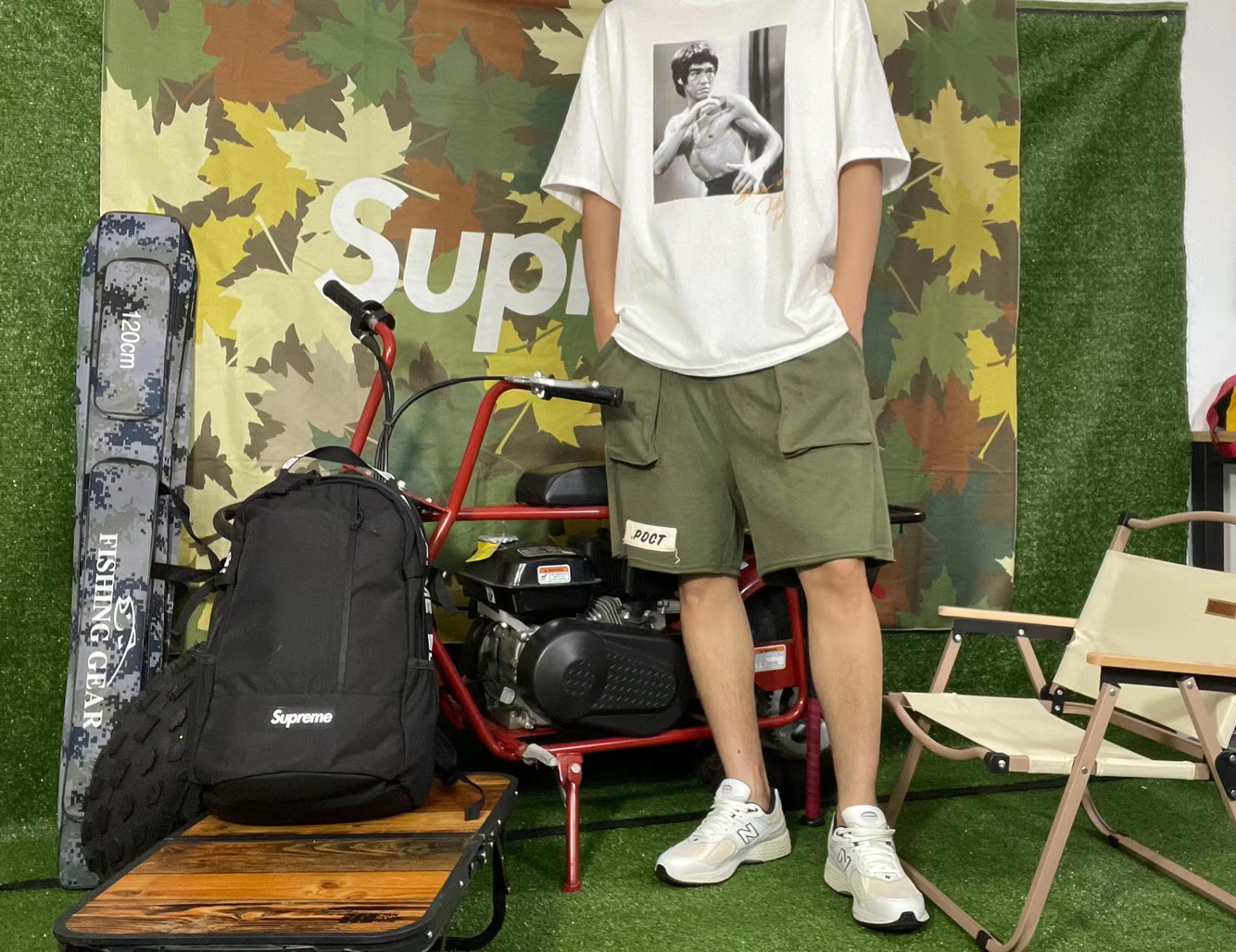 鞋子👟/NB2002R 上衣/PDCT李小龙 裤子/PDCT 极简搭配上身不费力,白色印花短袖搭配军绿色短裤! 军绿色短裤在搭配中也非常讨喜,宽松的版型。 质量过关,样式简约大方颜色适合夏天。 整套清爽简约,少年感十足,适合所有人的穿搭!