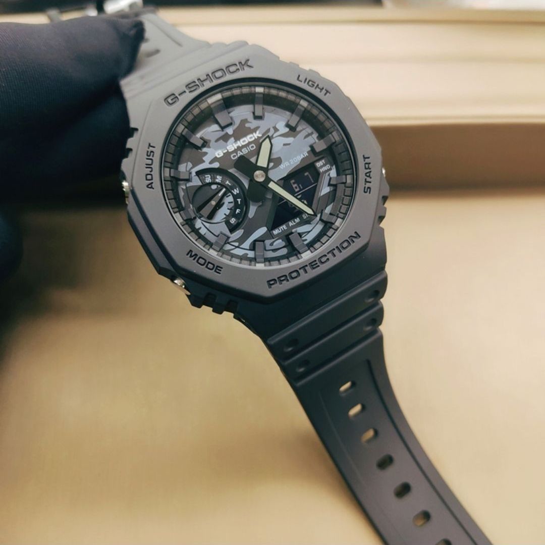 Casio/卡西欧 G-SHOCK 户外迷彩运动八角农家橡树石英男表 GA-2100CA 我只能说这款真的很帅,很适合户外的形状,不容易刮花,自重还可以接受,2100系列都不回很浮夸,是恰到好处的合适,这款适合学生党噢! 备注图片搬运网络