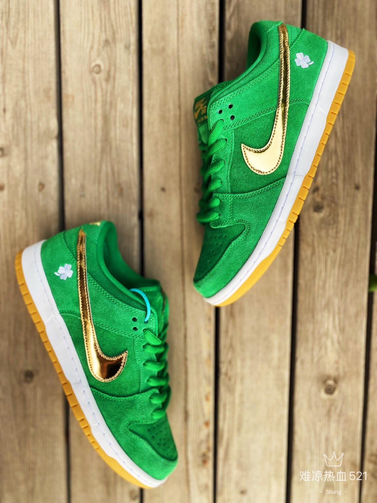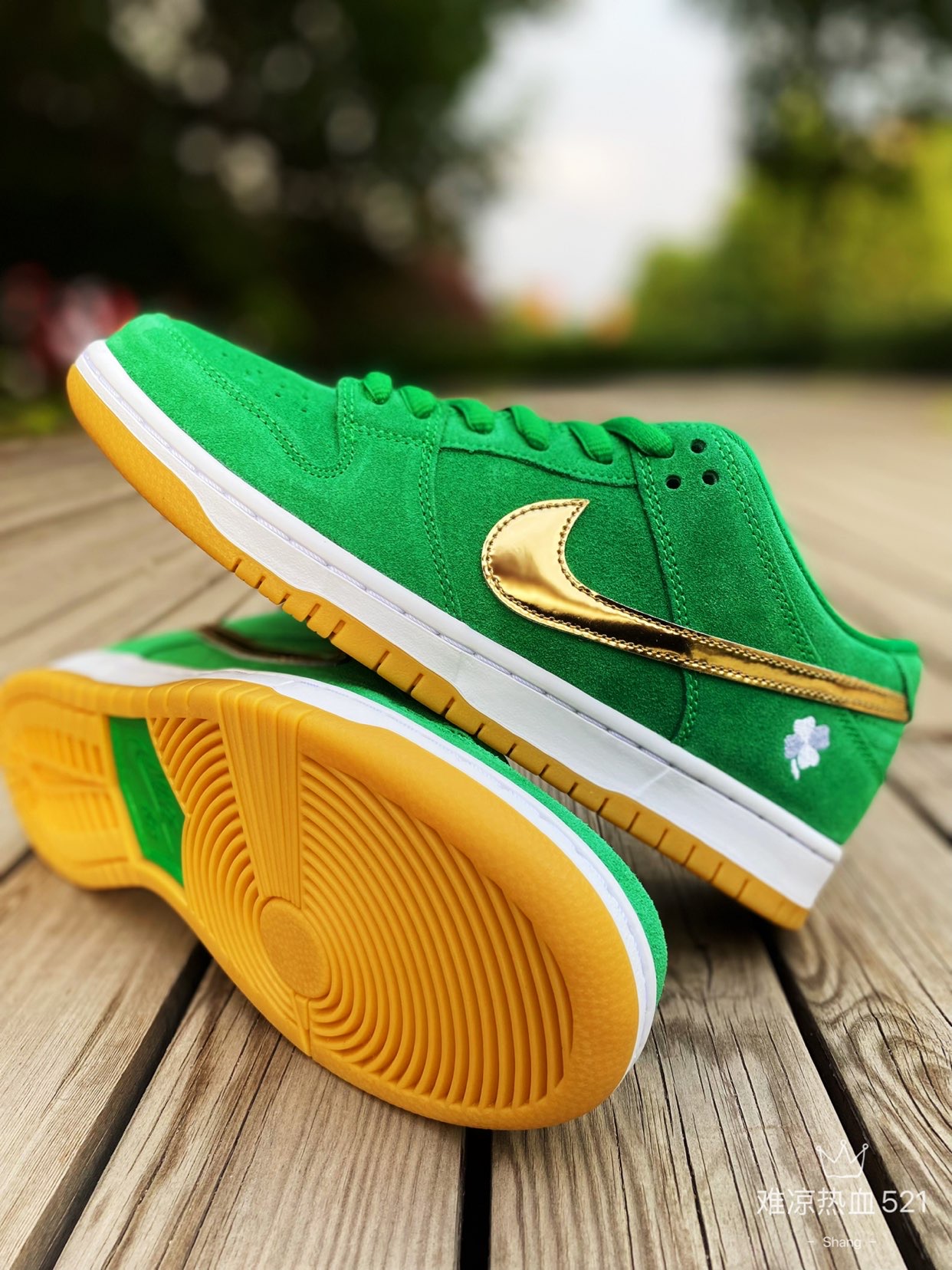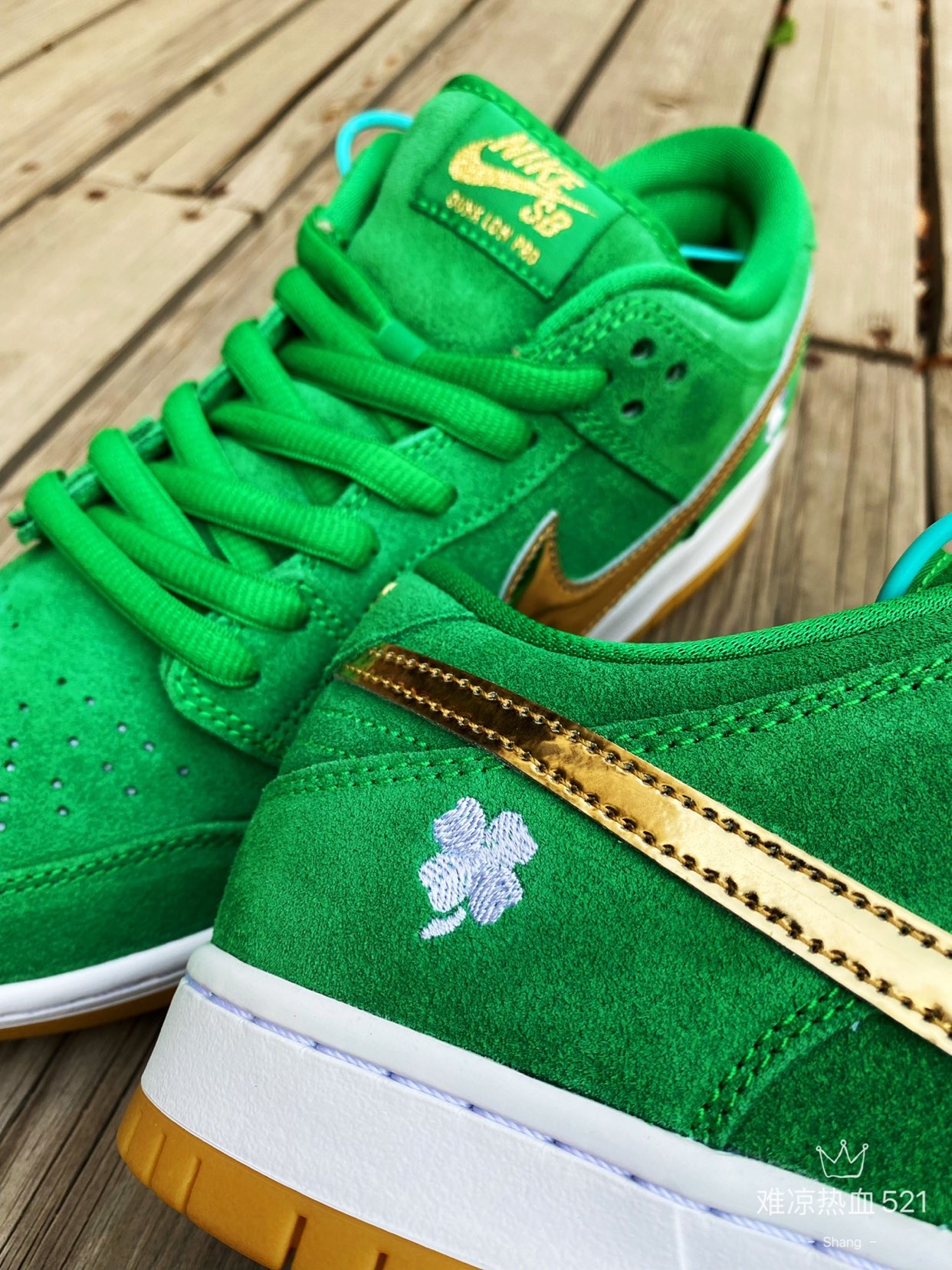 👟球鞋名称: Nike SB Dunk Low LX “Shamrock”四叶草 👉设计细节: 这双圣帕特里克节SB Dunk采用了绿色优质翻毛皮材质,搭配金色光泽的swoosh,整体皮质和做工上非常细腻。后跟位置通过刺绣的四叶草图案,代表着幸运。白色中底搭配橡胶外底,整体看上去非常舒适。 💥推荐理由: 这双球鞋配色方面可以说是非常夏天了,如果你的鞋墙里还没有一双绿色的球鞋,那么这双四叶草真的是太...