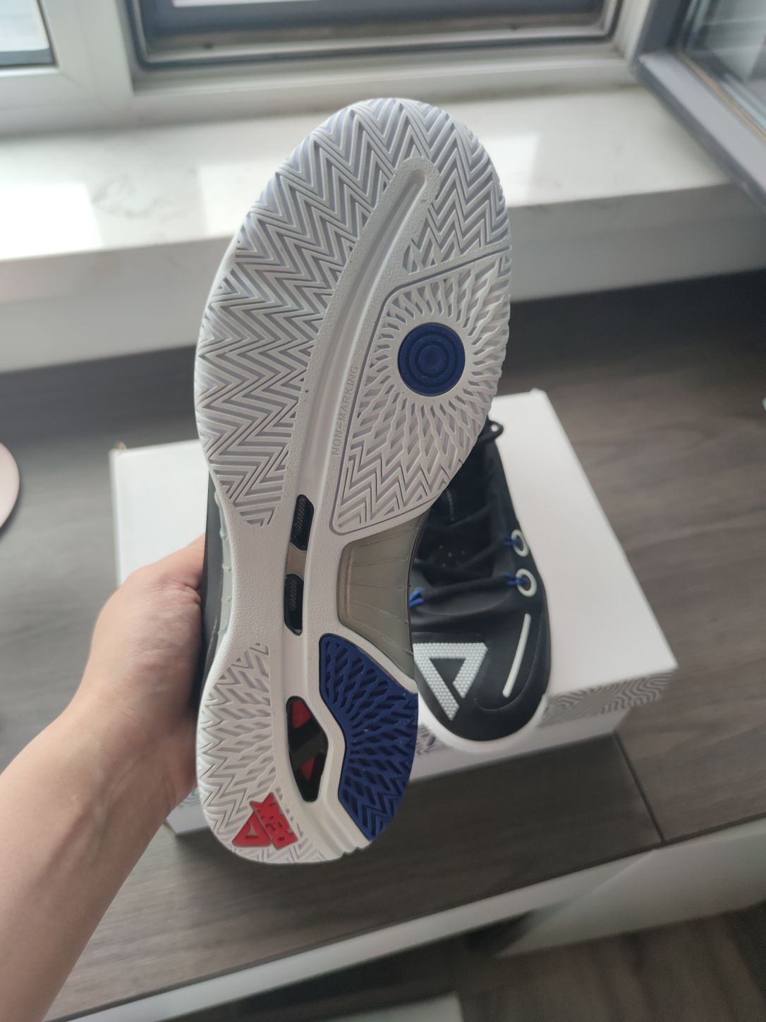 这次真的是一双排球鞋 匹克排球鞋#匹克 第一双#排球鞋 终于来了,因为价格到了400+比较符合心理预期,所以入手了。这一双真的很符合一个业余中等强度排球人。首先是透气,鞋头和鞋身都有透气孔,不会很闷脚。其次是它的鞋身鞋舌一体设计,满足了横移滑步多的运动特点,不会有动一动鞋舌就跑了的不适感还提高了包裹性。前后掌做的也非常合理,前掌偏韧不影响启动,后掌偏软,可以缓震。设计上也融入了很多元素,比如排超...