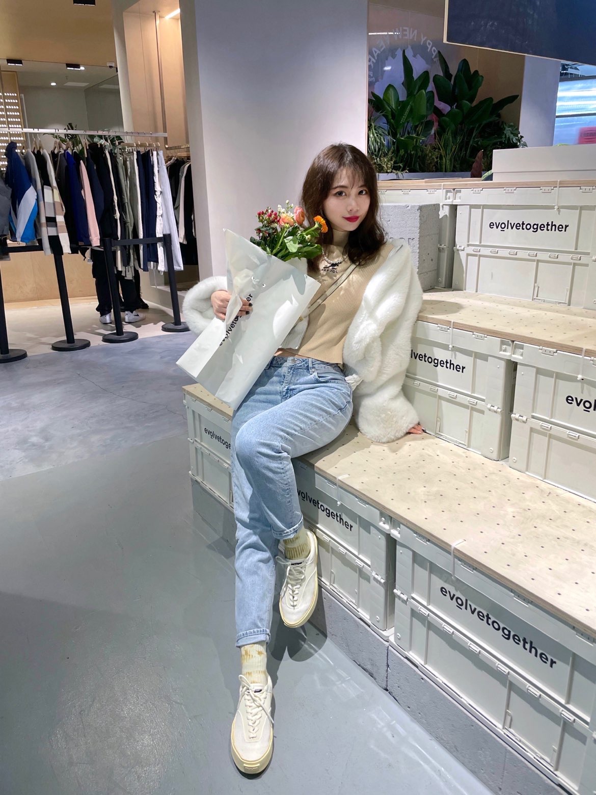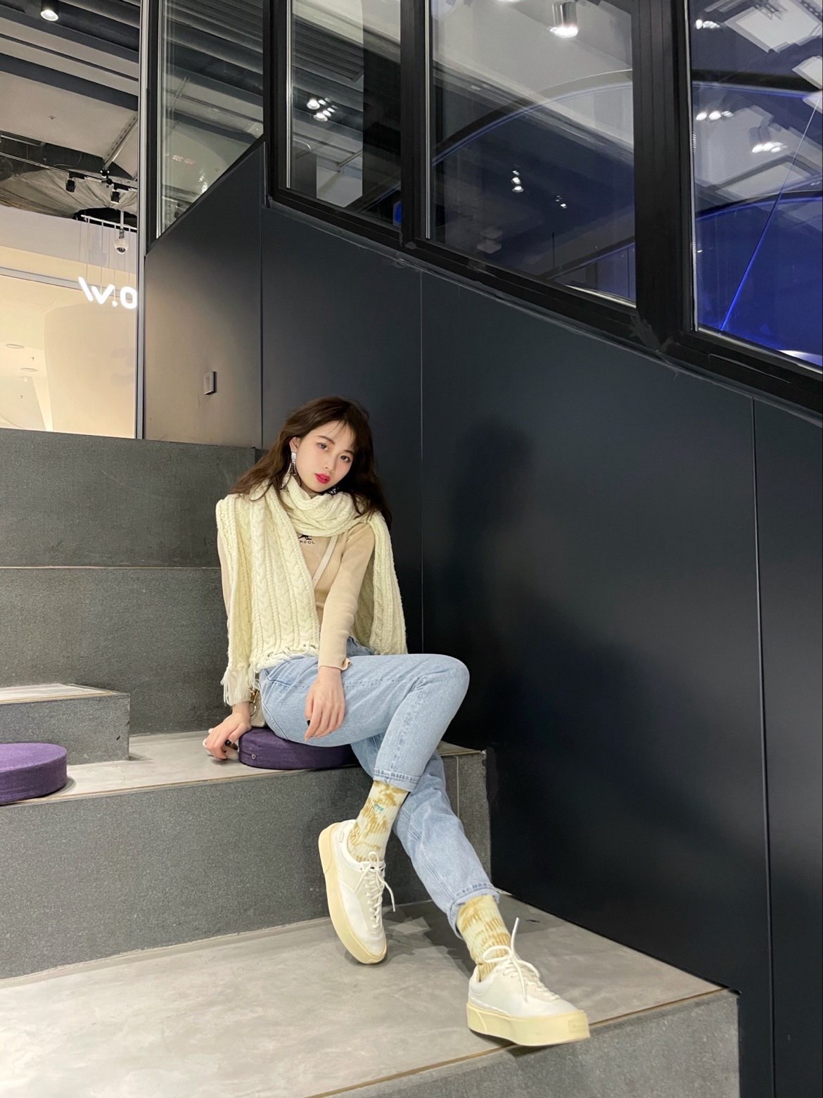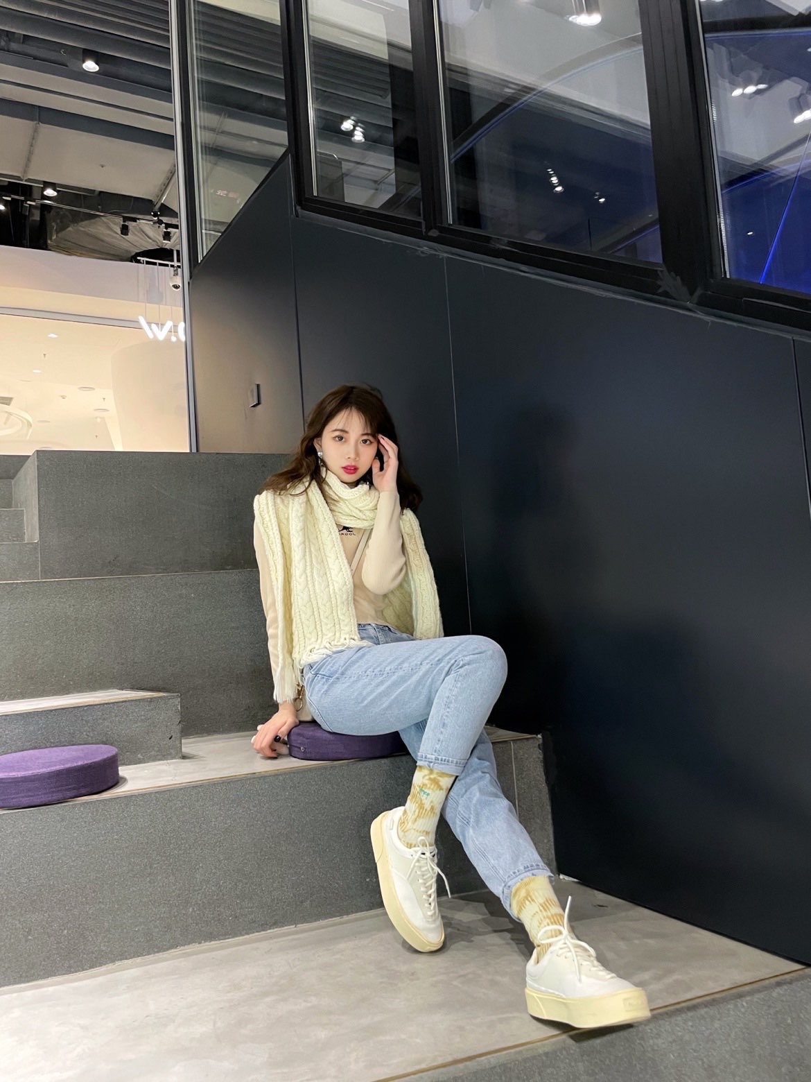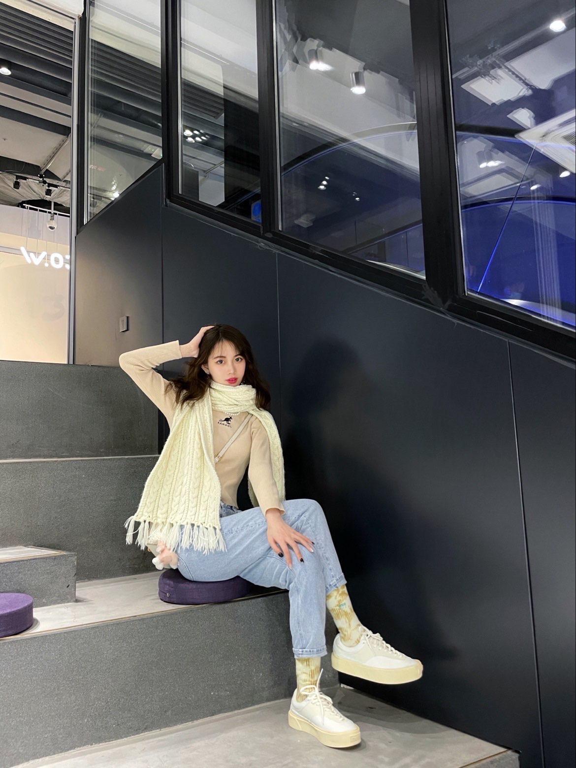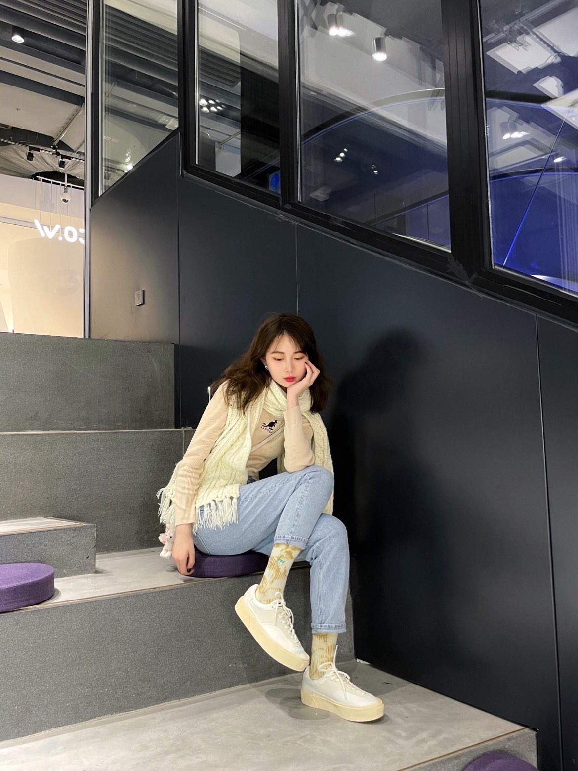 get了一整套米色look!鞋子和围巾🧣都是奶奶油油的米色系~上下呼应一下😝😉 这件卡其色小高领top真的很百搭;竖条纹看起来蛮显瘦的,打底外穿都很好看!😍喜欢胸前的小袋鼠🦘 最近很爱穿妈咪牛仔裤👖,做旧的样式看起来复古又简约,随便搭配什么上衣都很适配,浅蓝色很清新,喜欢💕 发现米色鞋子比纯纯小白鞋更加百搭哦~😊而且很耐看,搭配黄白扎染袜子🧦看起来酷酷der😌 / 🧦袜子:上森派系 👟鞋子...