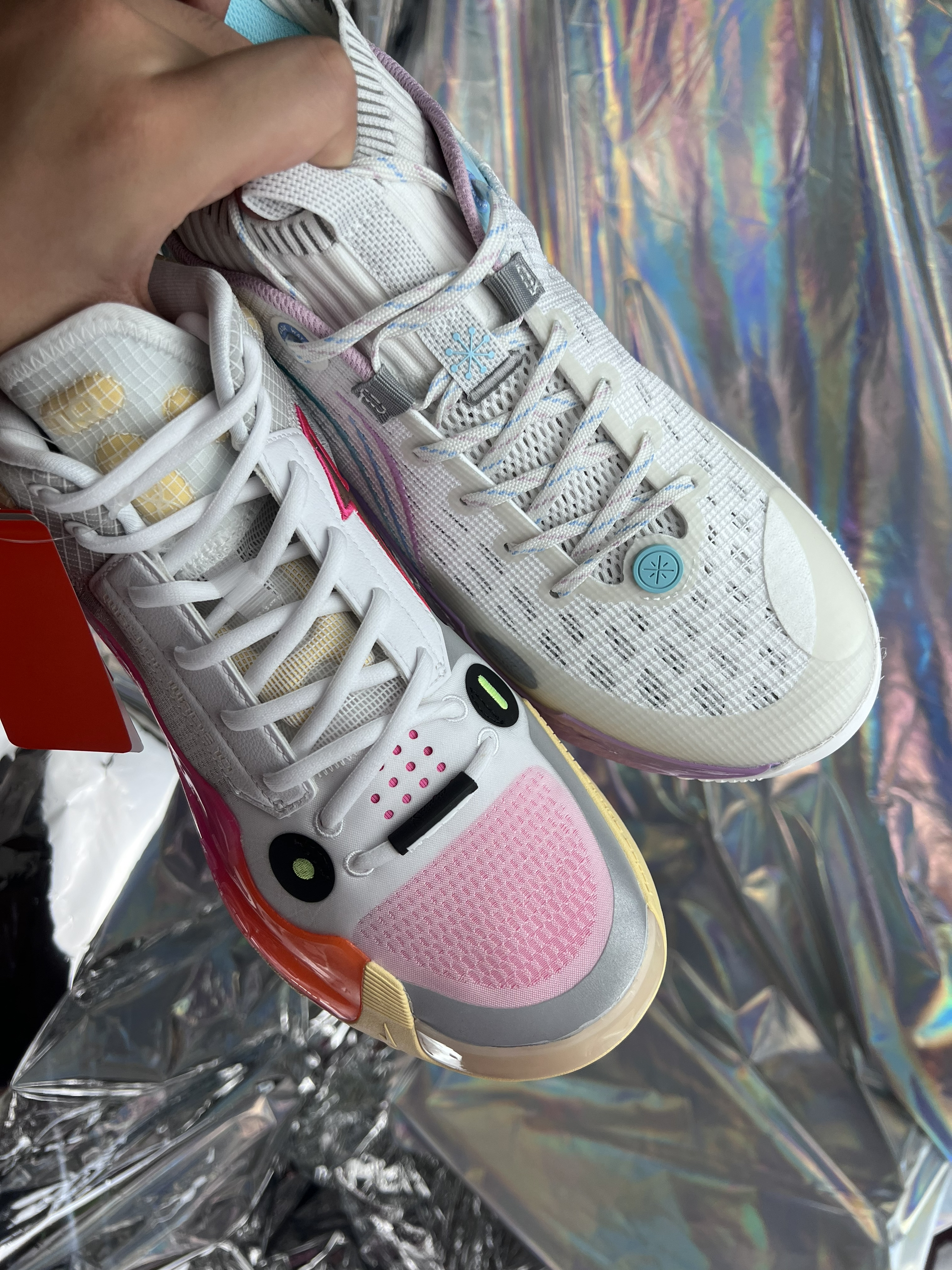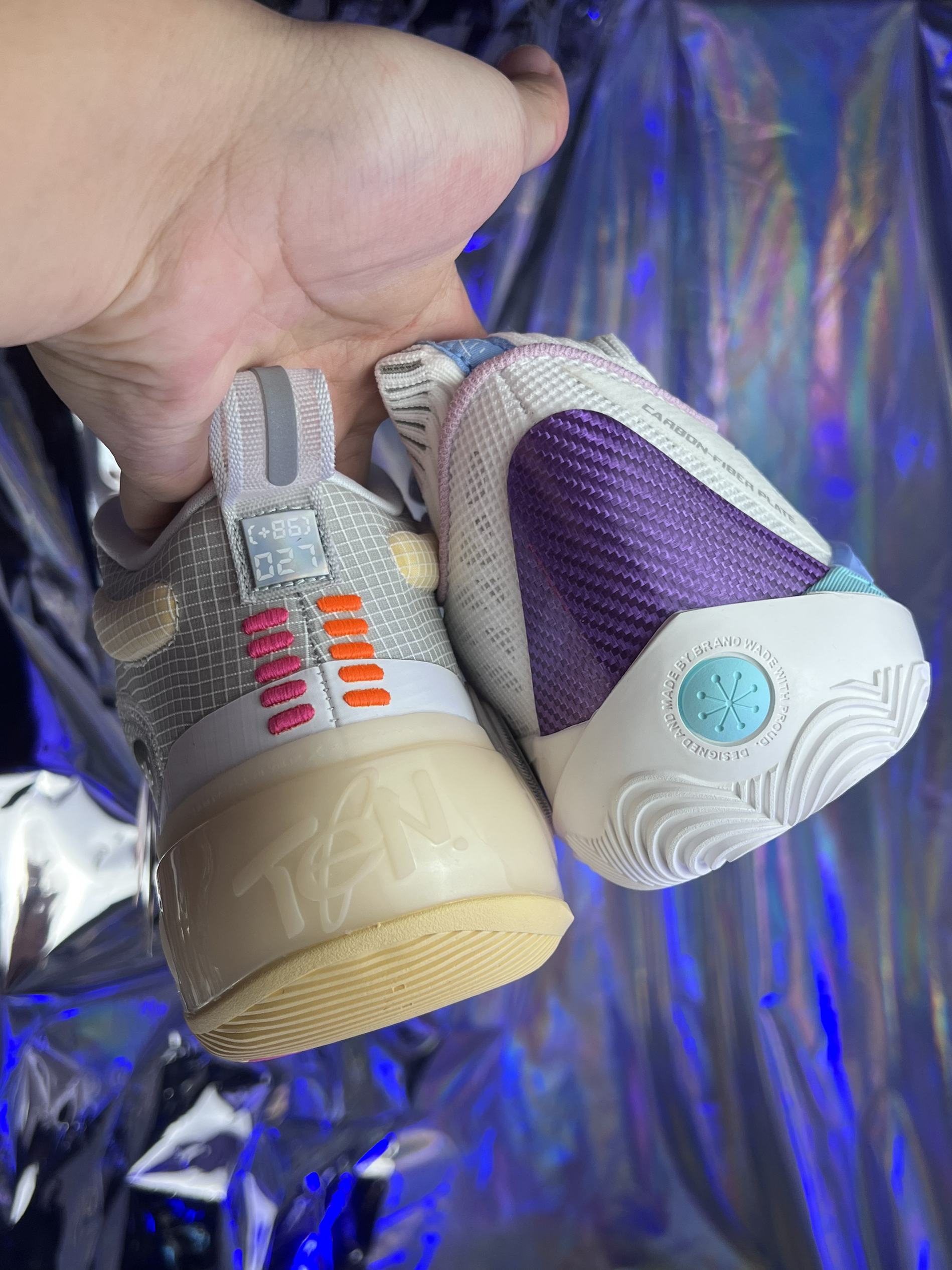 首先看颜值方面的话。我可能会选择808多一些,因为第一眼看见WOW10给我的感觉可能更加合适力量性选手! 但是到手后我完全改变了这个看法,WOW10确实太炸裂了,整体的包裹性、支撑性,还有脚感都是非常不错的,再加上有大面积的一个碳板,穿上去过后却是非常的舒服。 还有它的重量控制得非常的到位,WOW10的重量,41码的话是330克。808 2代高配版本重量达到了380克,轻了将近有50克的一个差...