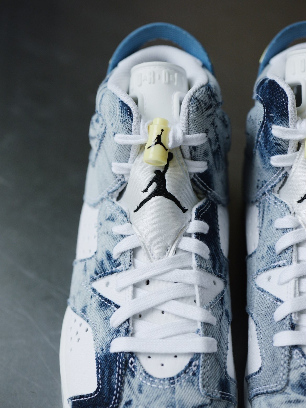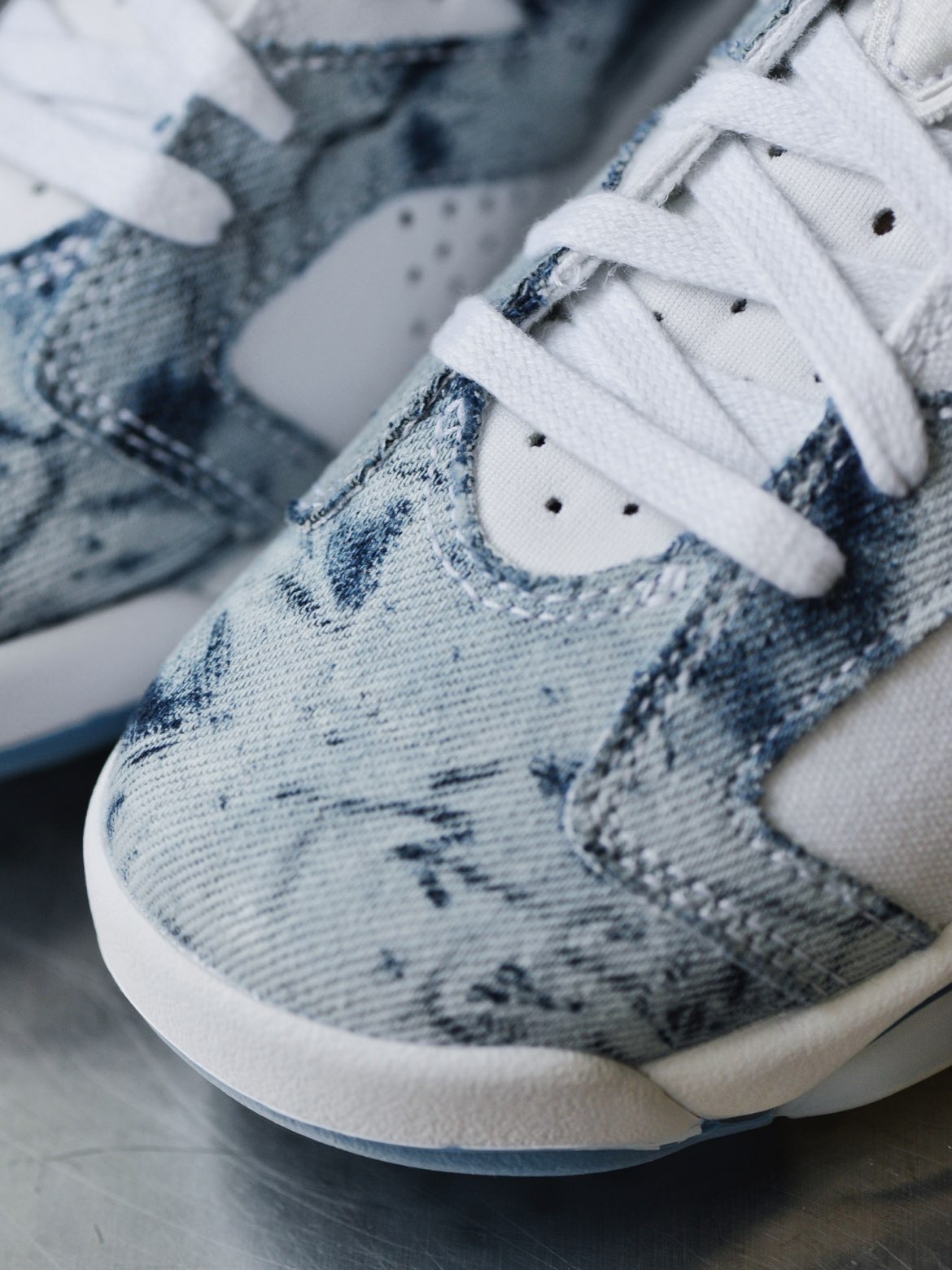 此番将带来一款全新配色的 Air Jordan 6 Retro GS “Acid Wash Denim”,扎染牛仔布巧搭浅紫蓝点缀,再现经典风范。鞋款以白色为主色调,搭配水洗牛仔布覆盖层。白色鞋舌、鞋带和中底等细节,以淡石灰绿色调装扮,鞋舌盖面和后跟饰有黑色 Jumpman Logo。 #Jordan