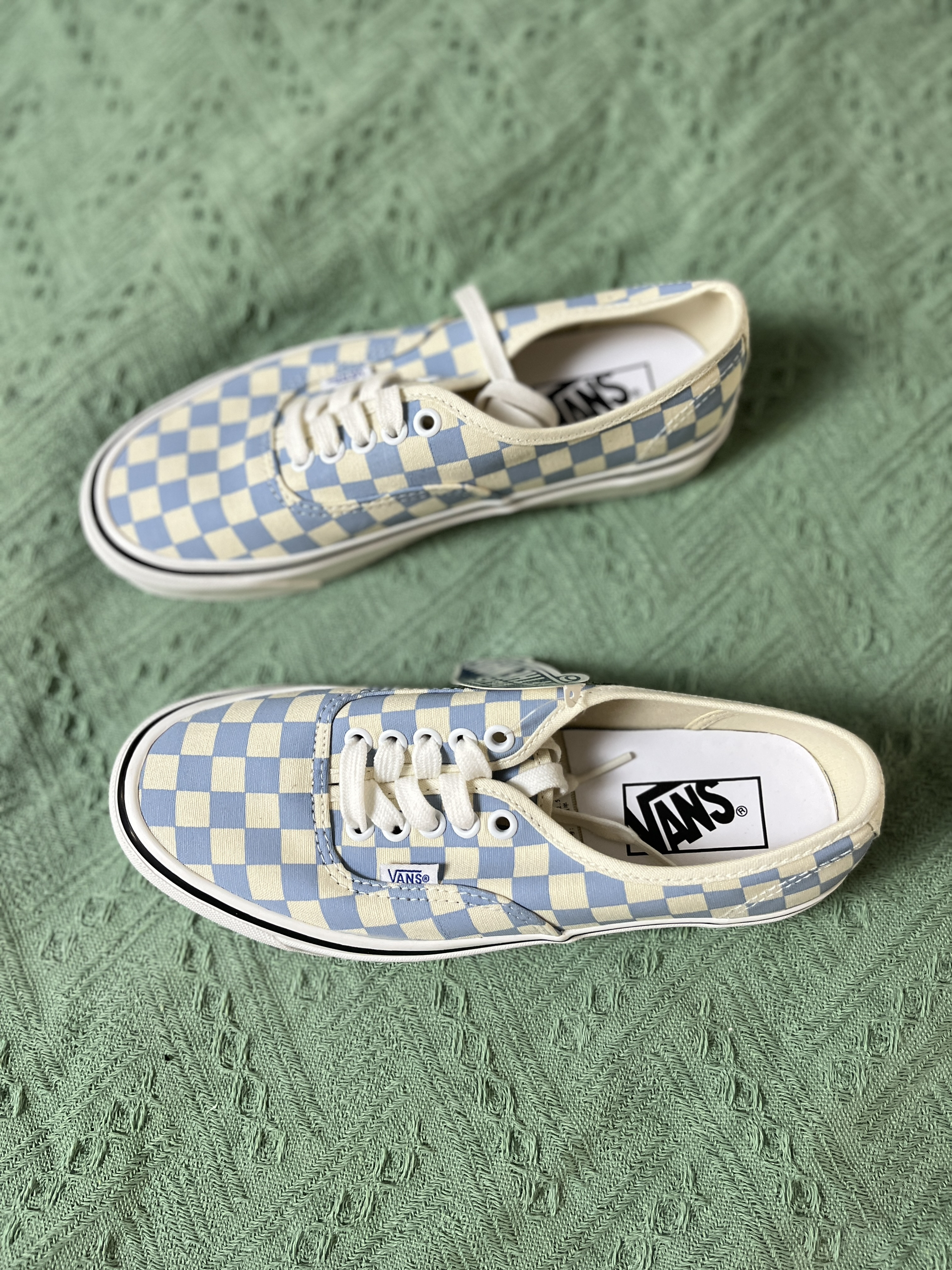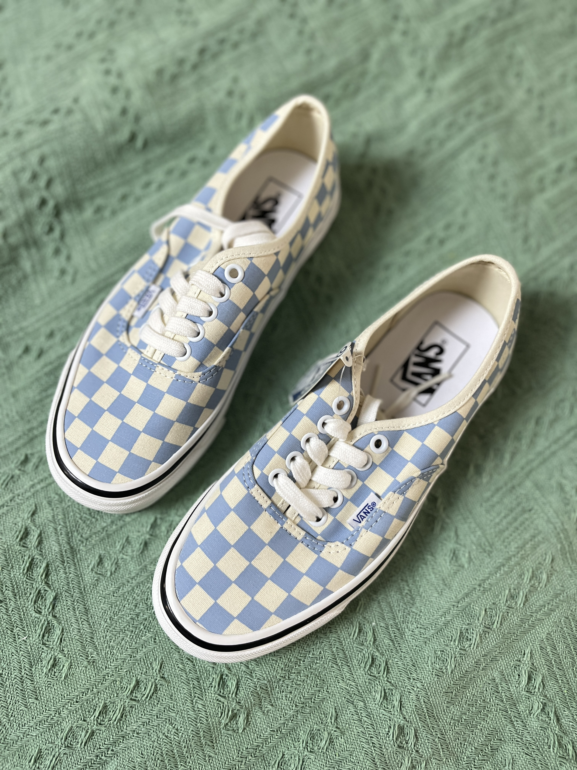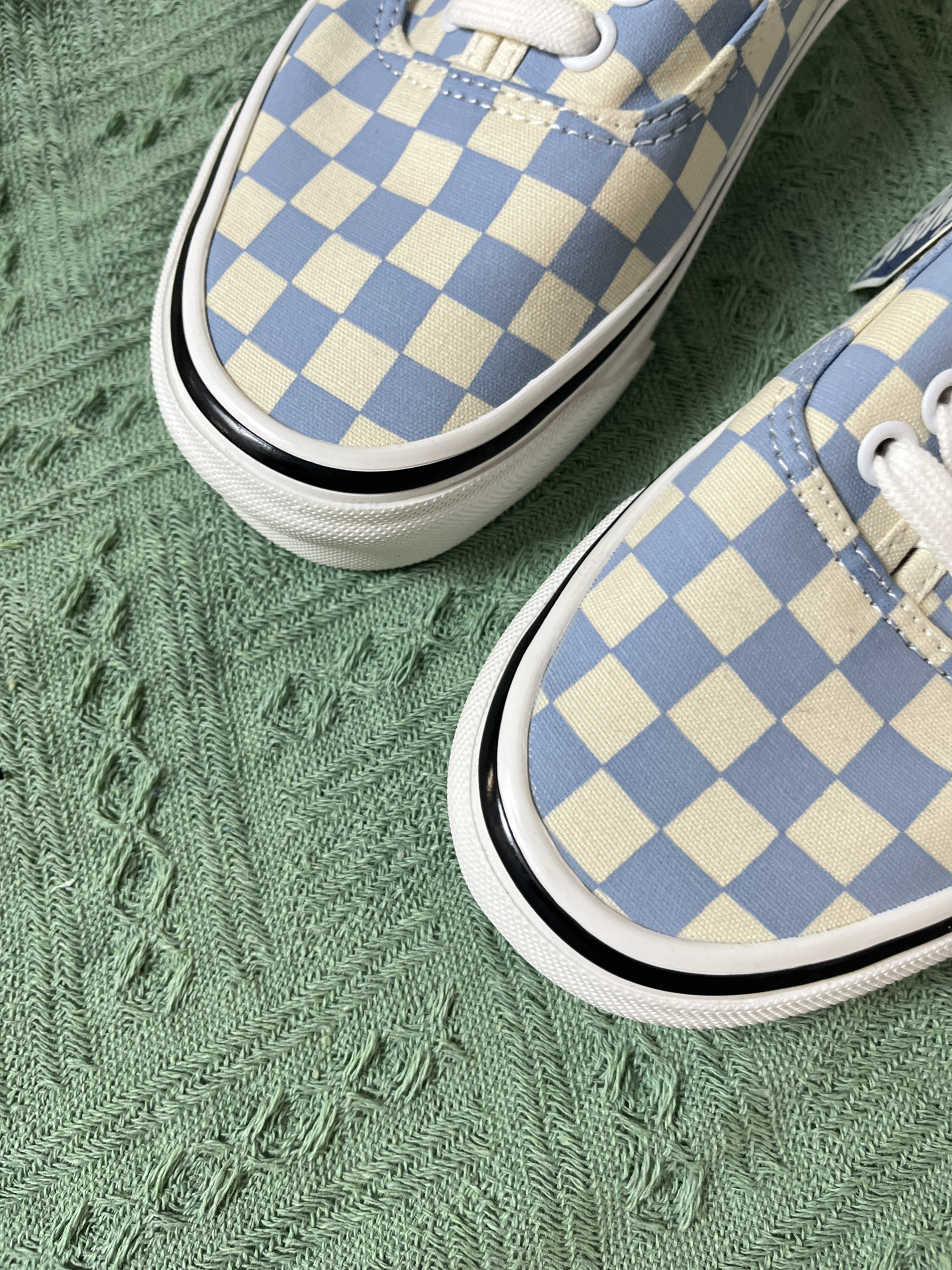 西兰花今日分享:Vans Authentic 44 Dx 棋盘格 奶蓝色 海盐奶盖冰淇淋 男女同款 刚看到它有种青春的感觉,代表着阳光代表着朝气蓬勃。特别是女孩👧穿上,搭配着白袜真的是爱了。 vans鞋子脚感一直不错,但是可能刚穿上不太习惯 或许有点磨脚,不过你习惯了就会爱不释手。 拍了鞋子供大家参考,外观造型以及配色真的是那样的