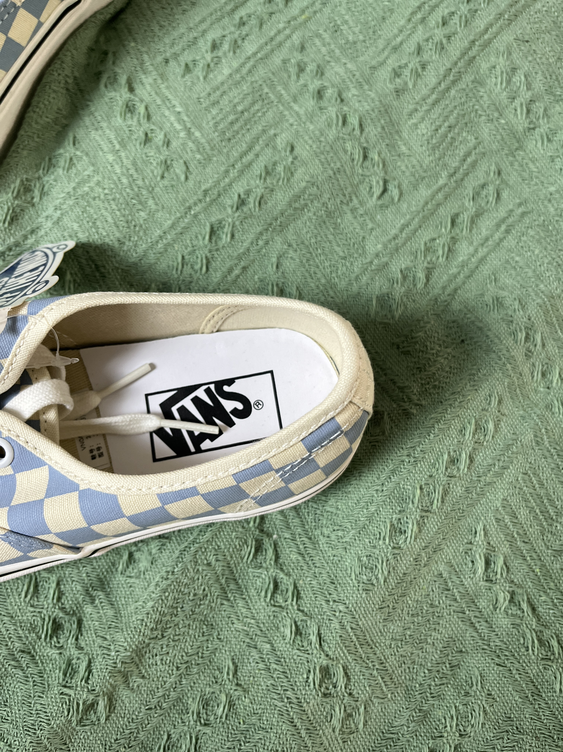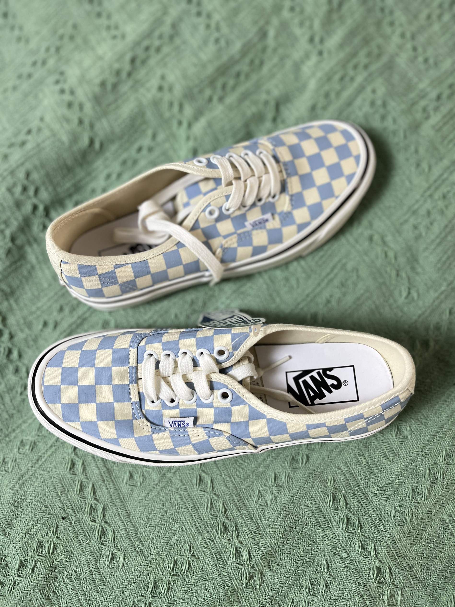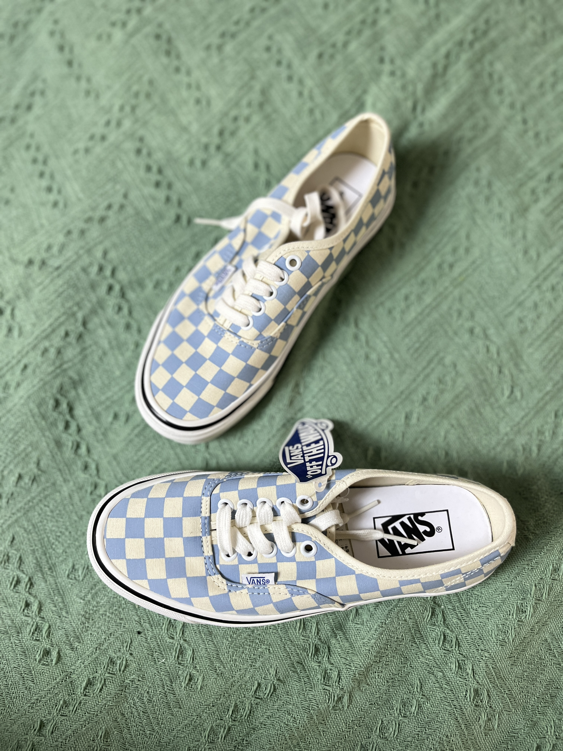 西兰花今日分享:Vans Authentic 44 Dx 棋盘格 奶蓝色 海盐奶盖冰淇淋 男女同款 刚看到它有种青春的感觉,代表着阳光代表着朝气蓬勃。特别是女孩👧穿上,搭配着白袜真的是爱了。 vans鞋子脚感一直不错,但是可能刚穿上不太习惯 或许有点磨脚,不过你习惯了就会爱不释手。 拍了鞋子供大家参考,外观造型以及配色真的是那样的