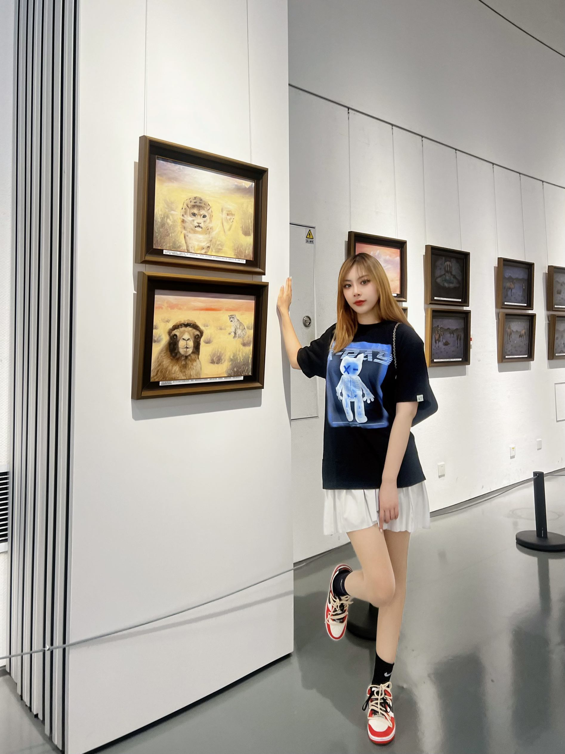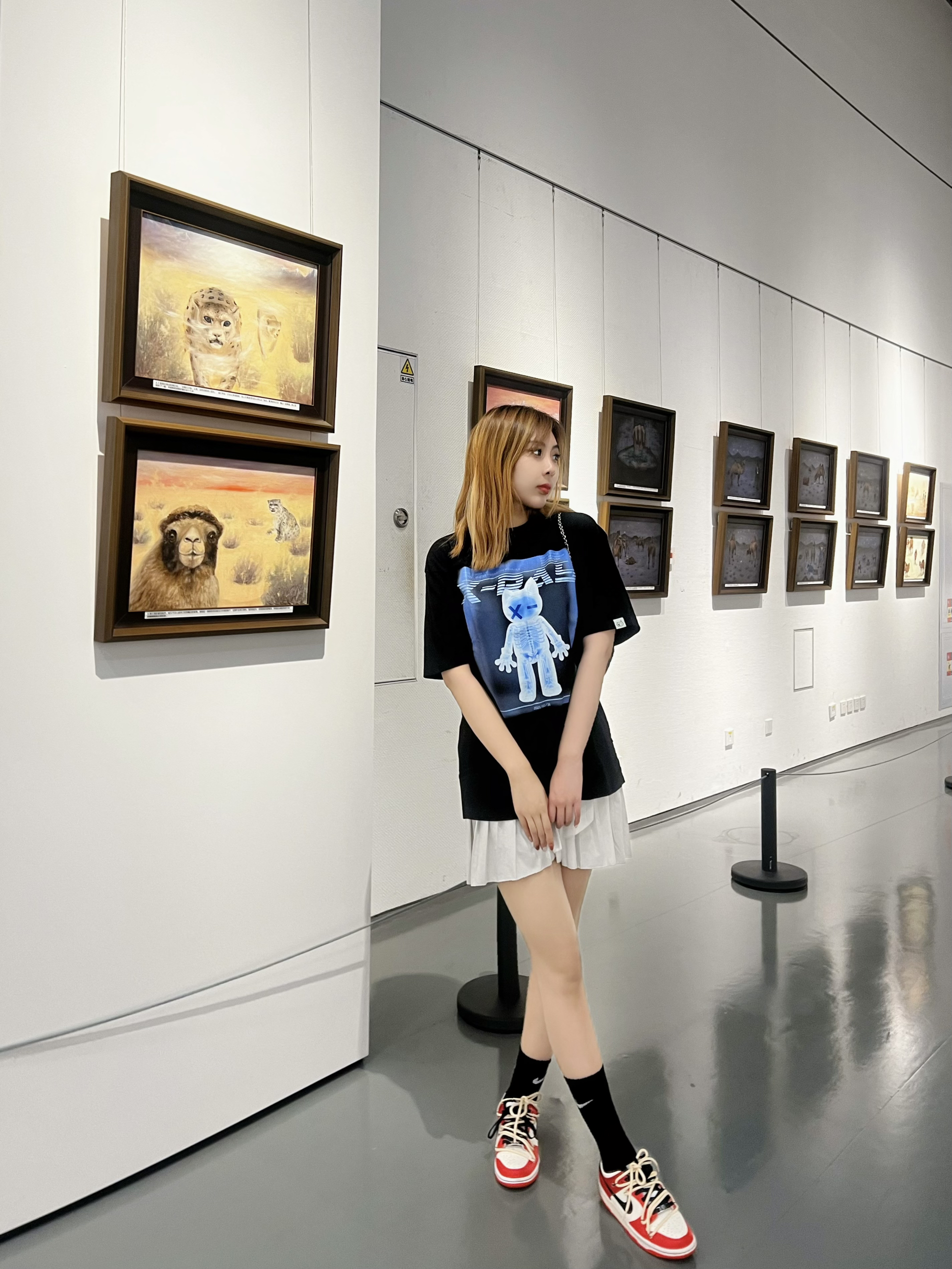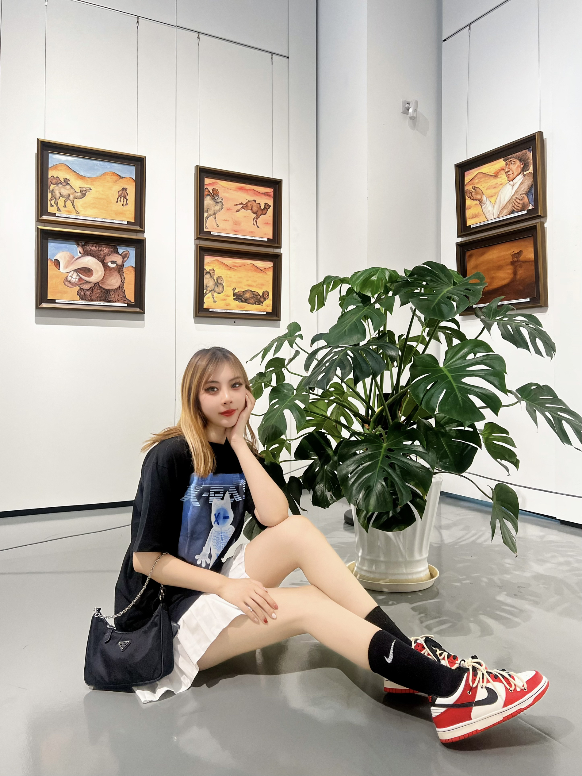 👟:nike 定制 dunk 芝加哥公牛配色解构 👜:prada 三合一 ⭐️美术馆又开新画展了,我来看看,顺便分享一下穿搭,这次的画展是沈石溪的作品,我记得中学课本里学过他的课文~ ⭐️今日穿搭的颜色以黑白红为主,上衣是一个黑色的T恤,搭配了白色的百褶裙,还有黑色的包包做点缀,鞋子穿了芝加哥公牛配色的解构鞋,我这双是定制鞋,白菜价也能穿联名真的太香了~